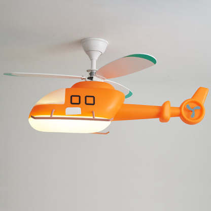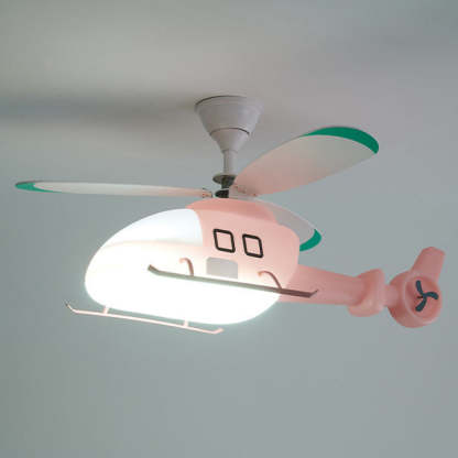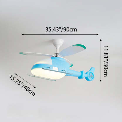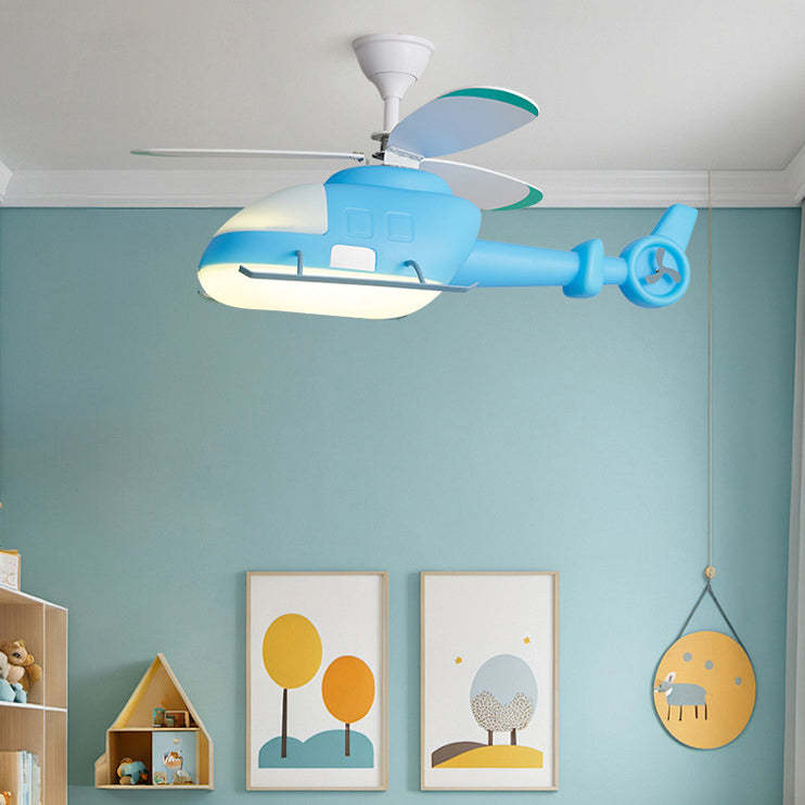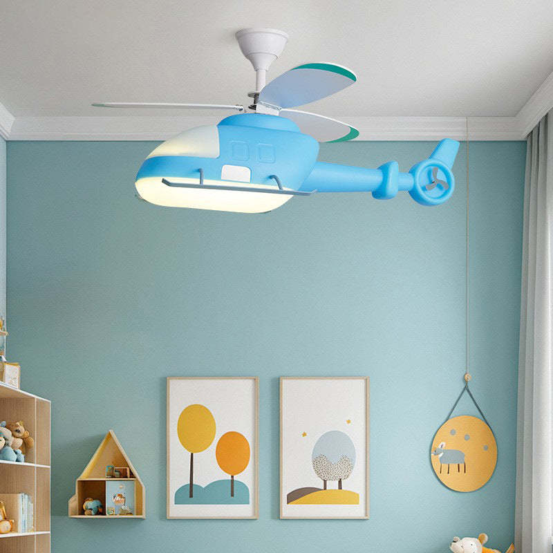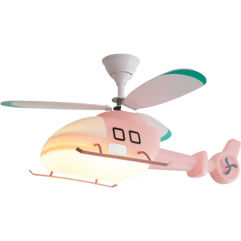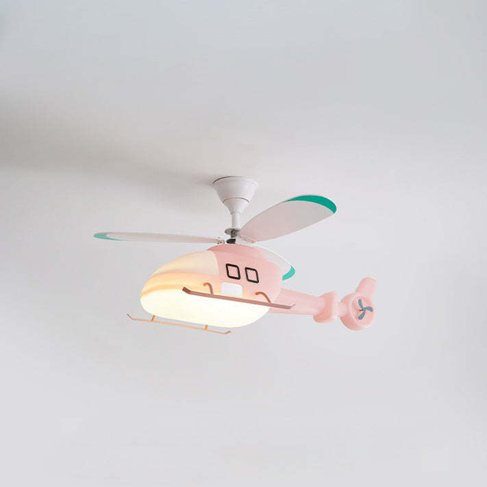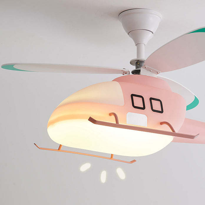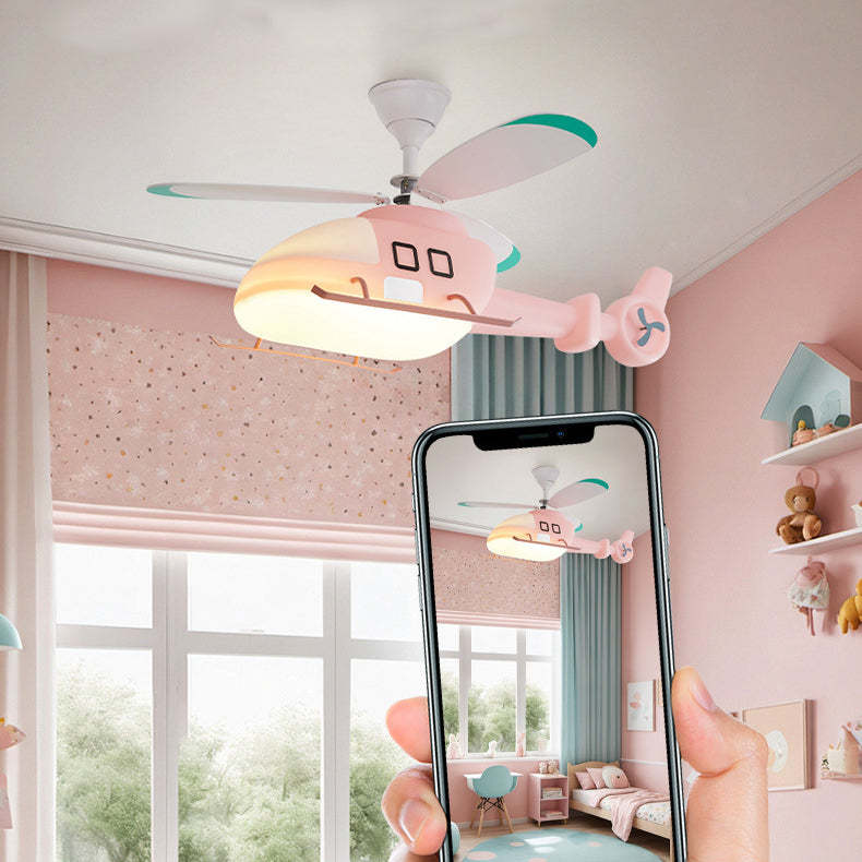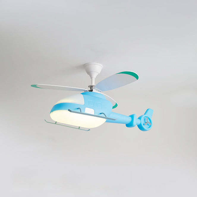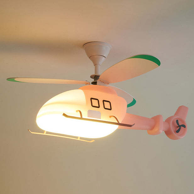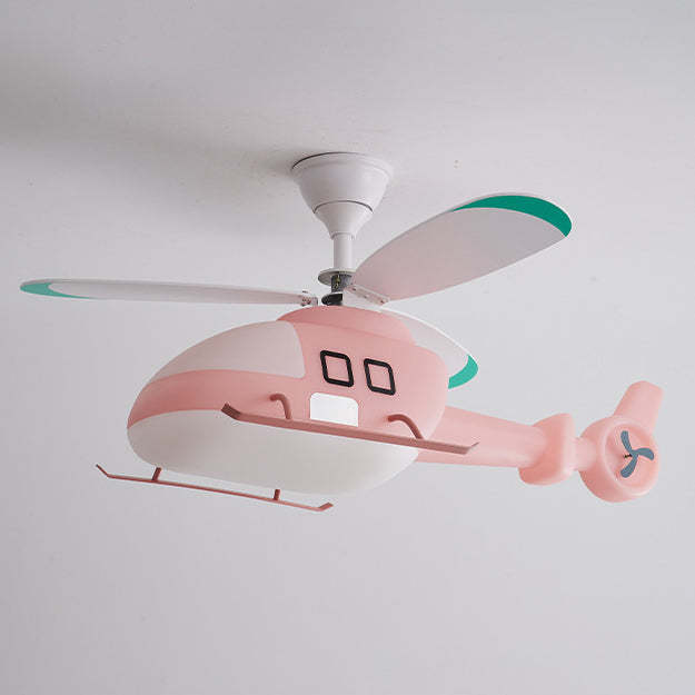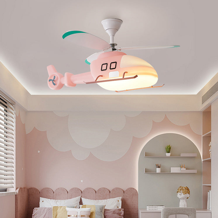 Modern Minimalist Kids Cartoon Airplane Semi-Flush Mount Ceiling Fan Light Iron Acrylic For Children's Room