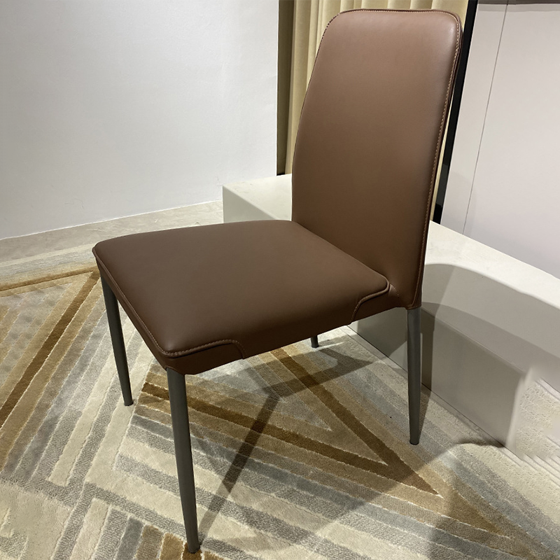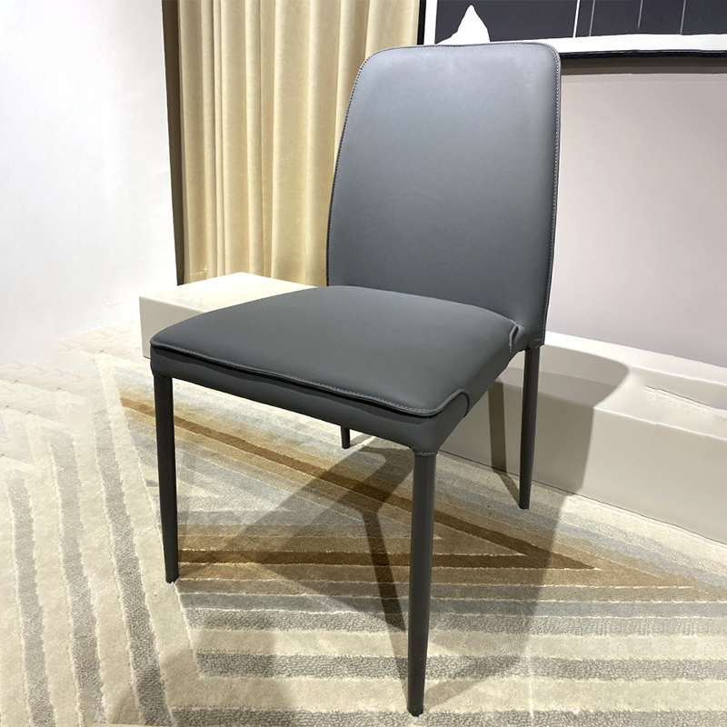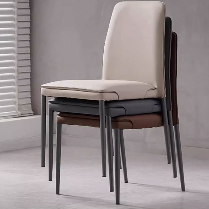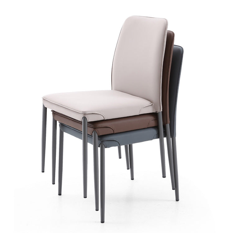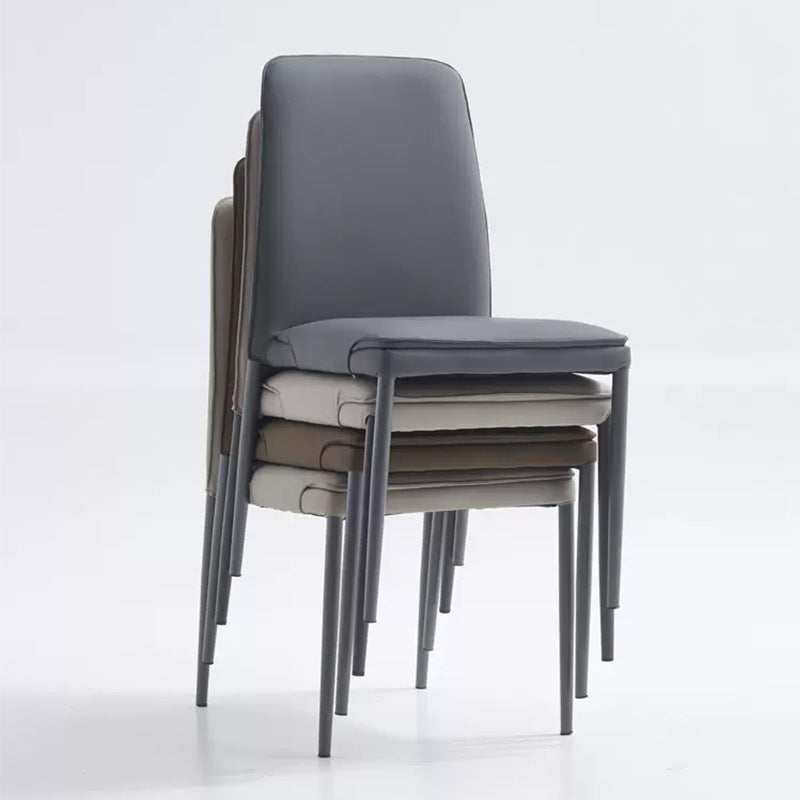Modern Minimalist Leather Carbon Steel Sponge Square Dining Chair Backrest Stackable For Dining Room