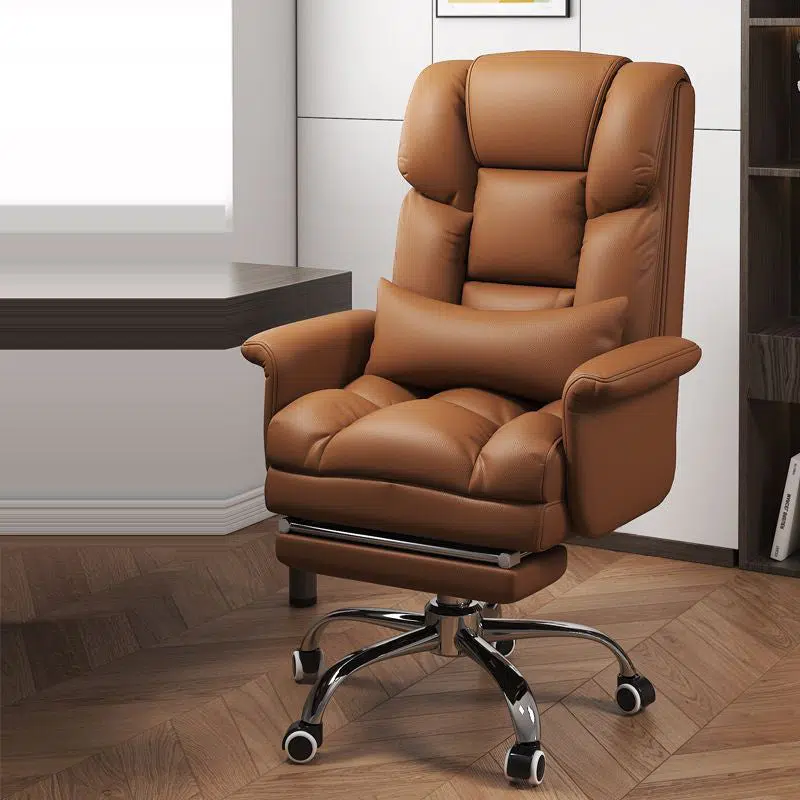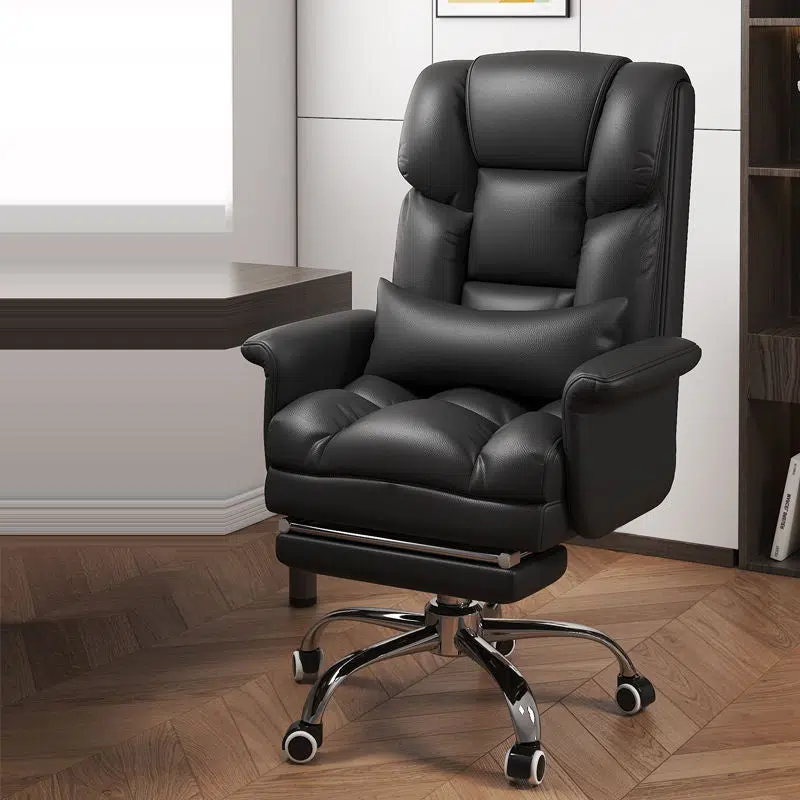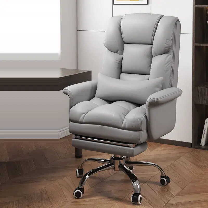 Modern Minimalist Leather Metal Rectangular Square Desk Chair Backrest Armrest Footrest For Home Office