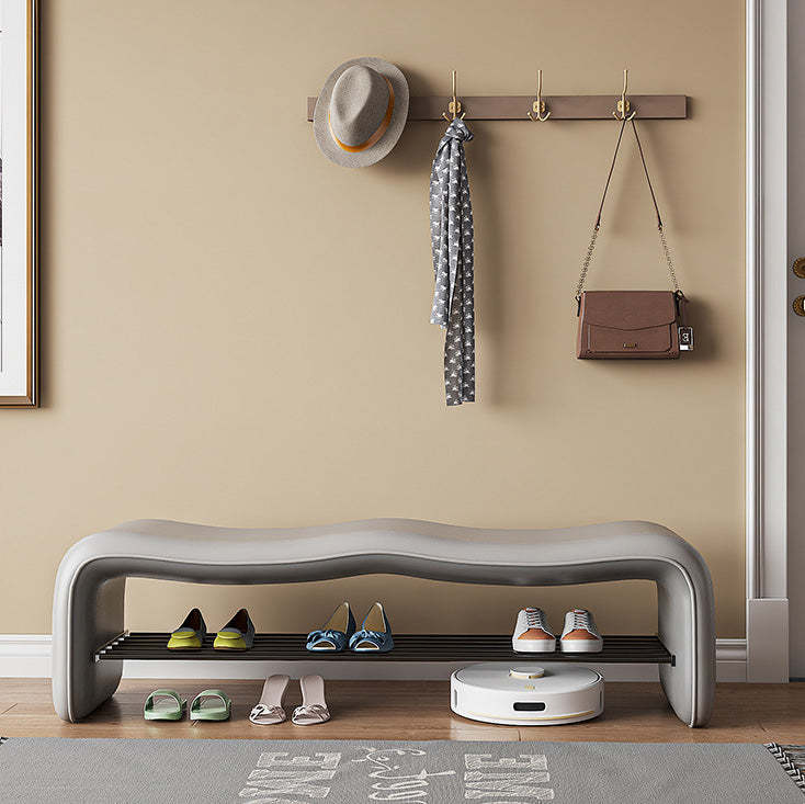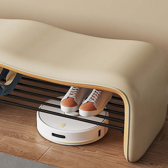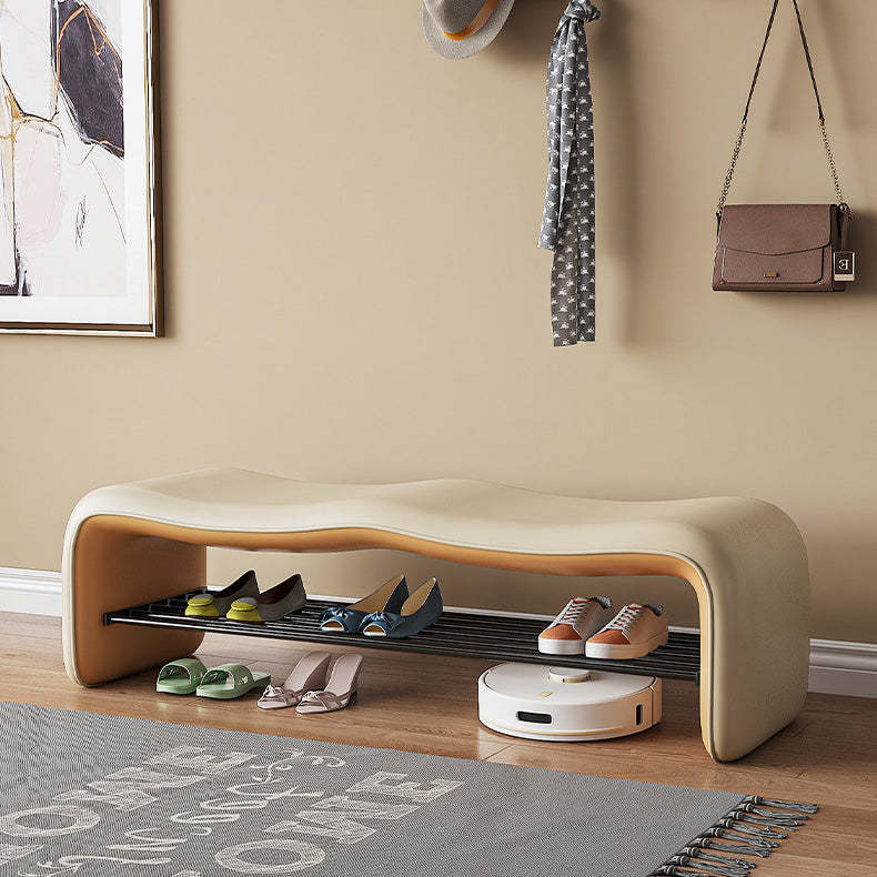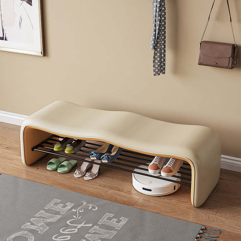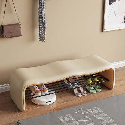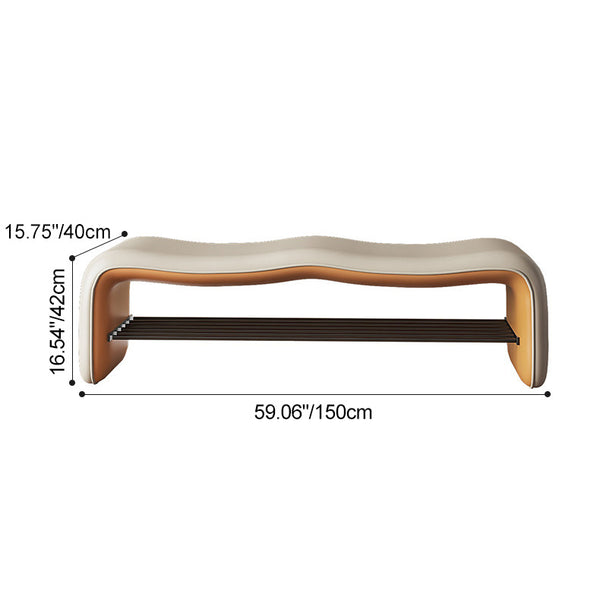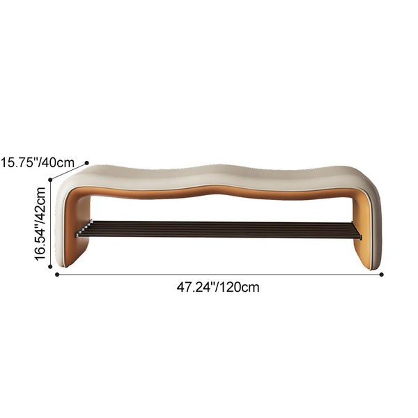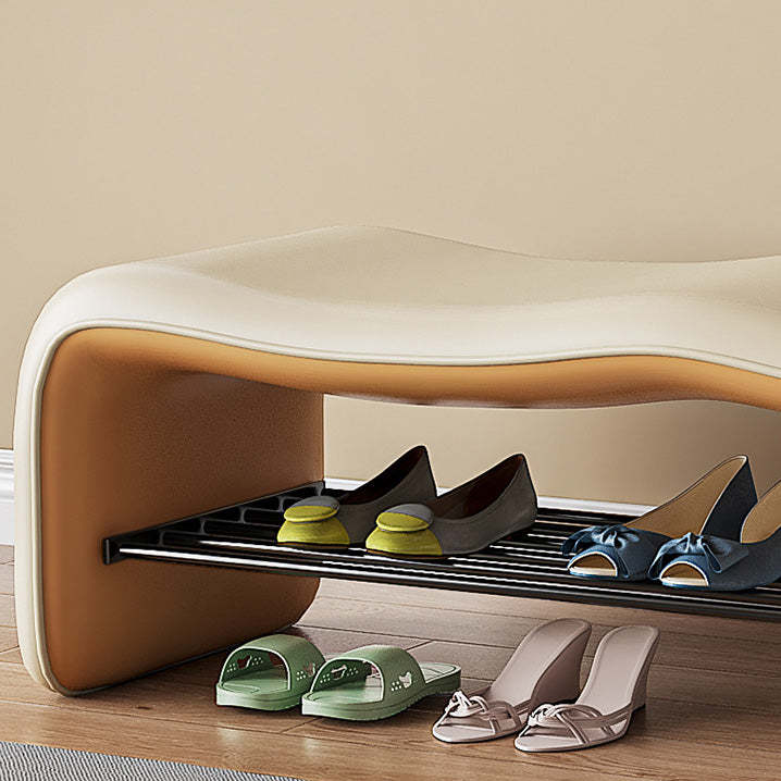 Modern Minimalist Leather & Metal Wavy Rectangular Shoe Bench For Entryway