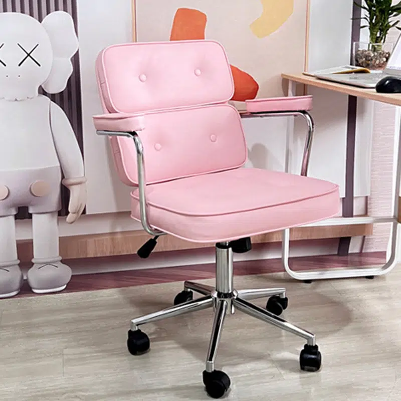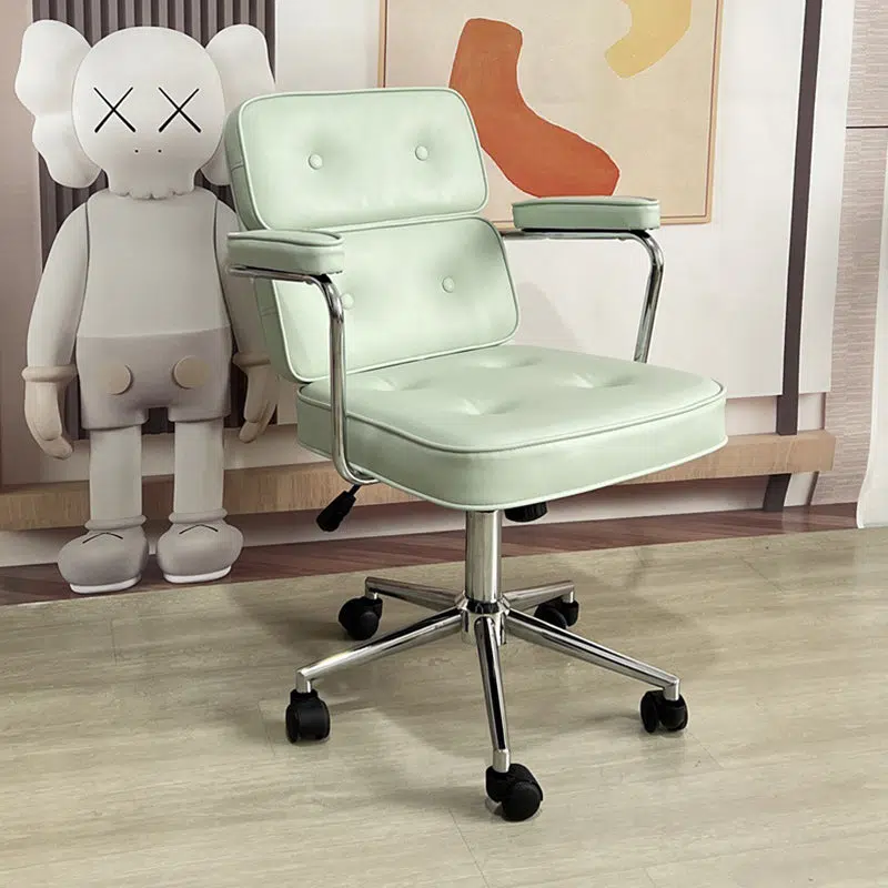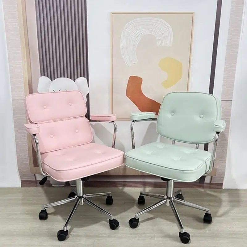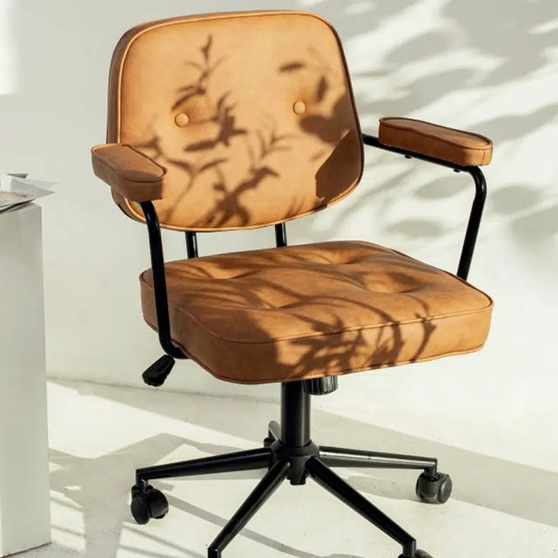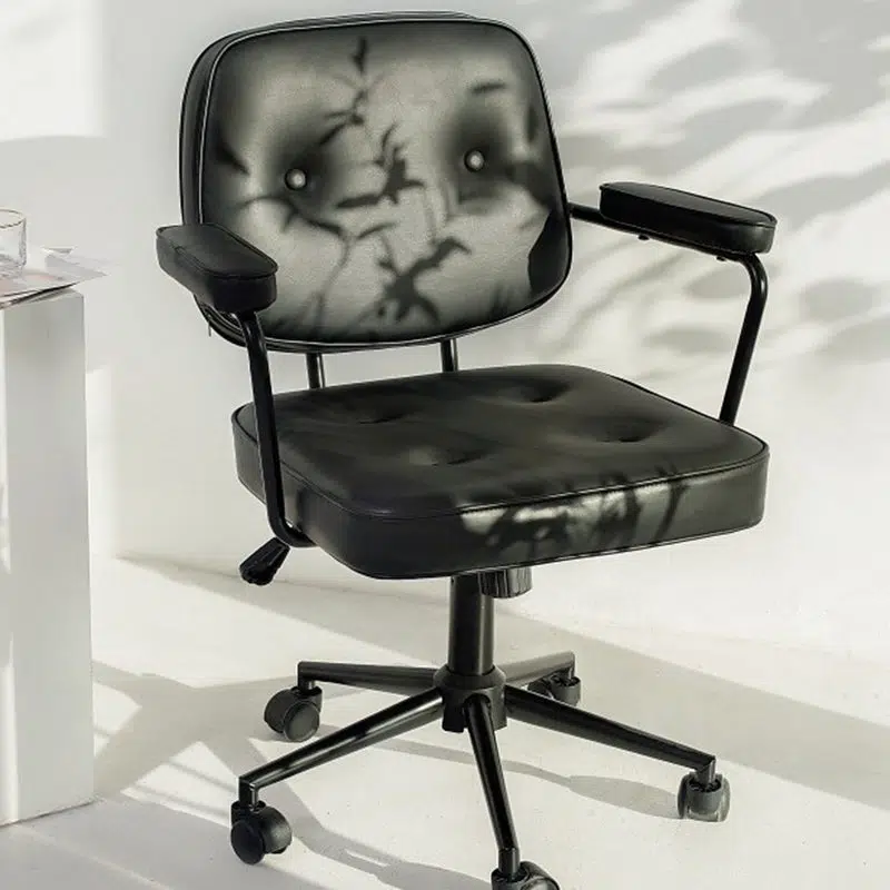 Modern Minimalist Lift Swivel Rectangular Square Metal Leather Desk Chair Backrest Armrest For Home Office