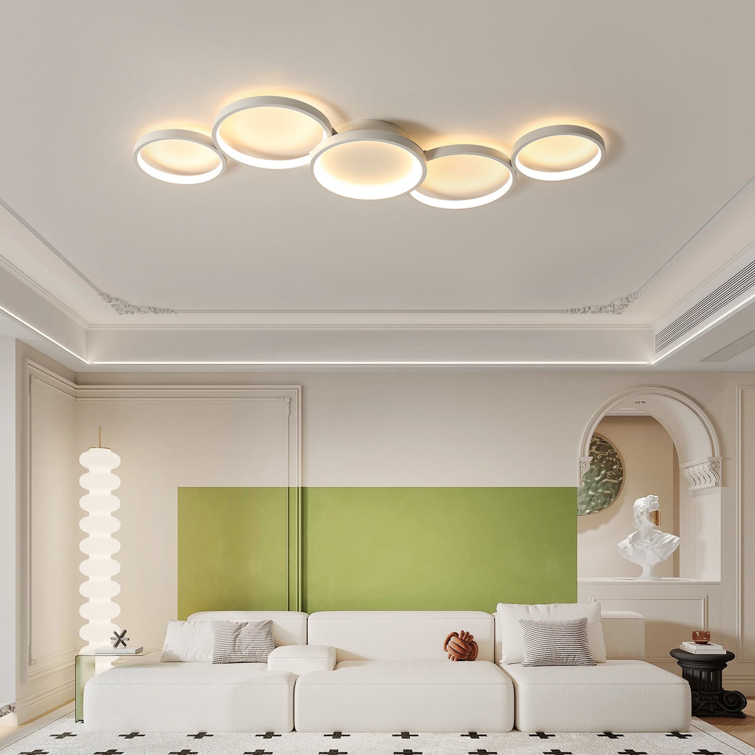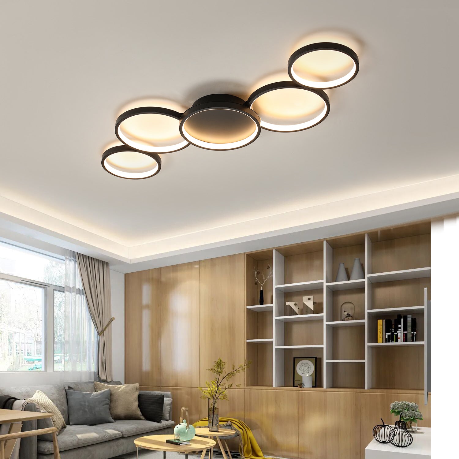 Modern Minimalist Multiple Circle Iron Aluminum Acrylic LED Semi-Flush Mount Ceiling Light For Living Room