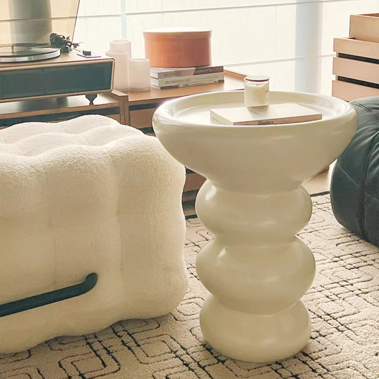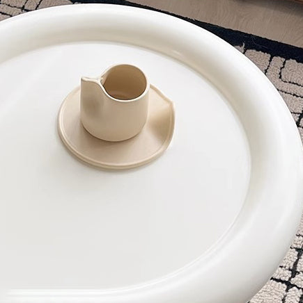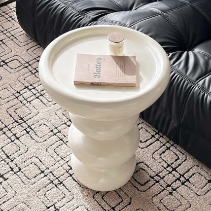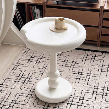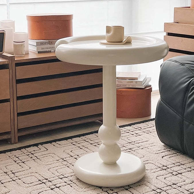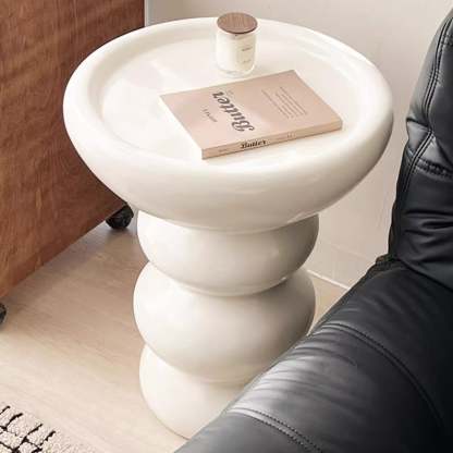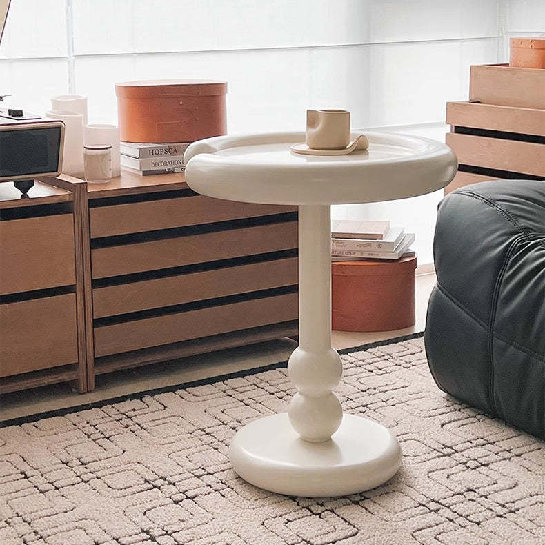 Modern Minimalist Oval Column Base Density Plate Beech Wood Fiberglass Side Table For Living Room