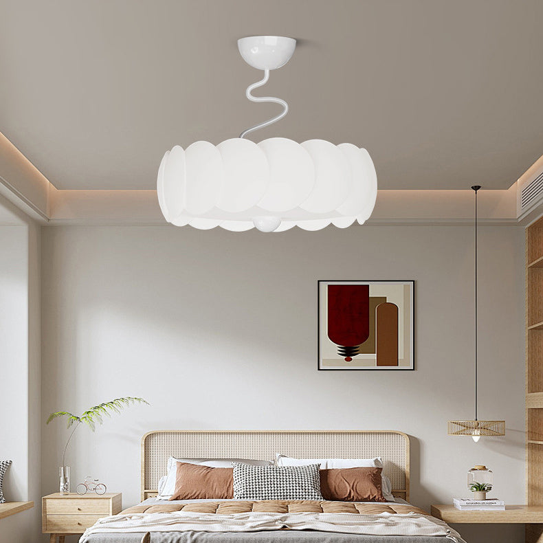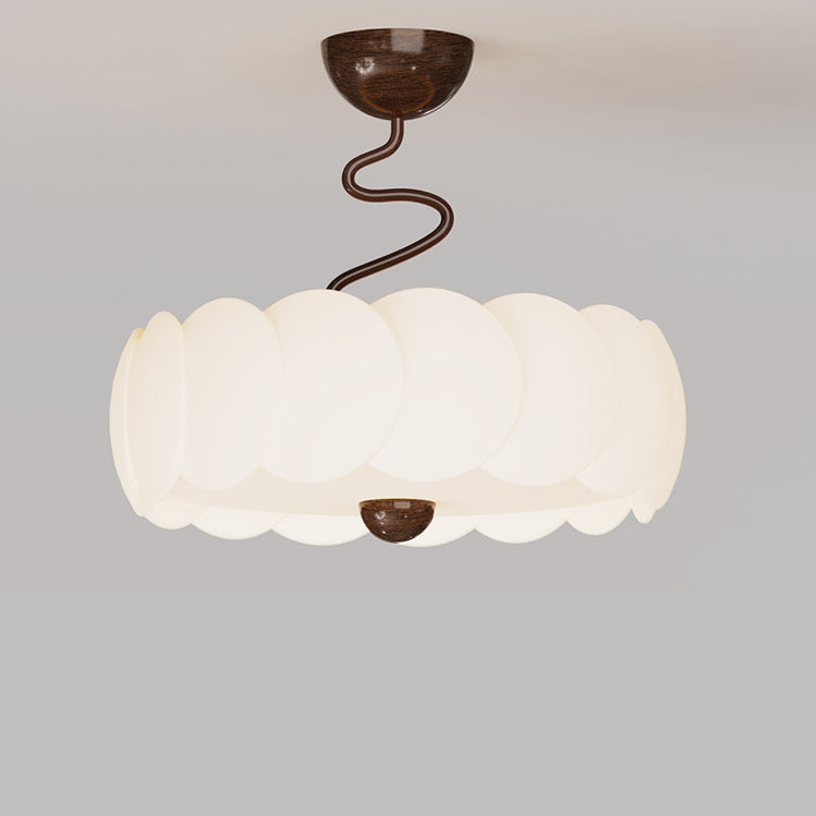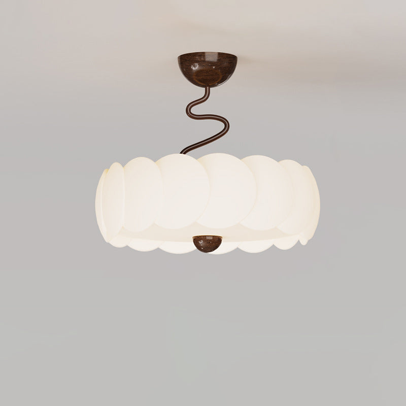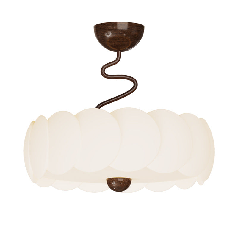 This modern minimalist semi-flush ceiling light features a soft curved round design in walnut and white. made of PE and iron. Its LED light delivers high color rendering. blue light protection. and eye-friendly illumination??perfect for a cozy bedroom or stylish living room.