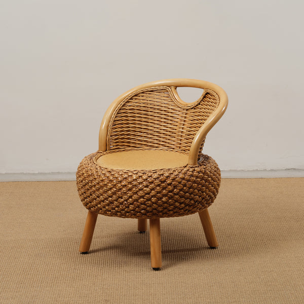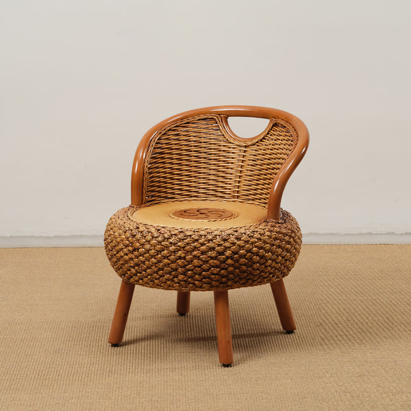 Modern Minimalist Rattan Wood Round Chair Backrest Armless For Living Room