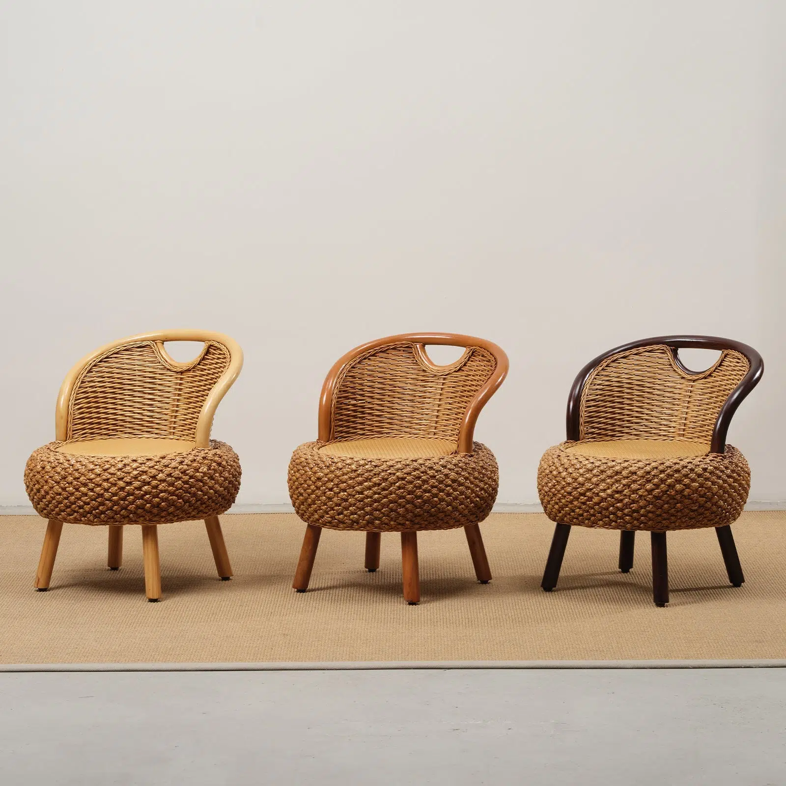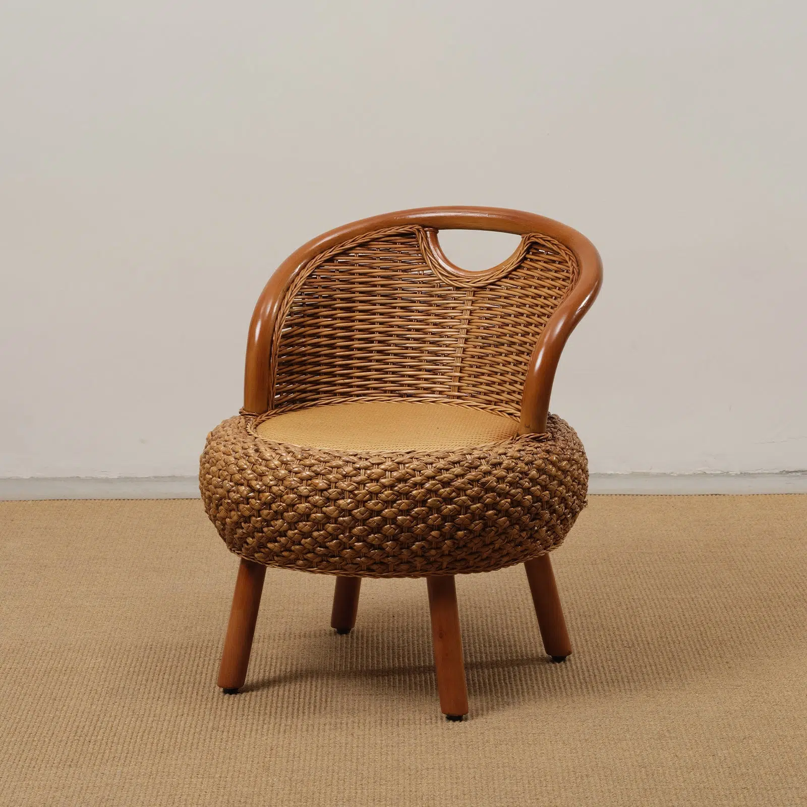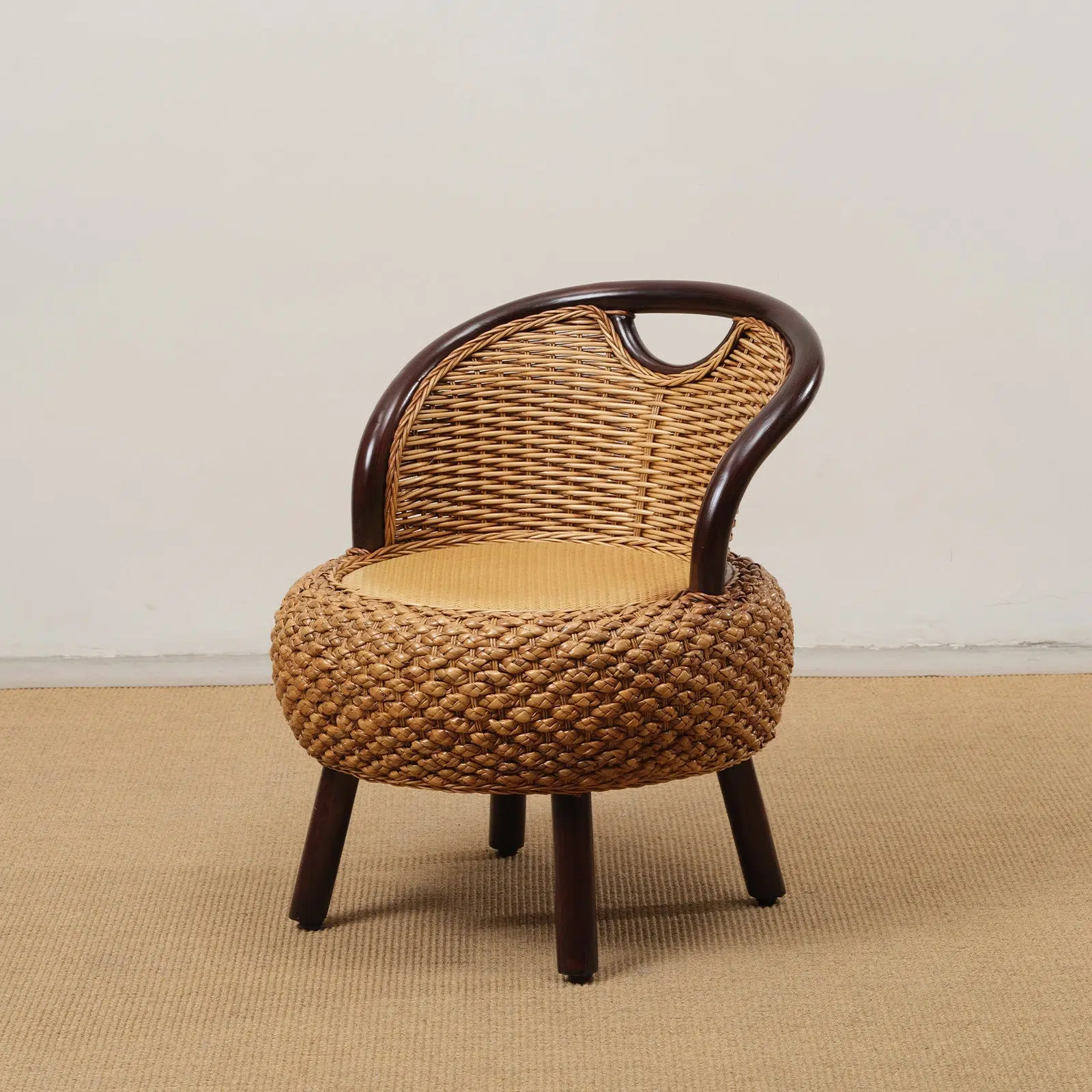 Modern Minimalist Rattan Wood Round Chair Backrest Armless For Living Room