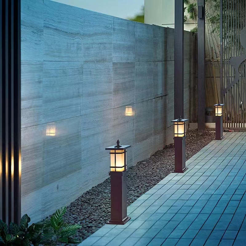 Modern Minimalist Rectangle Lattice Glass Aluminum 1-Light Landscape Lighting Outdoor Light For Garden