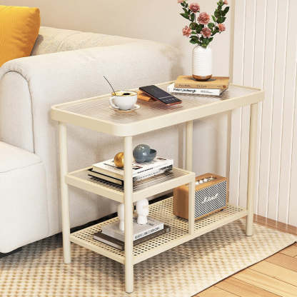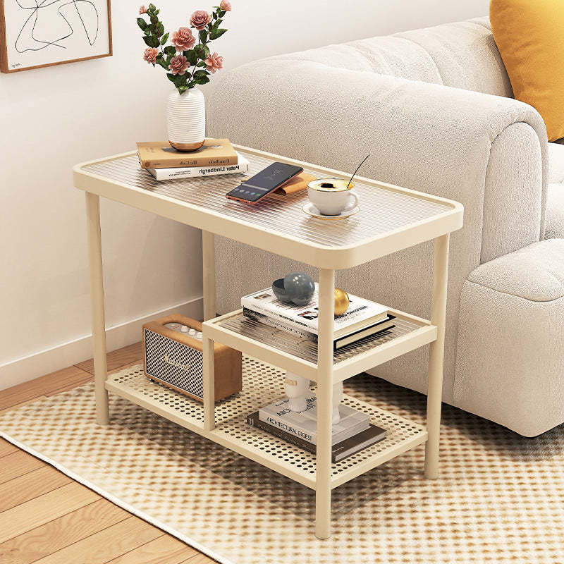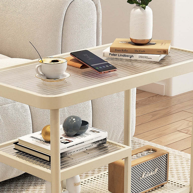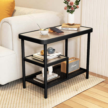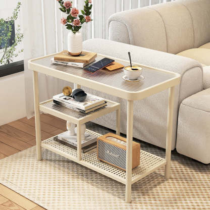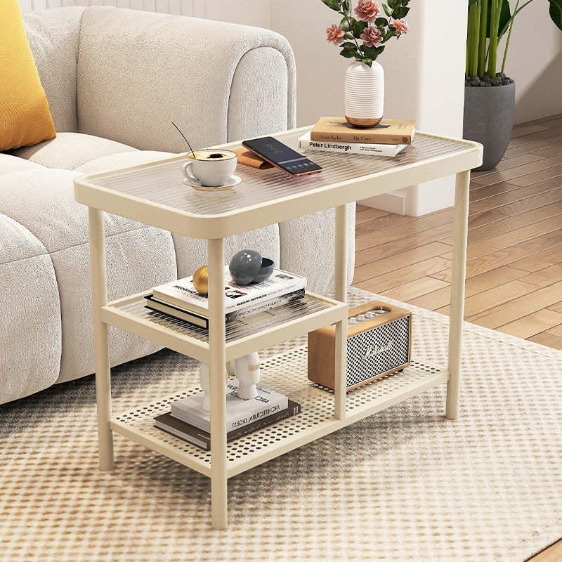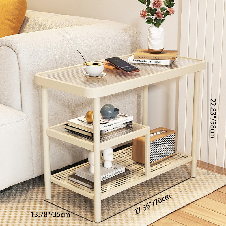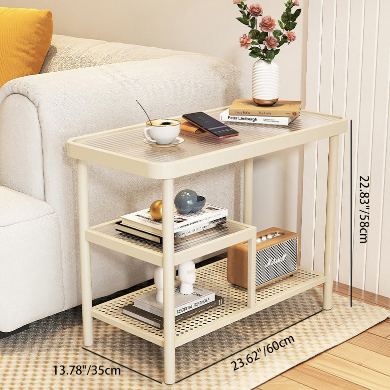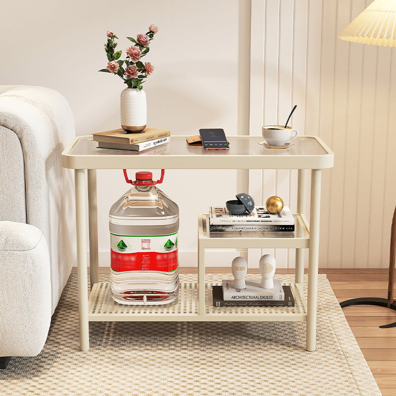 Modern Minimalist Rectangular Glass Iron Side Table 3-Tier For Living Room