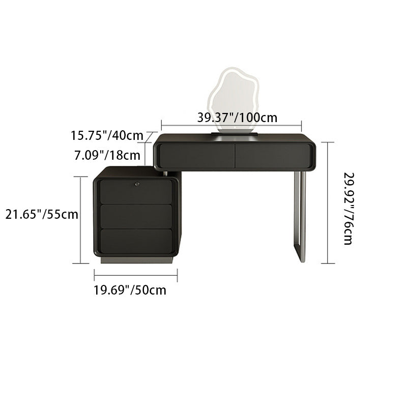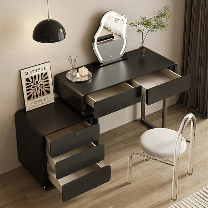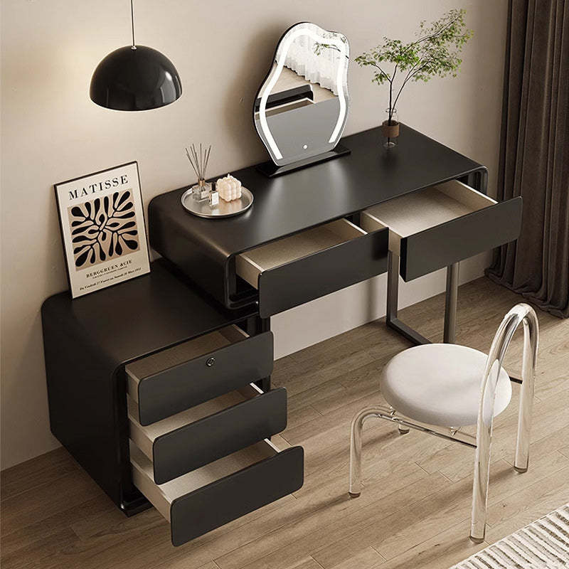 Modern Minimalist Rectangular Iron Wood Makeup Vanity 5 - Drawer For Bedroom