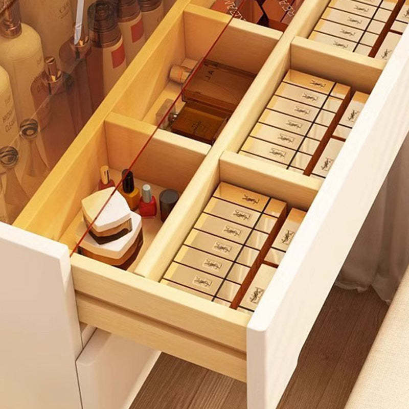 Modern Minimalist Rectangular Solid Wood Glass Makeup Vanity 3-Drawer For Bedroom