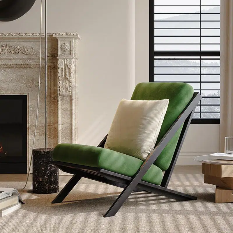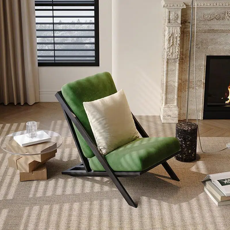 Modern Minimalist Rectangular Upholstered Velvet Fabric Carbon Steel Frame Lounge Chair Backrest For Living Room