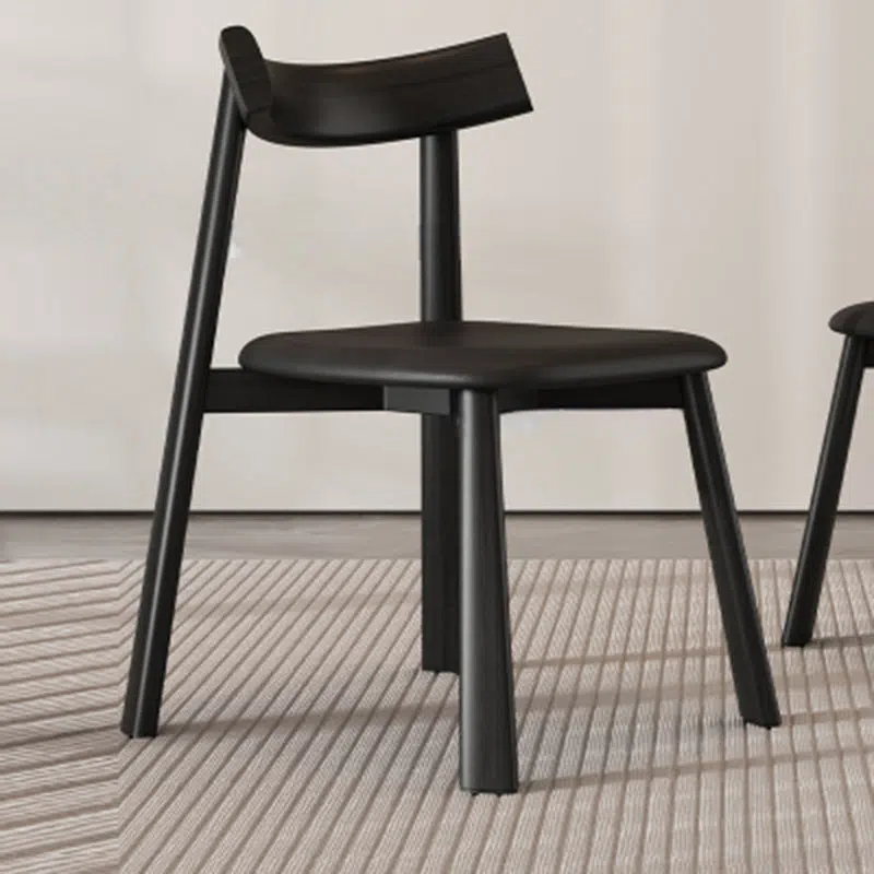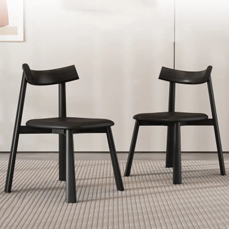 Modern Minimalist Rectangular Wood Leather Chair Backrest Armless For Living Room