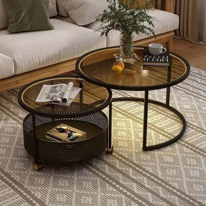 Modern Minimalist Removable Round Glass Metal End Table 3-Tier For Living Room