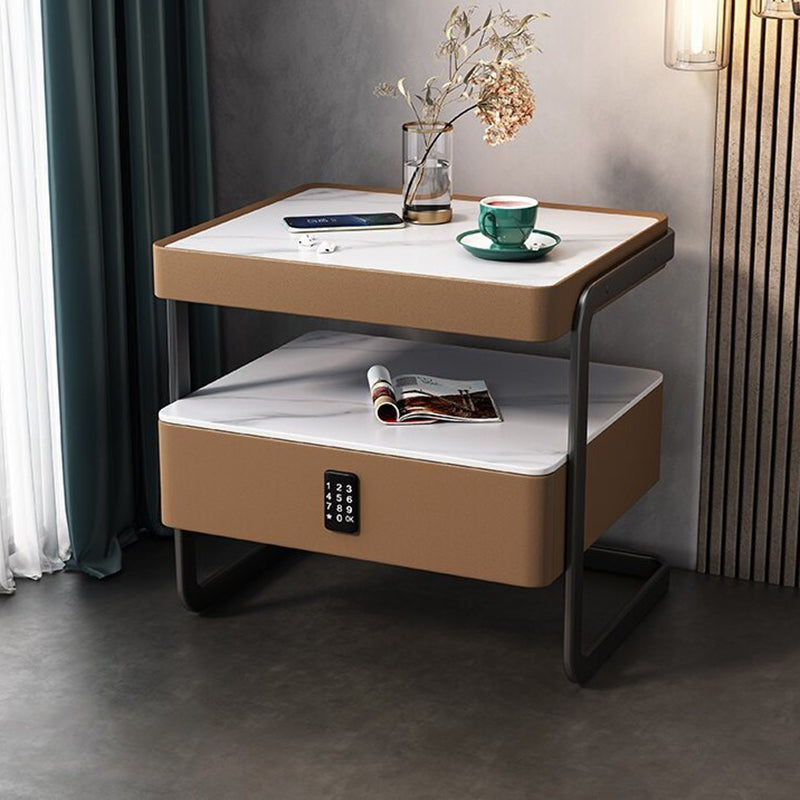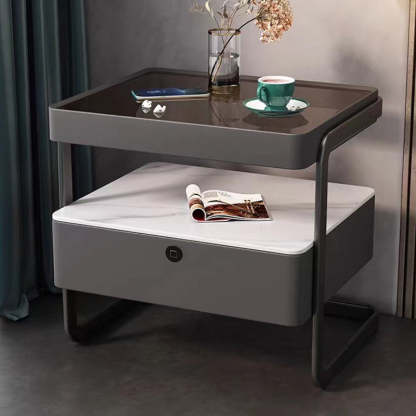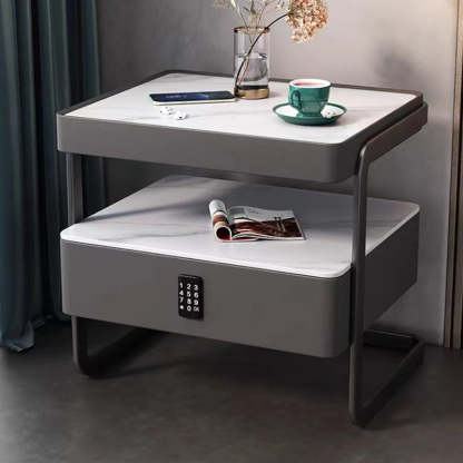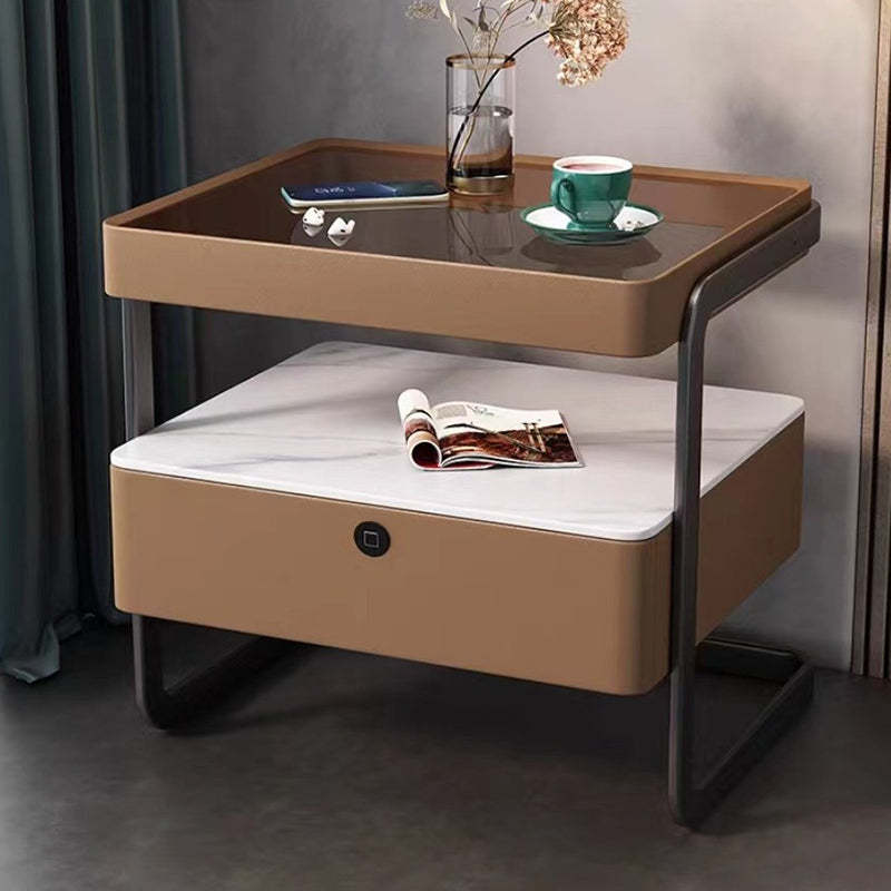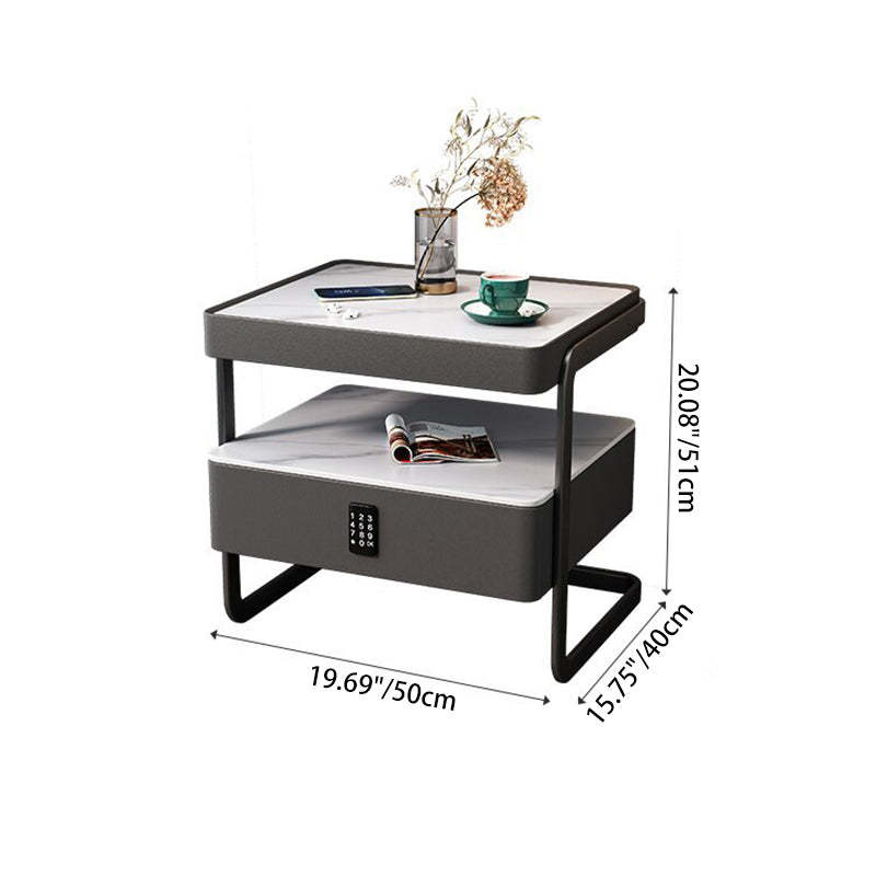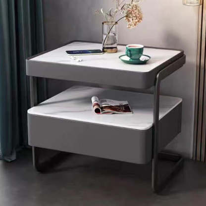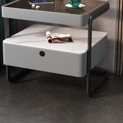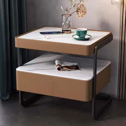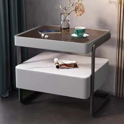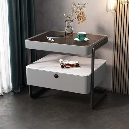 This high-end modern nightstand features a sleek rectangular design crafted from rock slab. wood. glass. and PU leather with a durable carbon steel frame. Available in beige. light gray. dark gray. and orange. it offers a refined 1-drawer storage solution that blends luxury with practicality��perfect for bedrooms and living spaces.