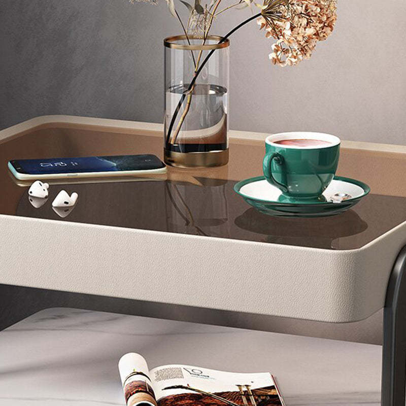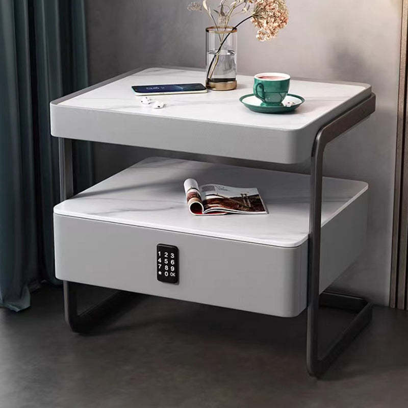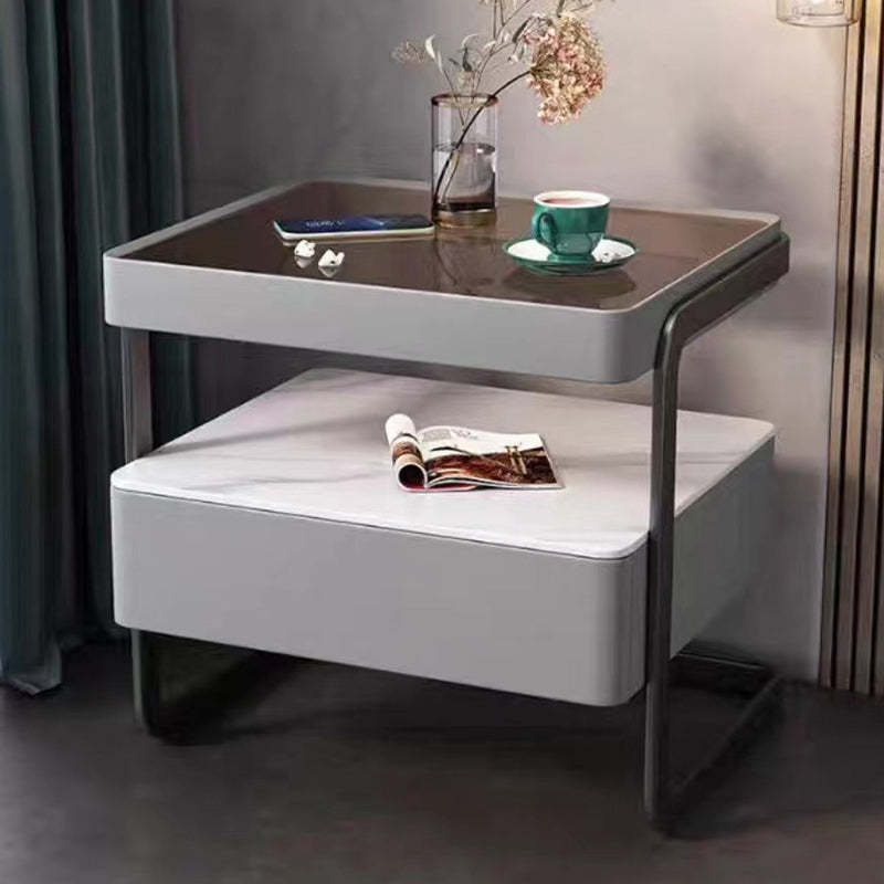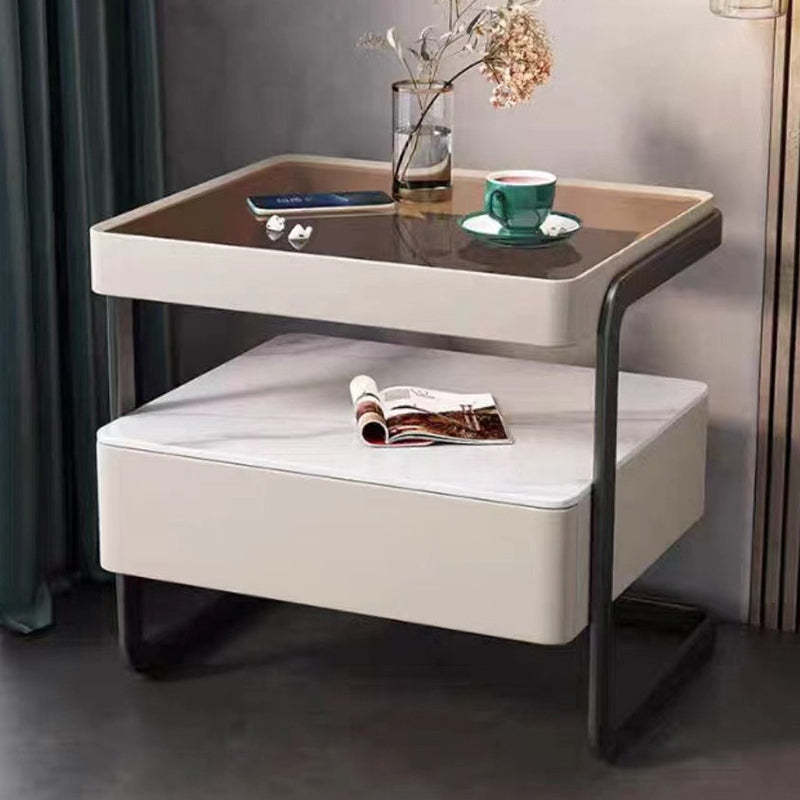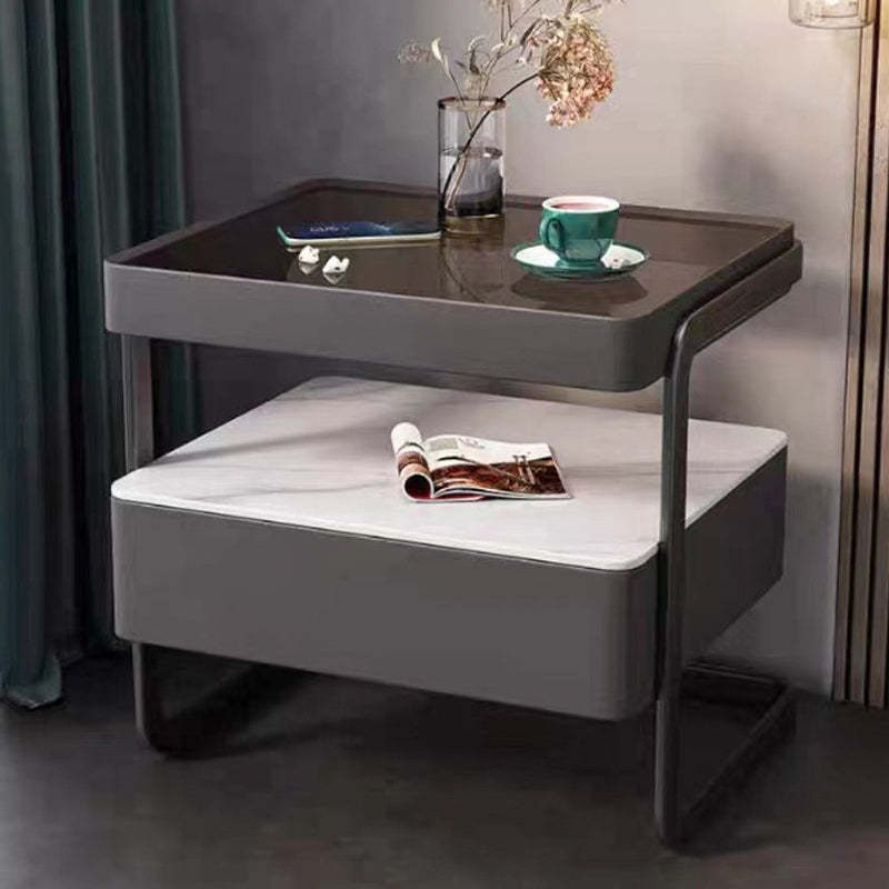 This high-end modern nightstand features a sleek rectangular design crafted from rock slab. wood. glass. and PU leather with a durable carbon steel frame. Available in beige. light gray. dark gray. and orange. it offers a refined 1-drawer storage solution that blends luxury with practicality��perfect for bedrooms and living spaces.