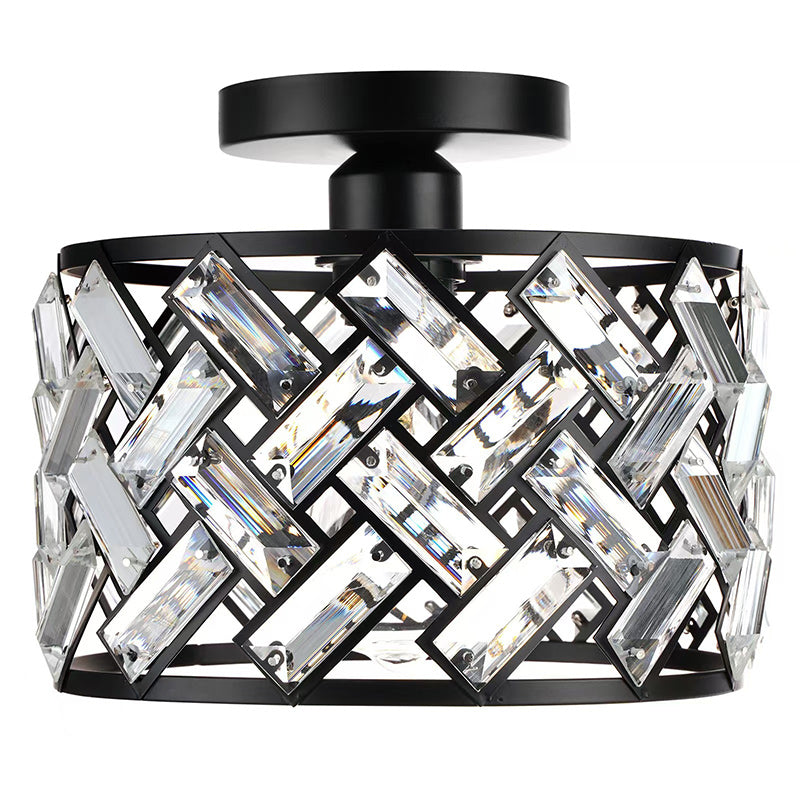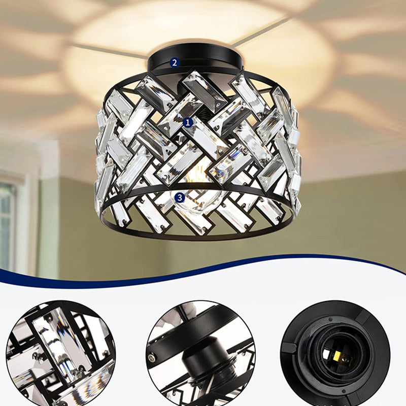Modern Minimalist Round Aluminum Frame Crystal Shade 1-Light Semi-Flush Mount Ceiling Light For Living Room