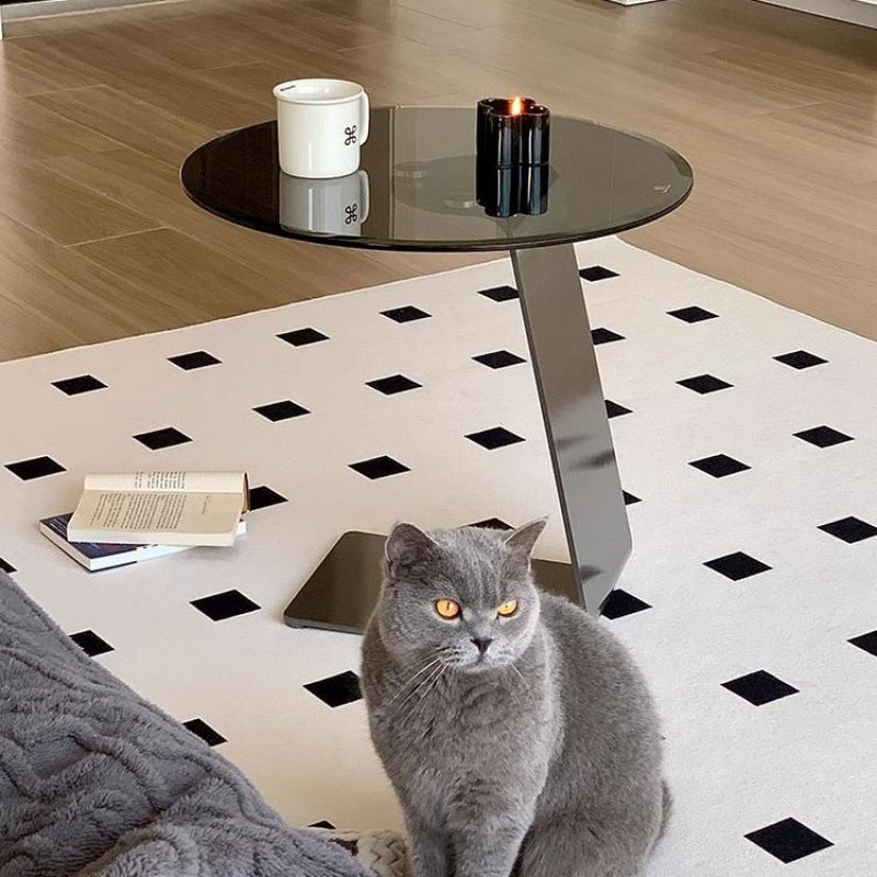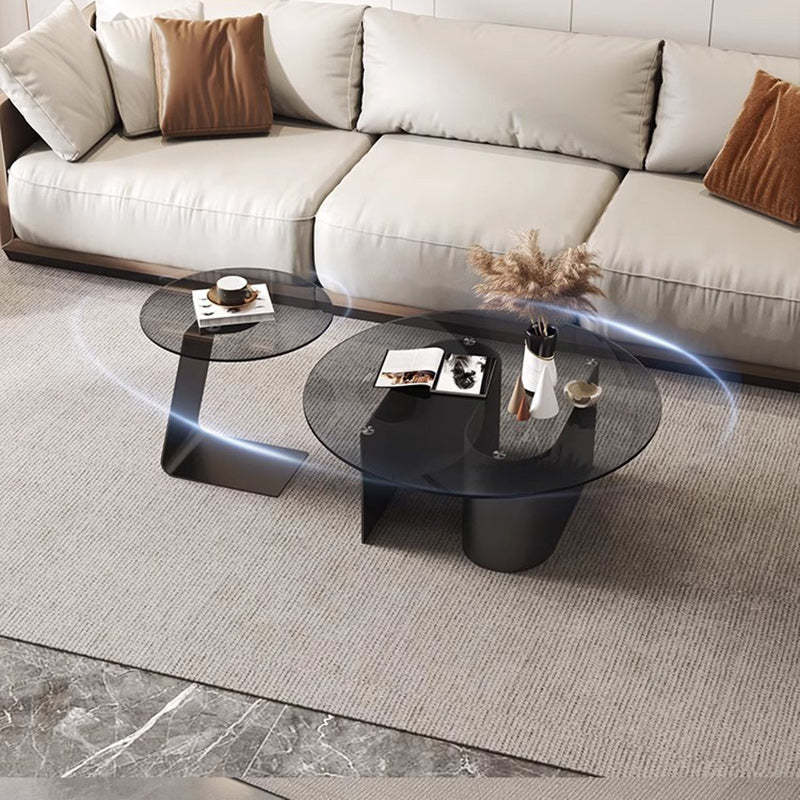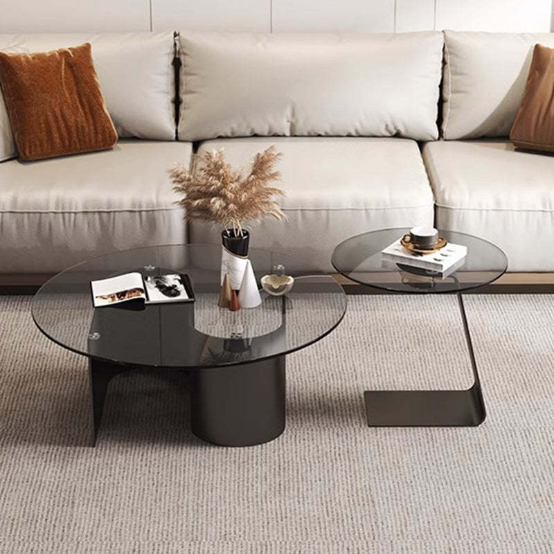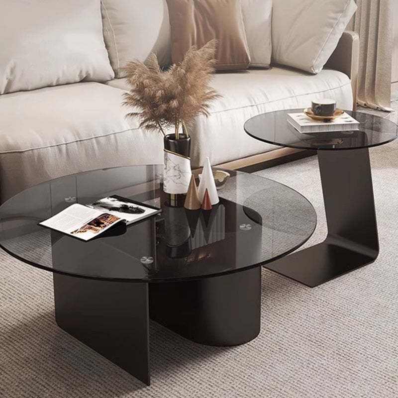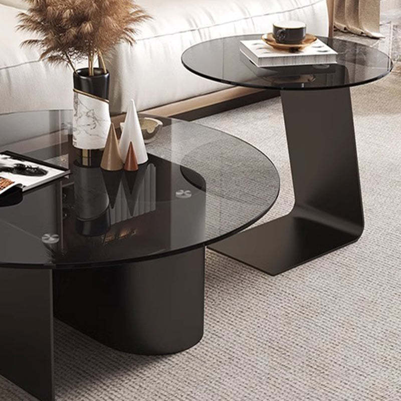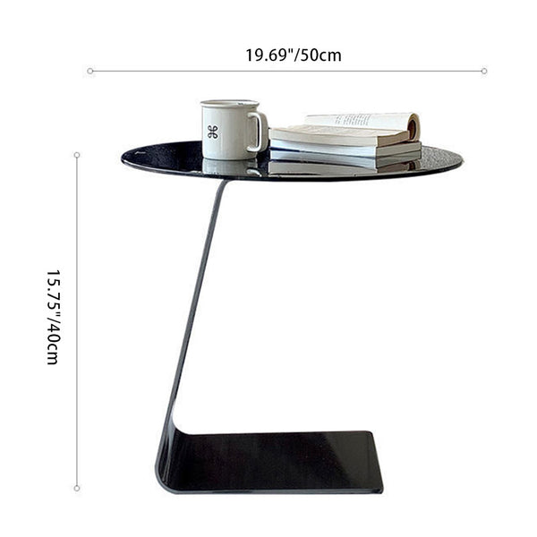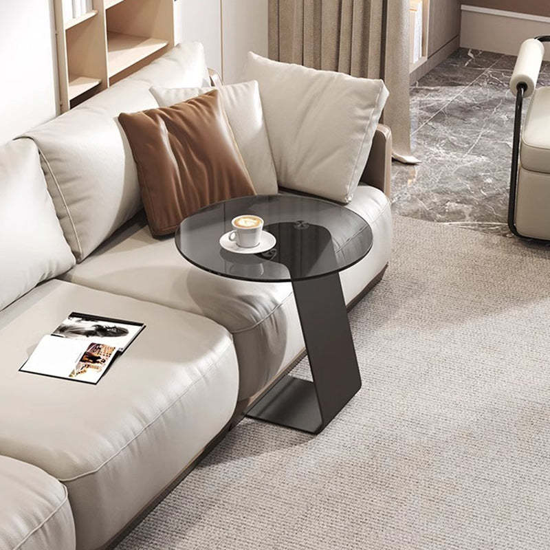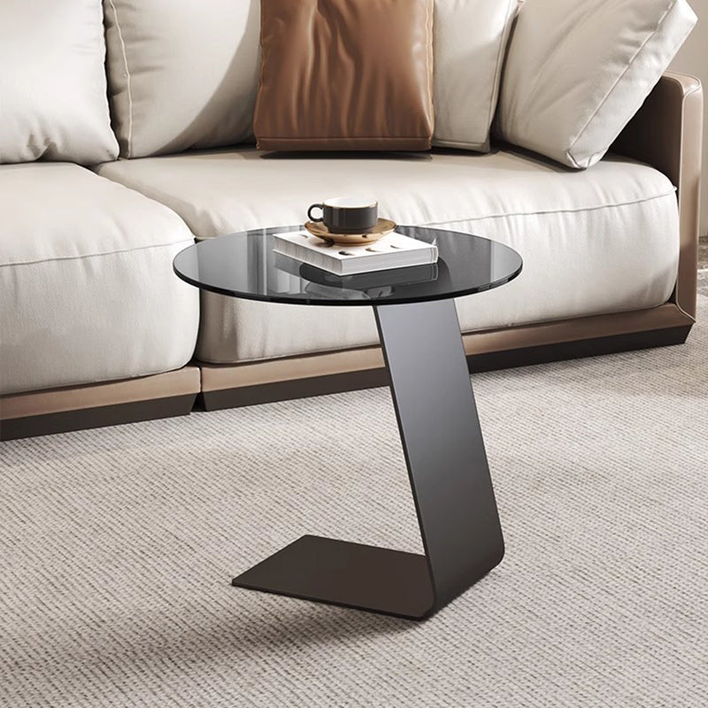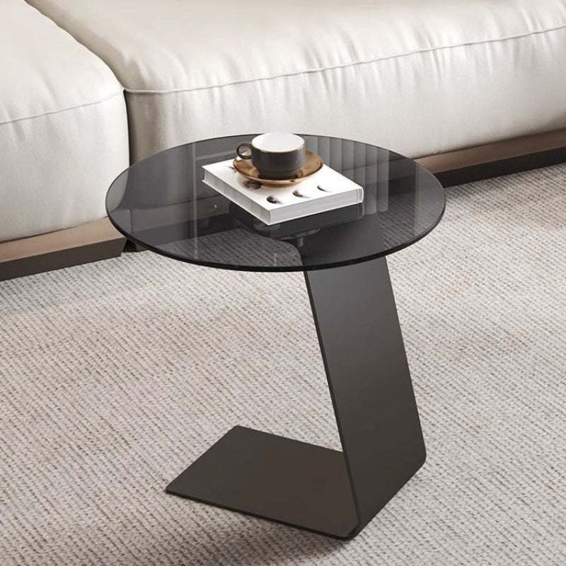 Modern Minimalist Round C-Shaped Glass Carbon Steel End Table For Living Room