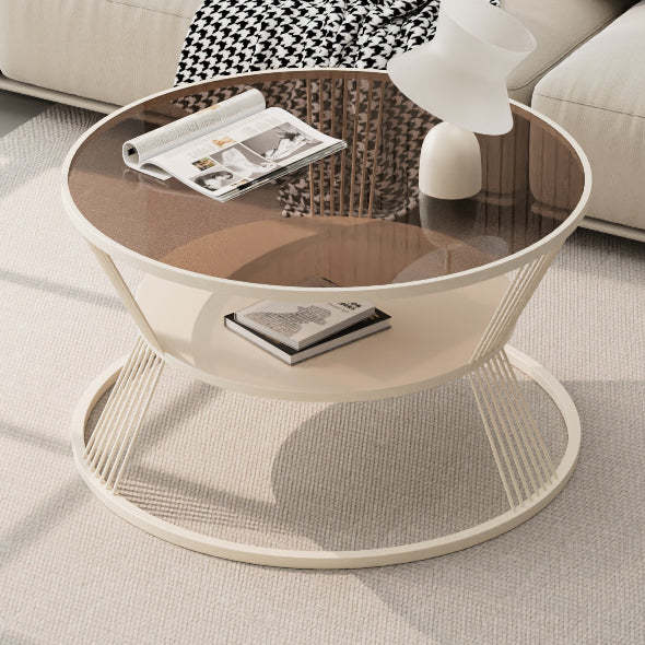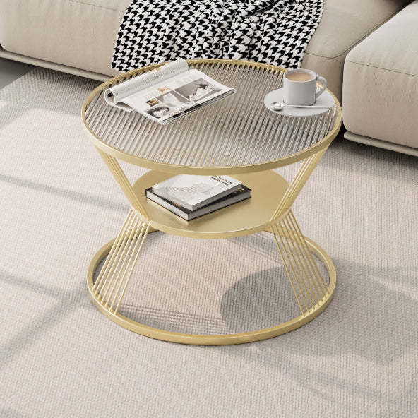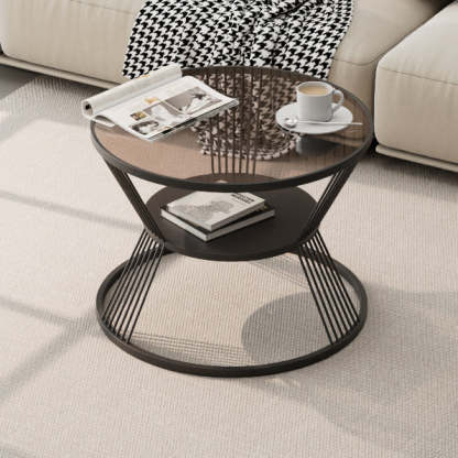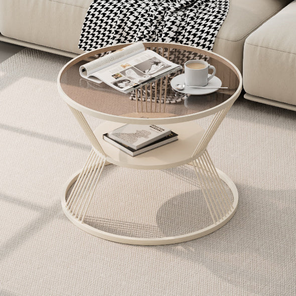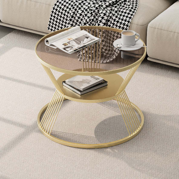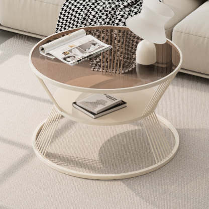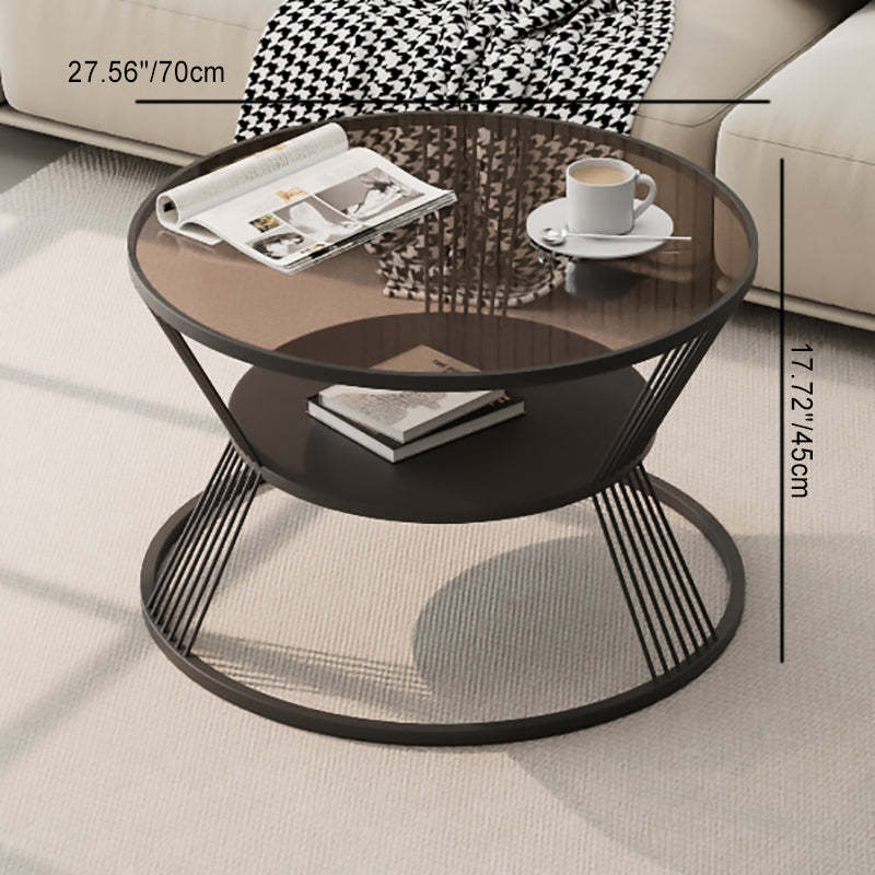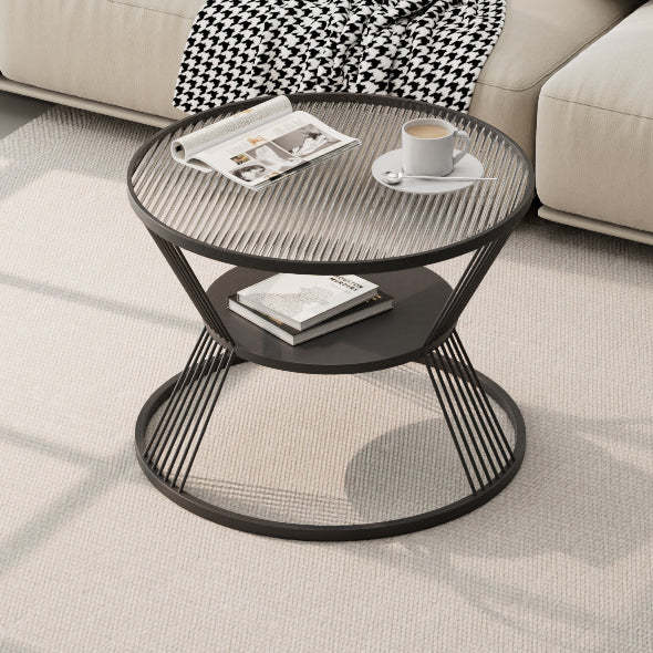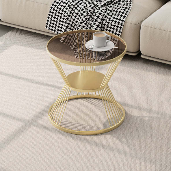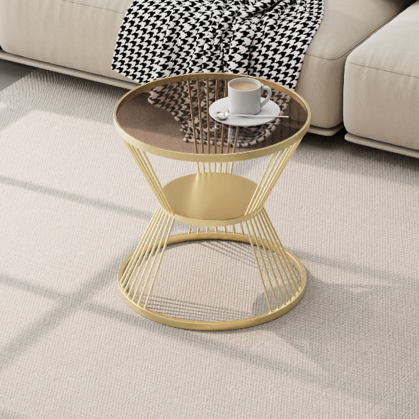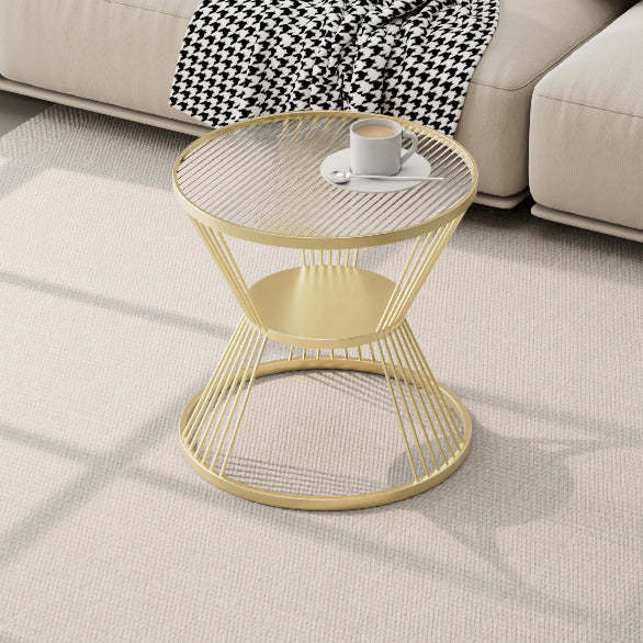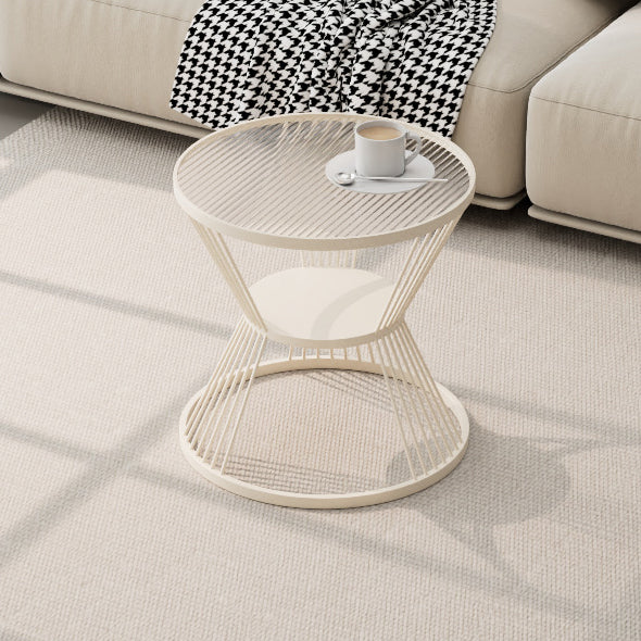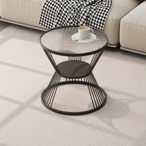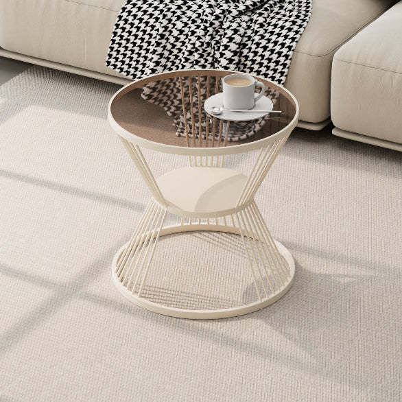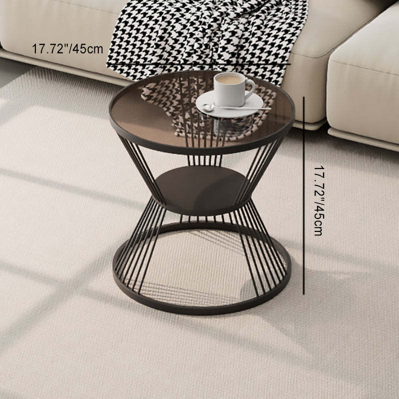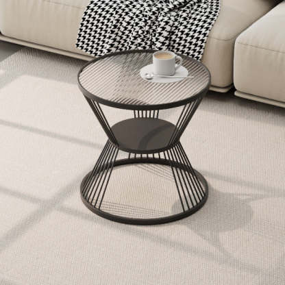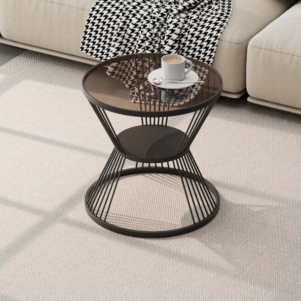 Modern Minimalist Round Hourglass Shape Glass Iron Coffee Table 2-Tier For Living Room