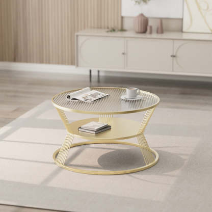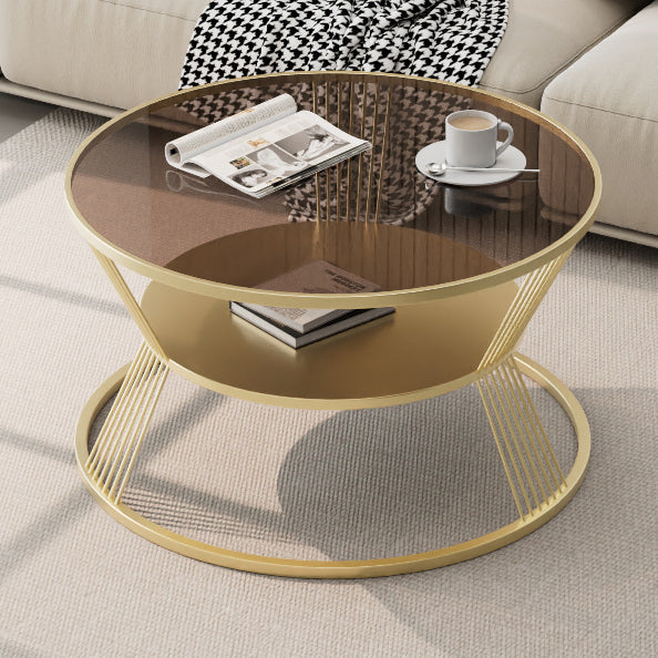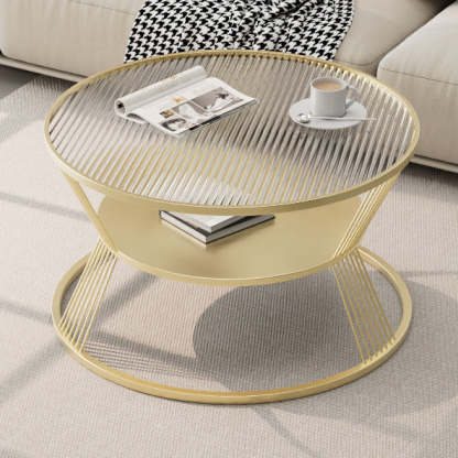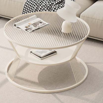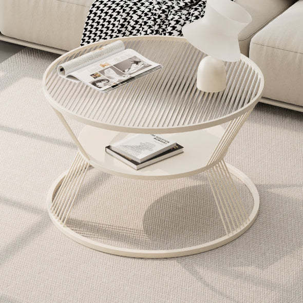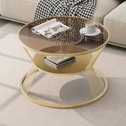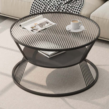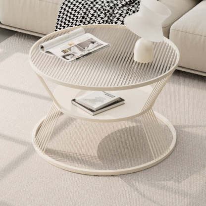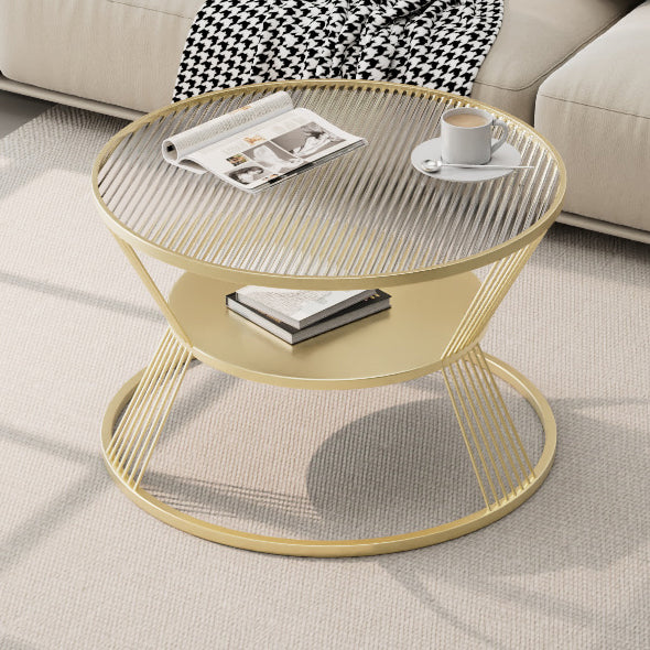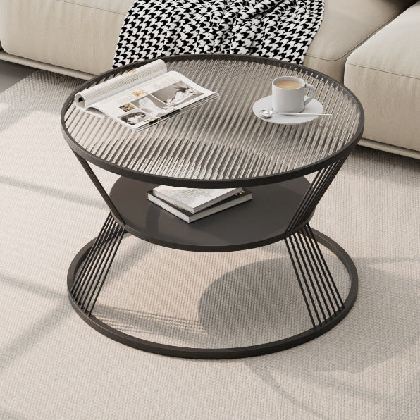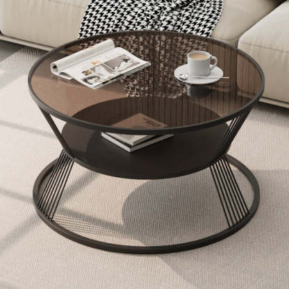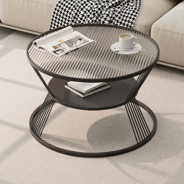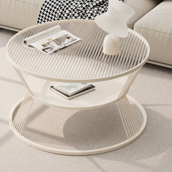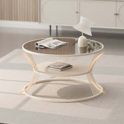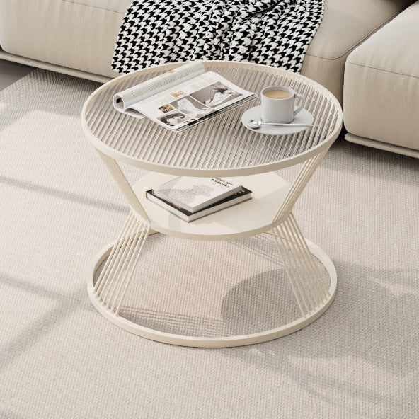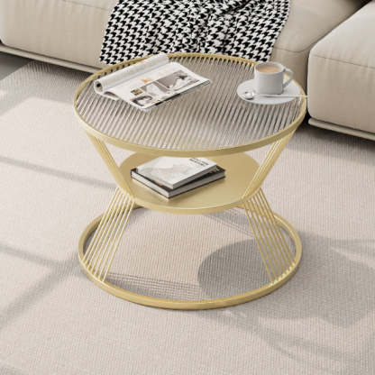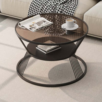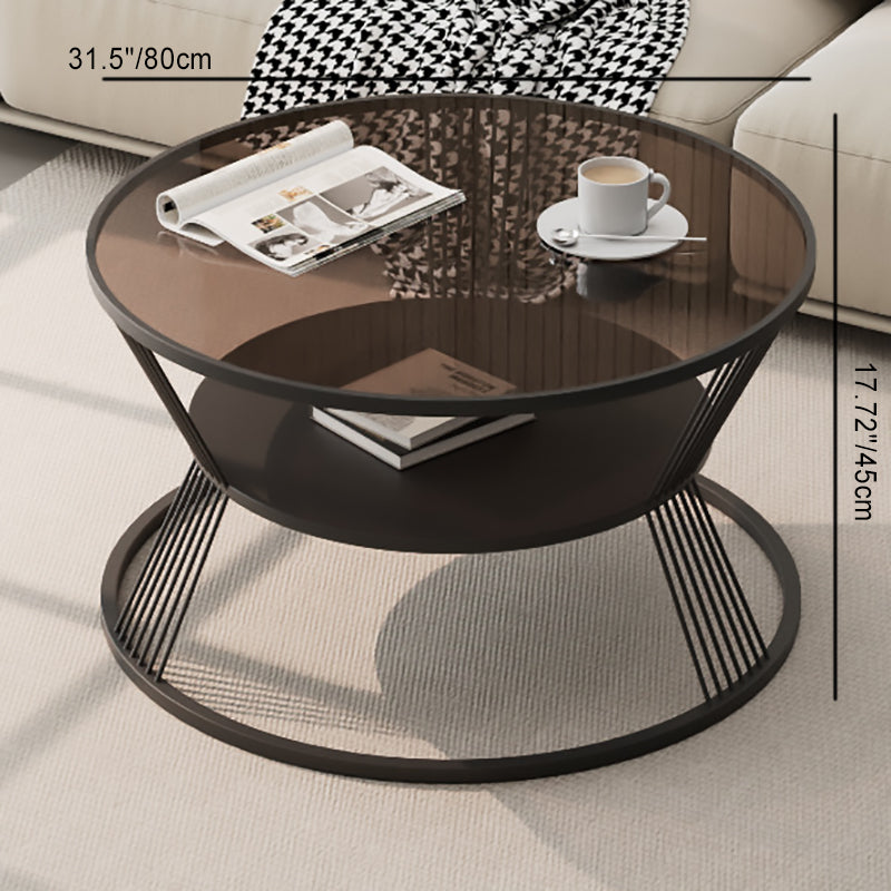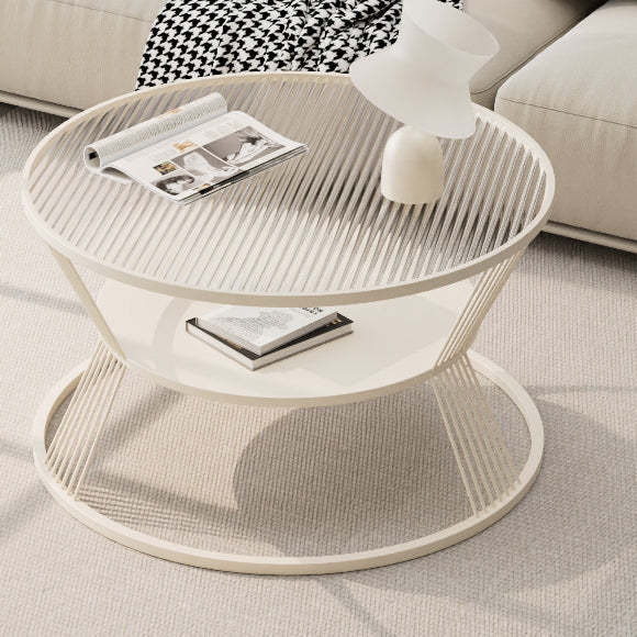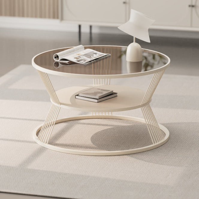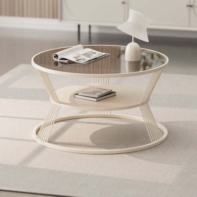 Modern Minimalist Round Hourglass Shape Glass Iron Coffee Table 2-Tier For Living Room