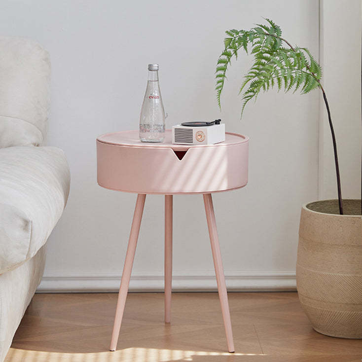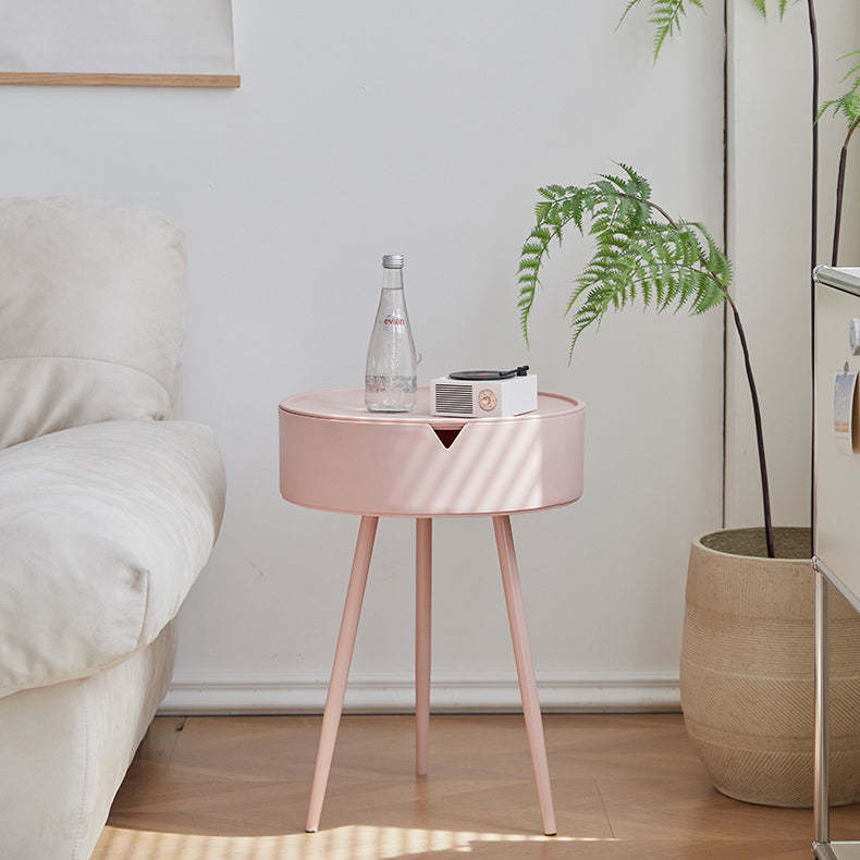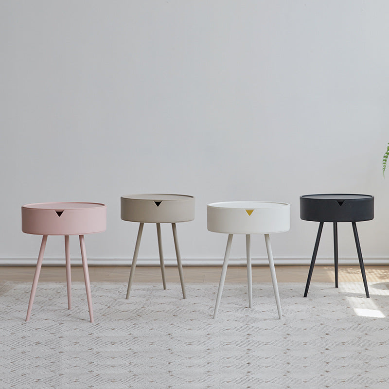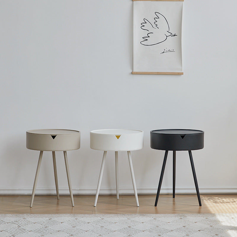 Modern Minimalist Round Iron Plastic End Table 1-Storage For Living Room