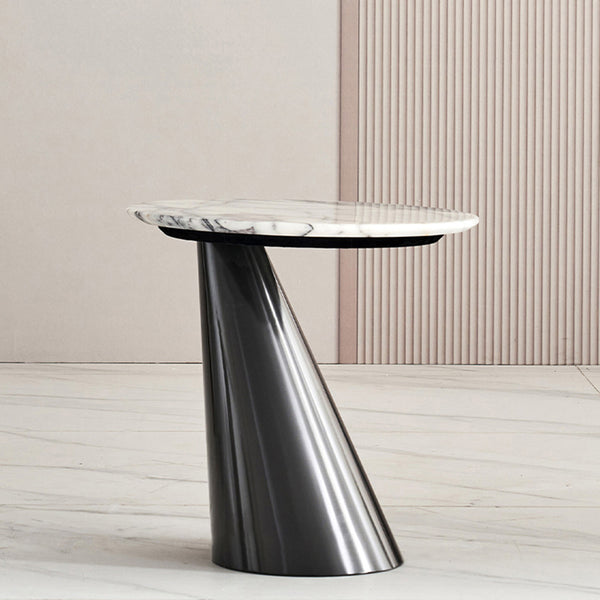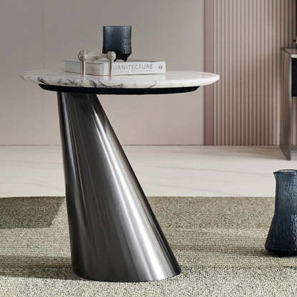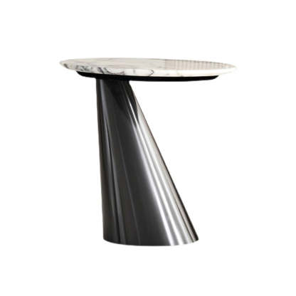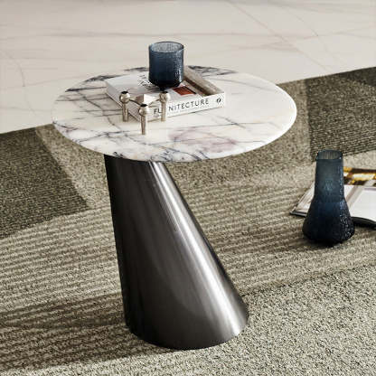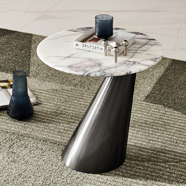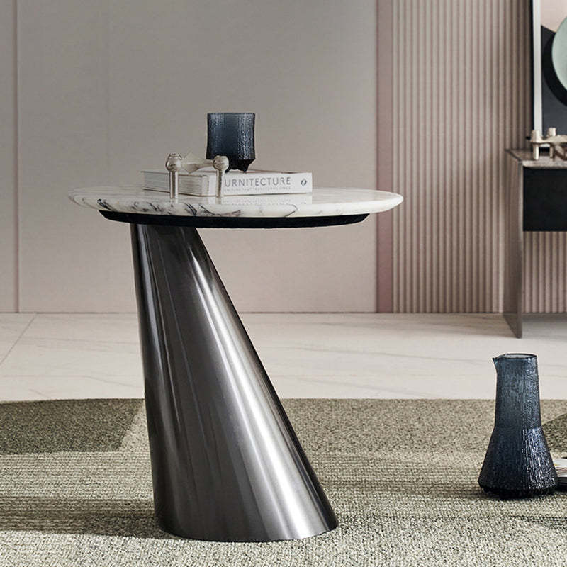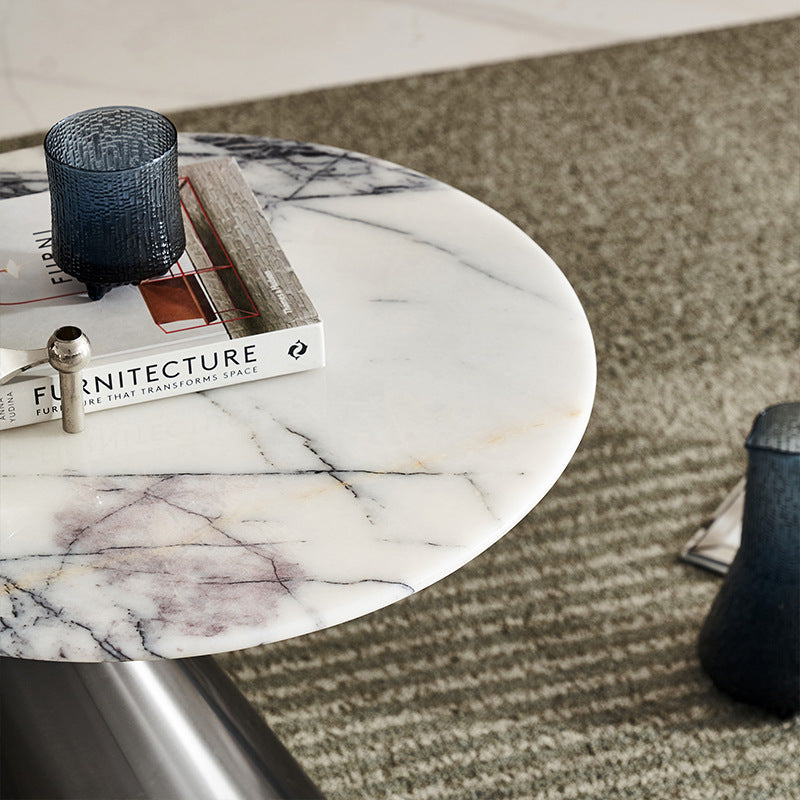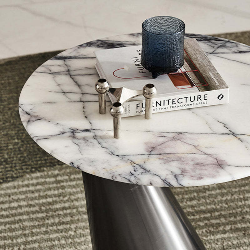 Modern Minimalist Round Marble Stainless Steel End Table 1-Tier For Living Room