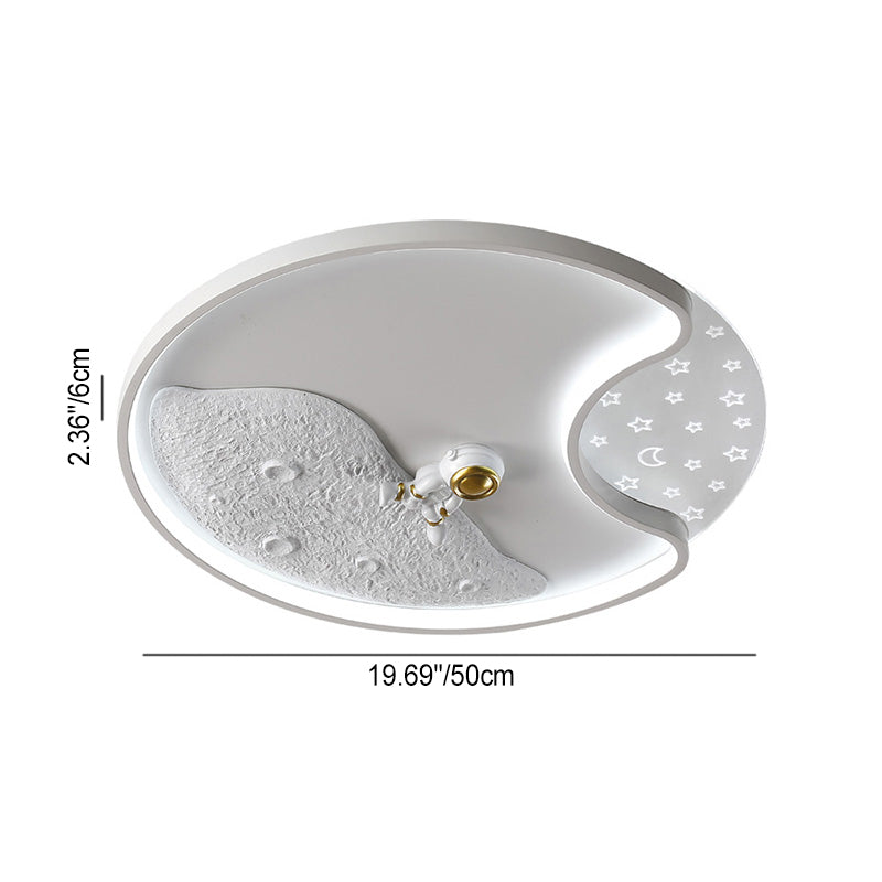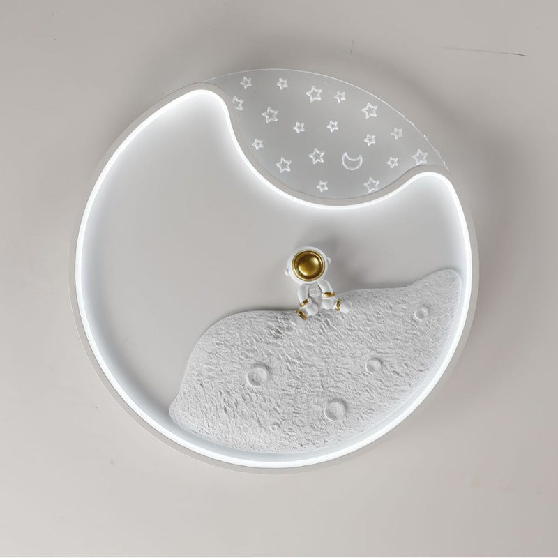 Modern Minimalist Round Moon Astronaut Iron Acrylic LED Flush Mount Ceiling Light For Bedroom