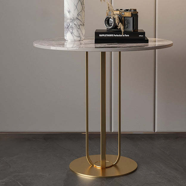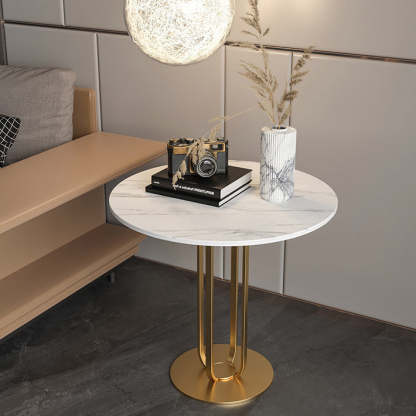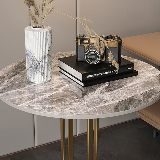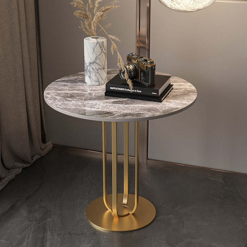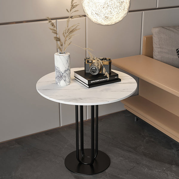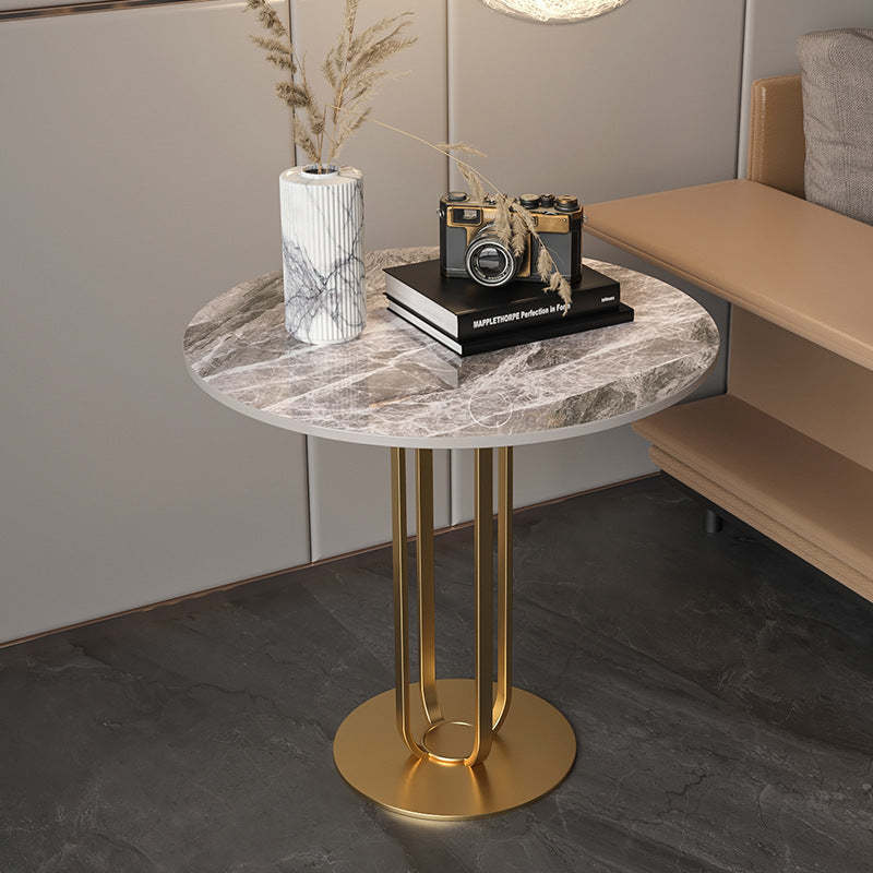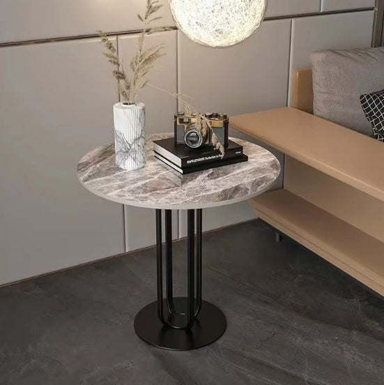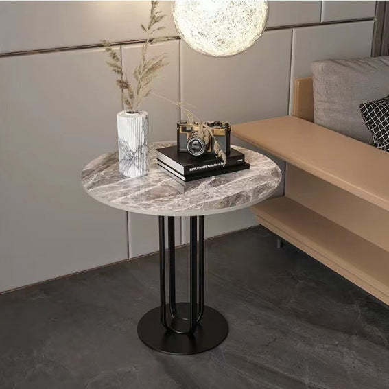 Modern Minimalist Round Rock Slab Iron Coffee Table For Living Room