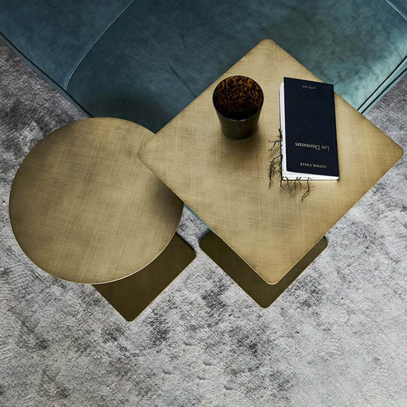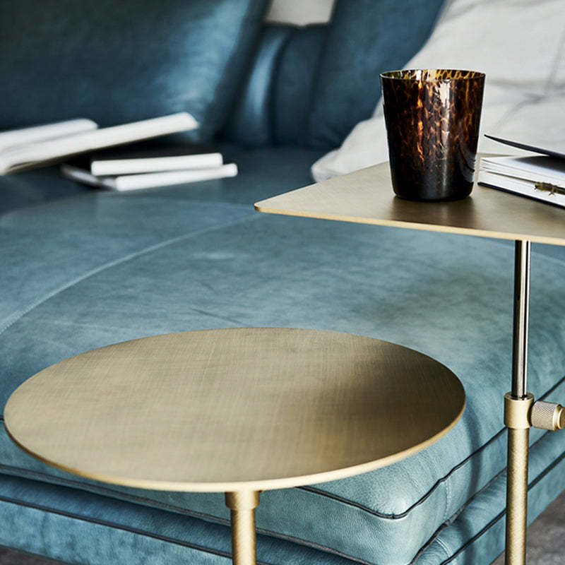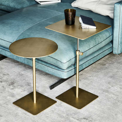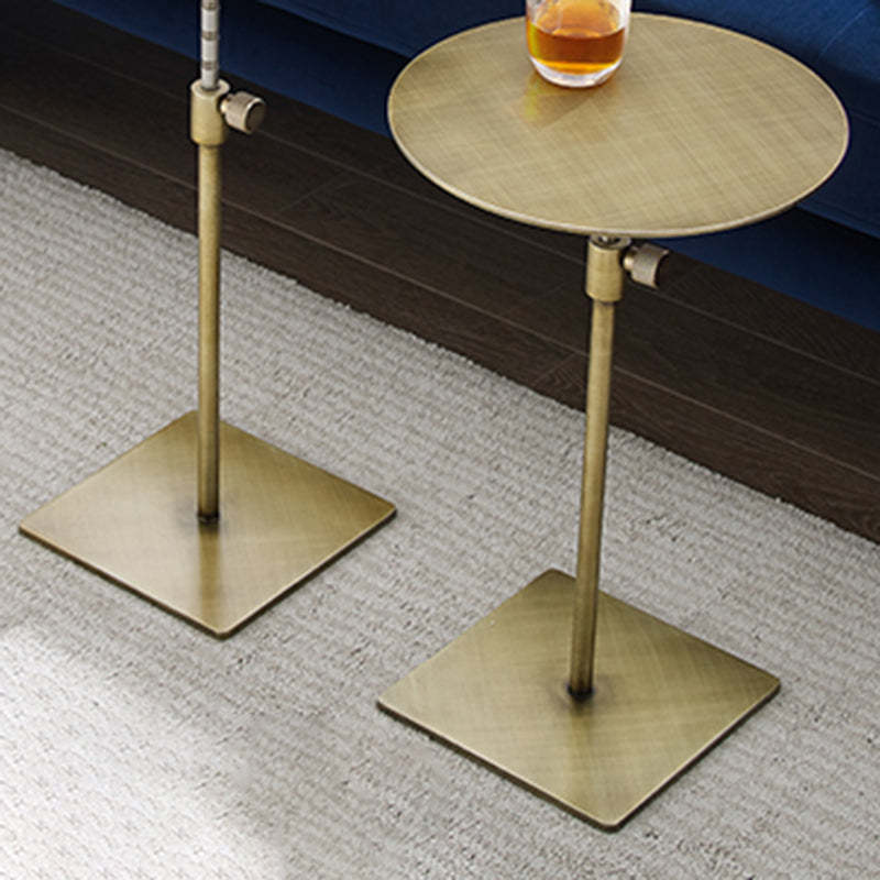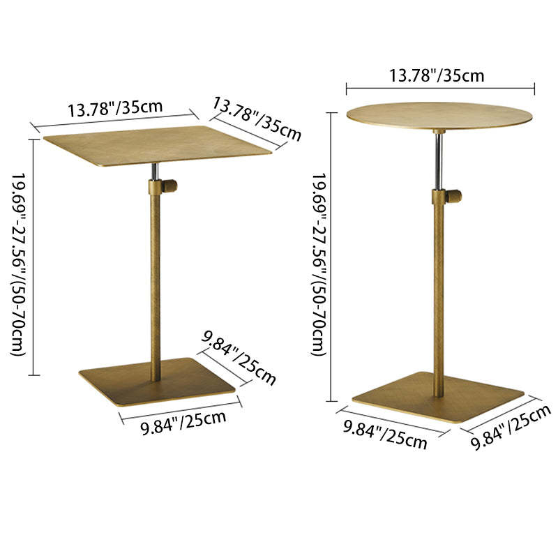 Modern Minimalist Round Square Stainless Steel End Table Height Adjustable 1-Tier For Living Room