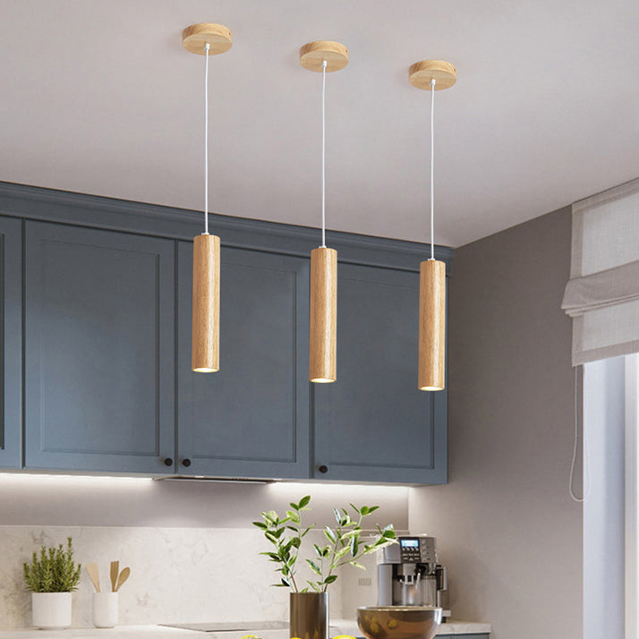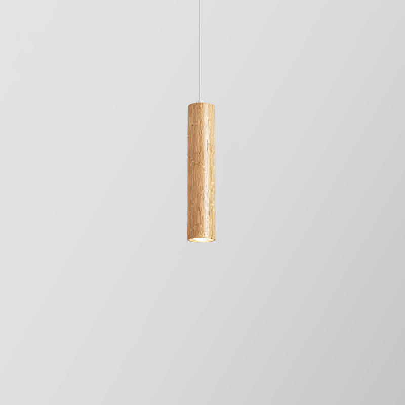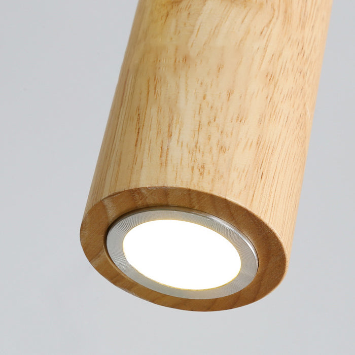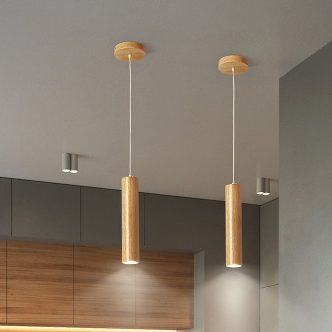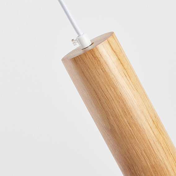 Modern Minimalist Rubberwood Cylinder Spotlight LED Pendant Light For Bedroom