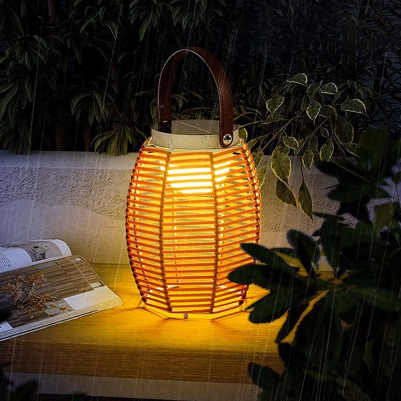 Modern Minimalist Solar Octagonal Lantern Iron Rattan LED Outdoor Light For Garden