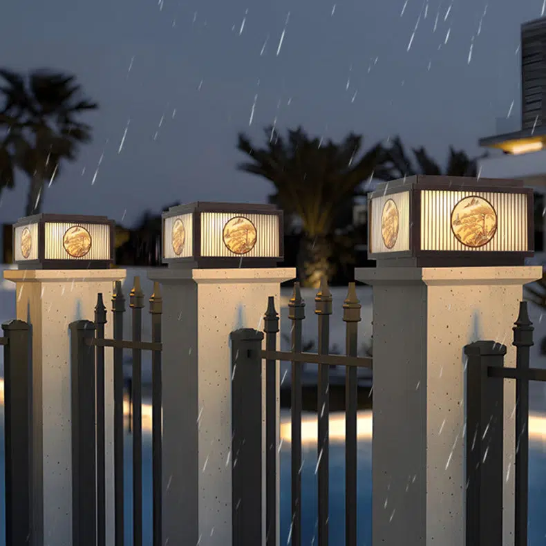 Modern Minimalist Solar Waterproof Square Aluminum Glass LED Post Head Light For Garden