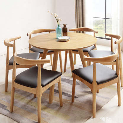 Enhance your dining space with this modern minimalist solid wood round dining table. designed to comfortably seat 4-6 people. The natural wood finish brings warmth and elegance. making it perfect for any dining room.