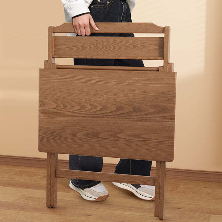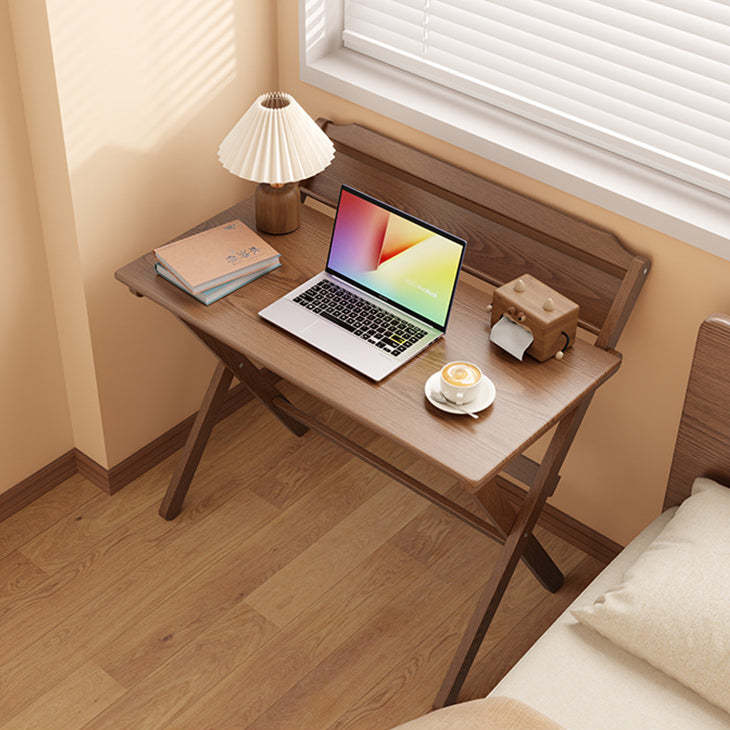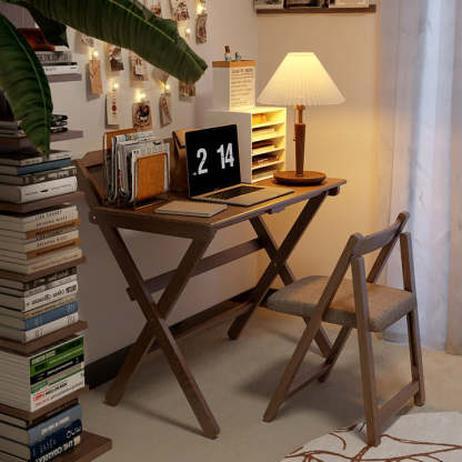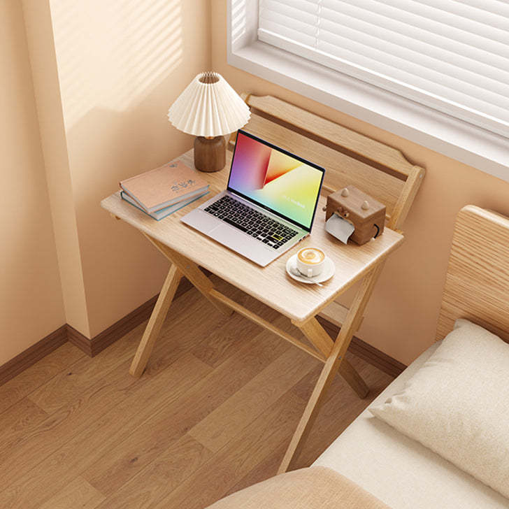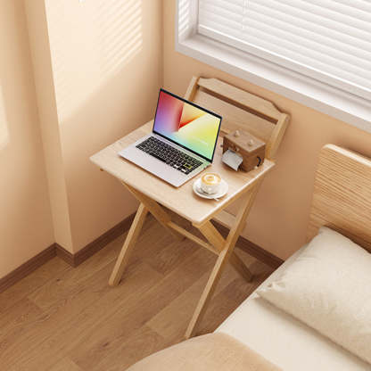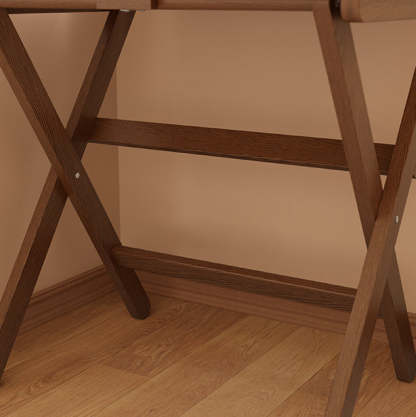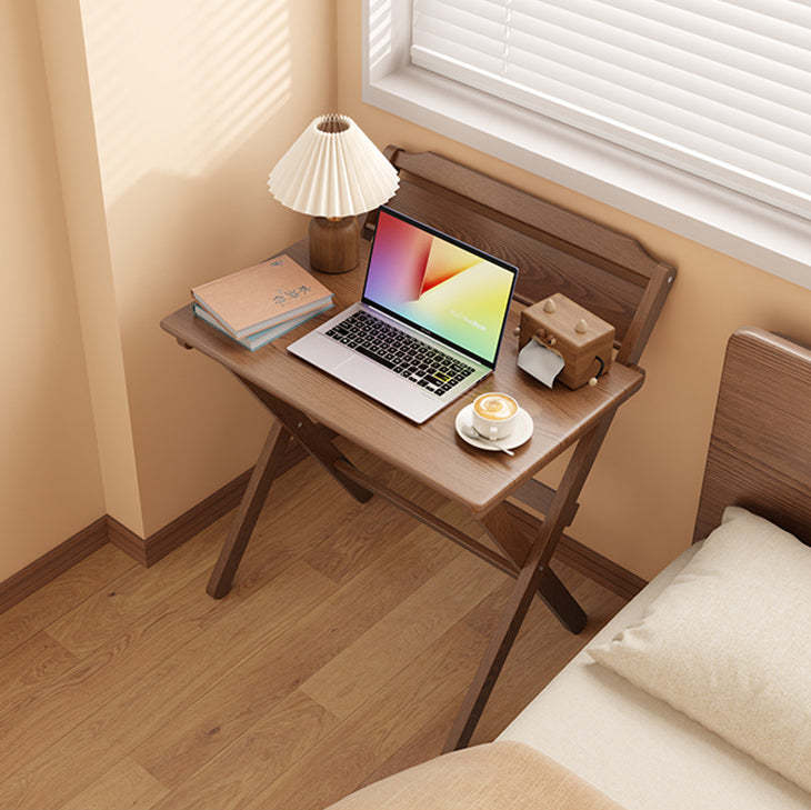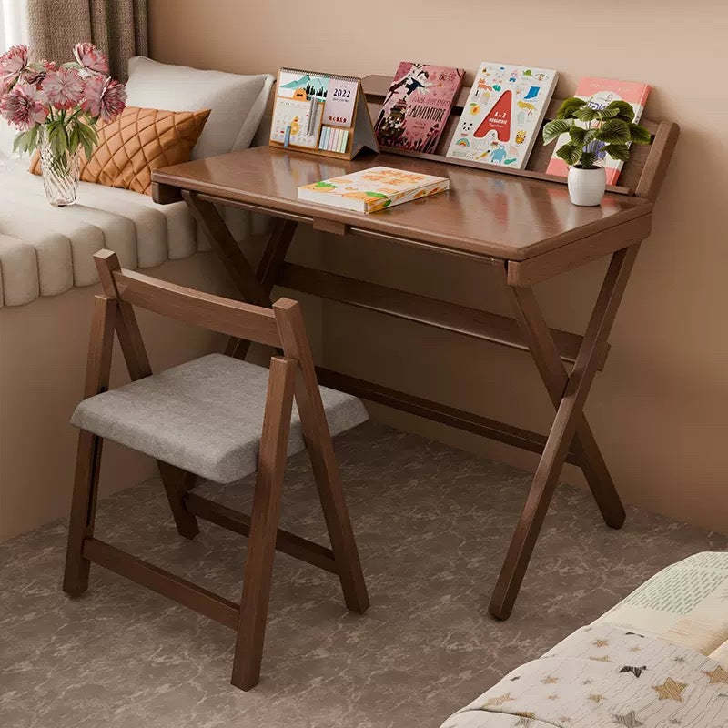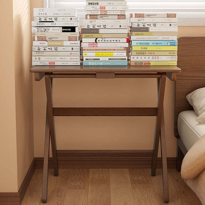 Crafted from solid wood in walnut and natural finishes. this modern X-shaped rectangular end table is foldable for space-saving convenience and easy portability. Perfect for bedrooms or living rooms. it doubles as a study desk or compact workstation for students and small spaces.
