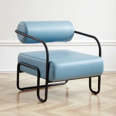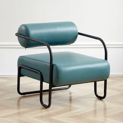 Modern Minimalist Square Cylinder Metal Fabric Accent Chair Backrest Armrest For Living Room