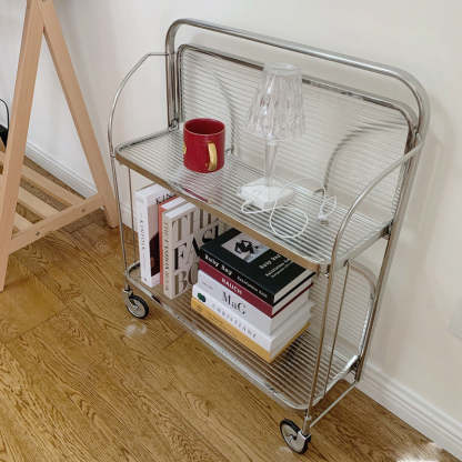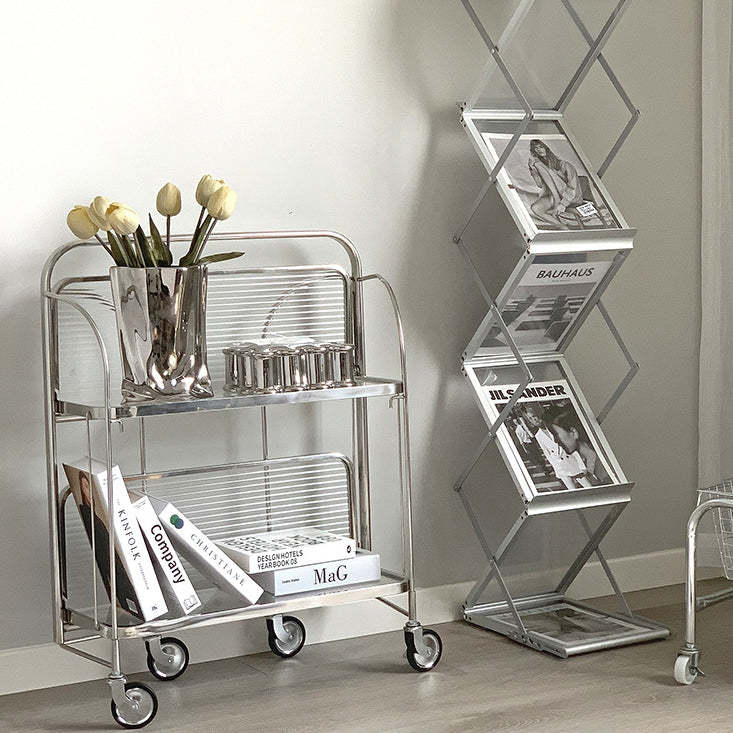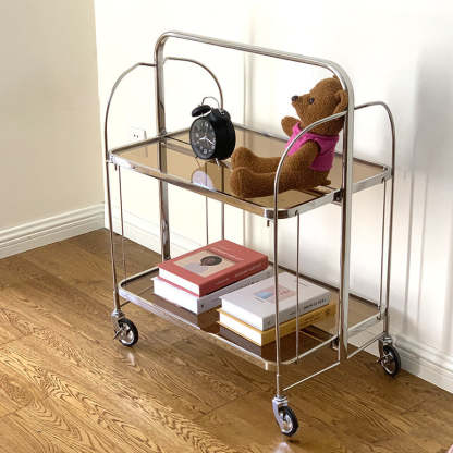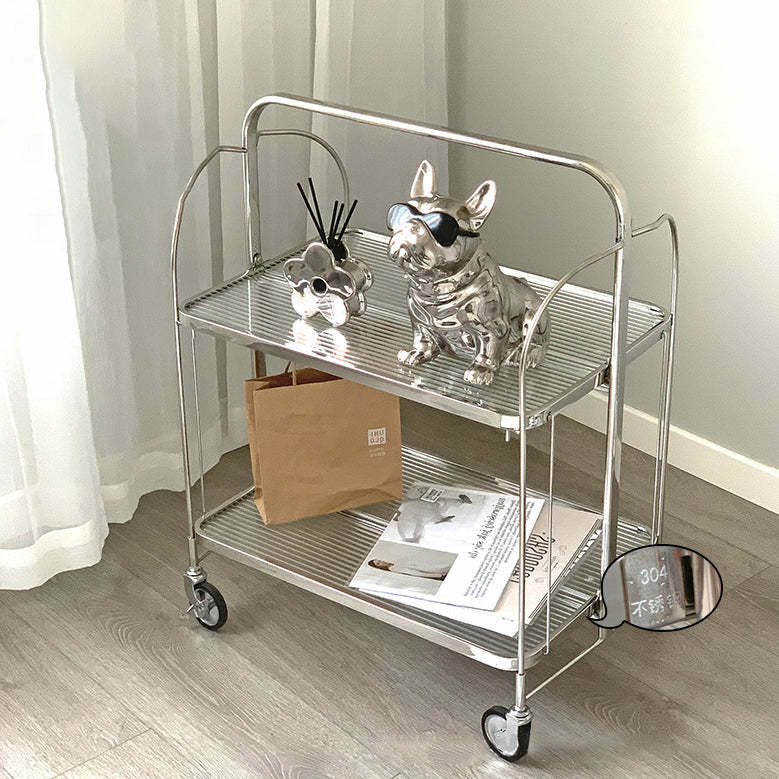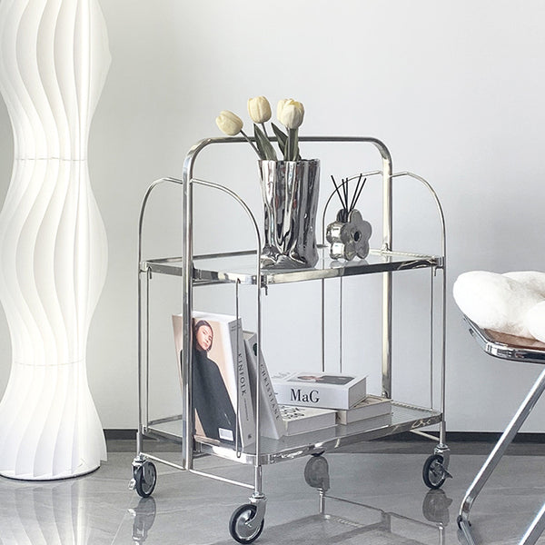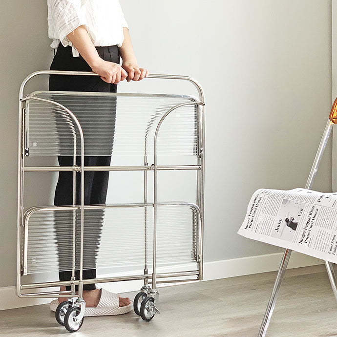 Modern Minimalist Square Stainless Steel Glass Coffee Table Folding Storage Shelf For Bedroom