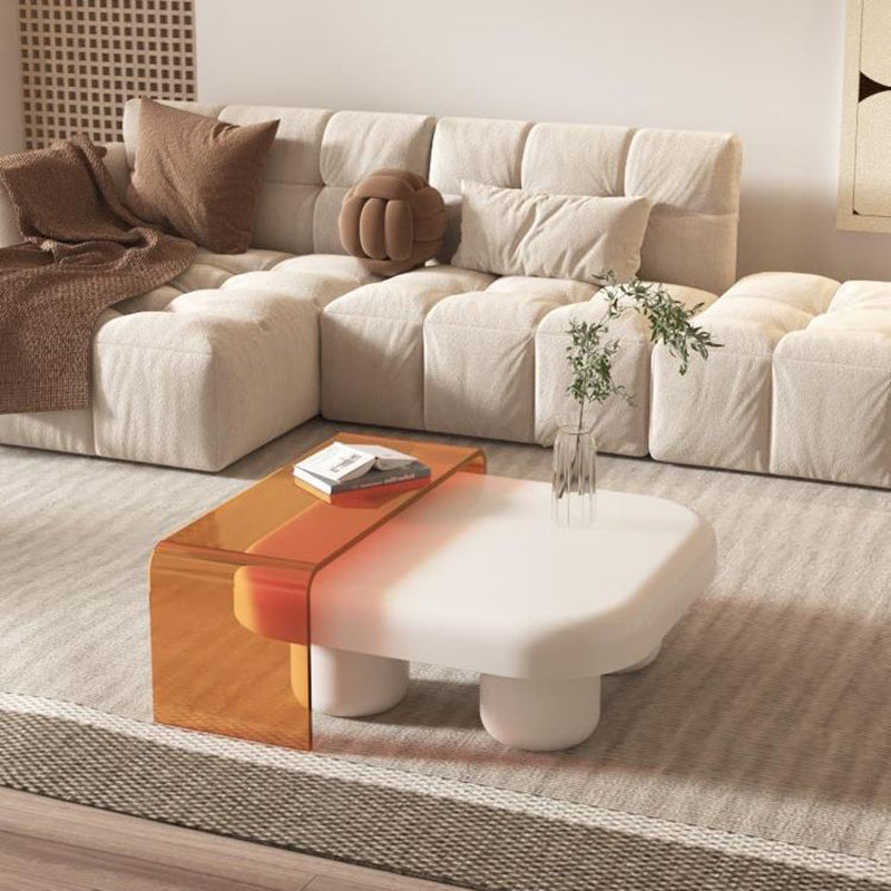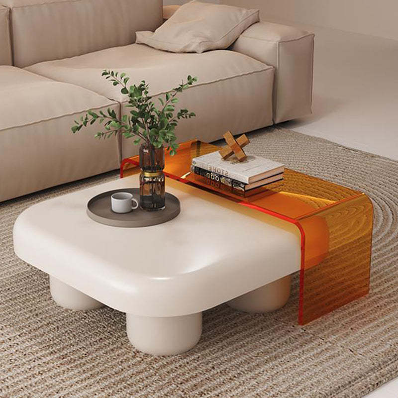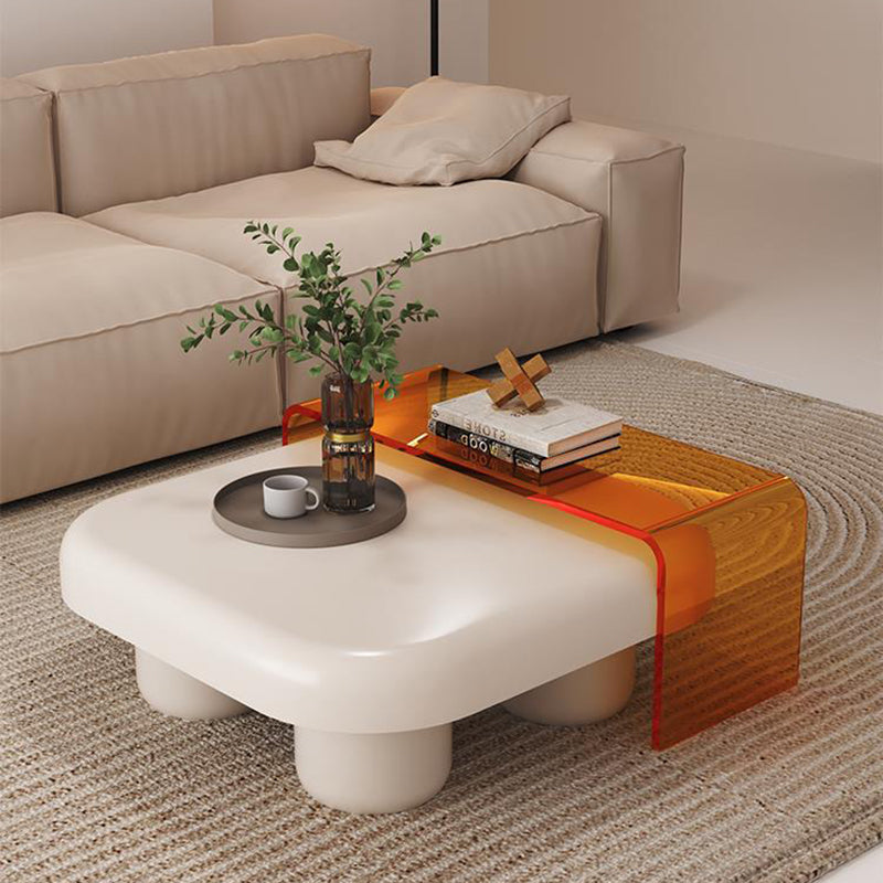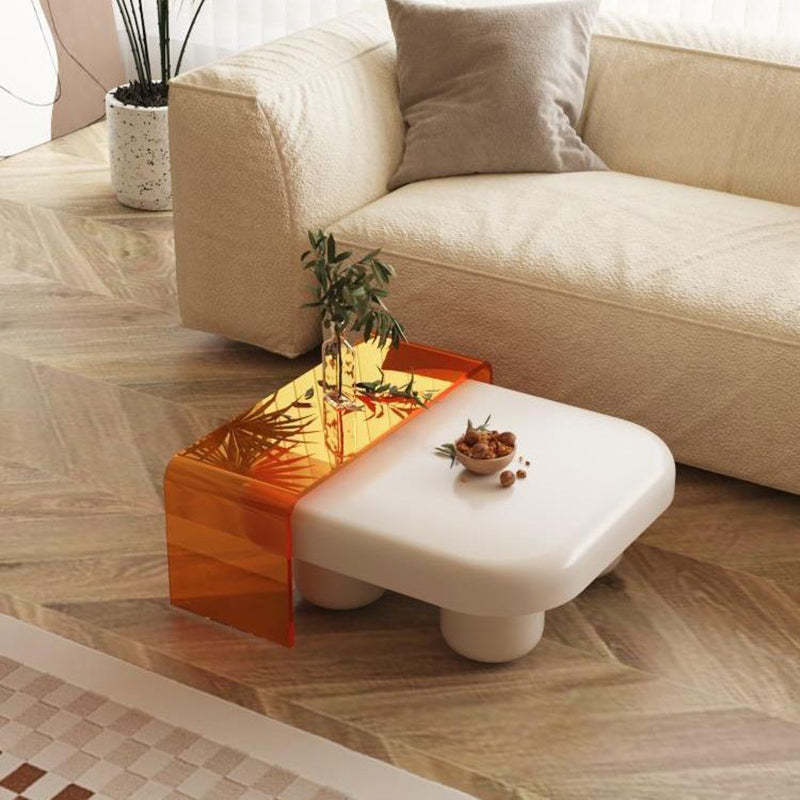 Modern Minimalist Square Tabletop Medium-density Fiberboard Acrylic Coffee Table 4-Leg For Living Room