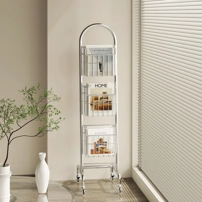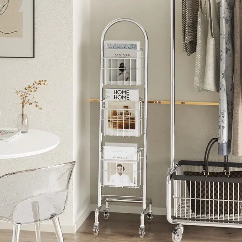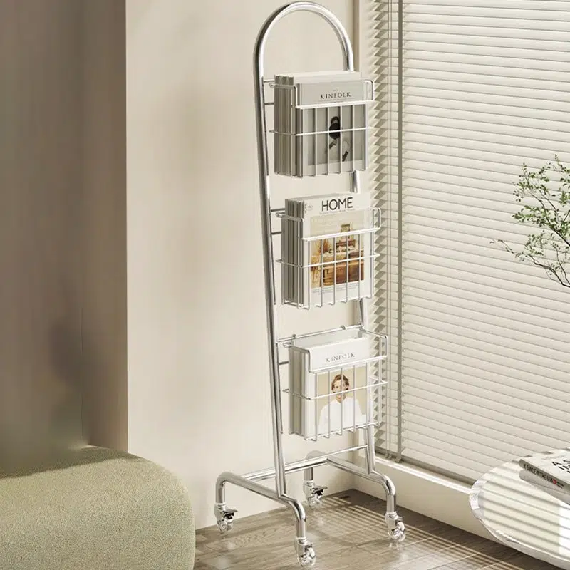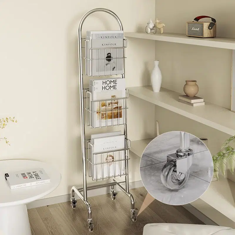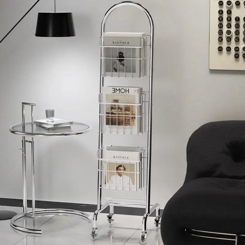 This sleek 3-tier bookshelf features a rust-resistant stainless steel frame in a polished chrome finish. offering a modern rectangular design that’s easy to move. Perfect for organizing books and magazines in your home office or living room with minimalist style.