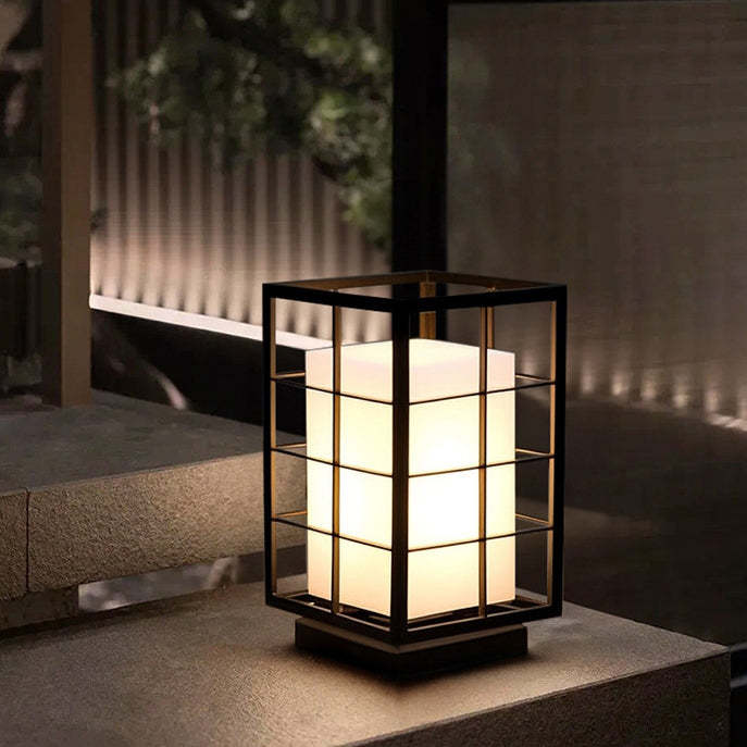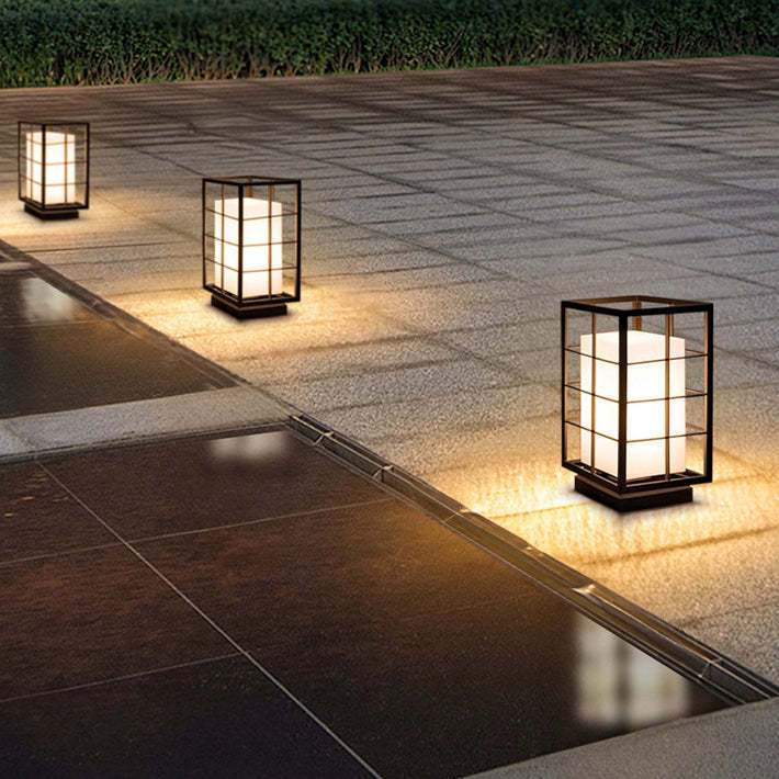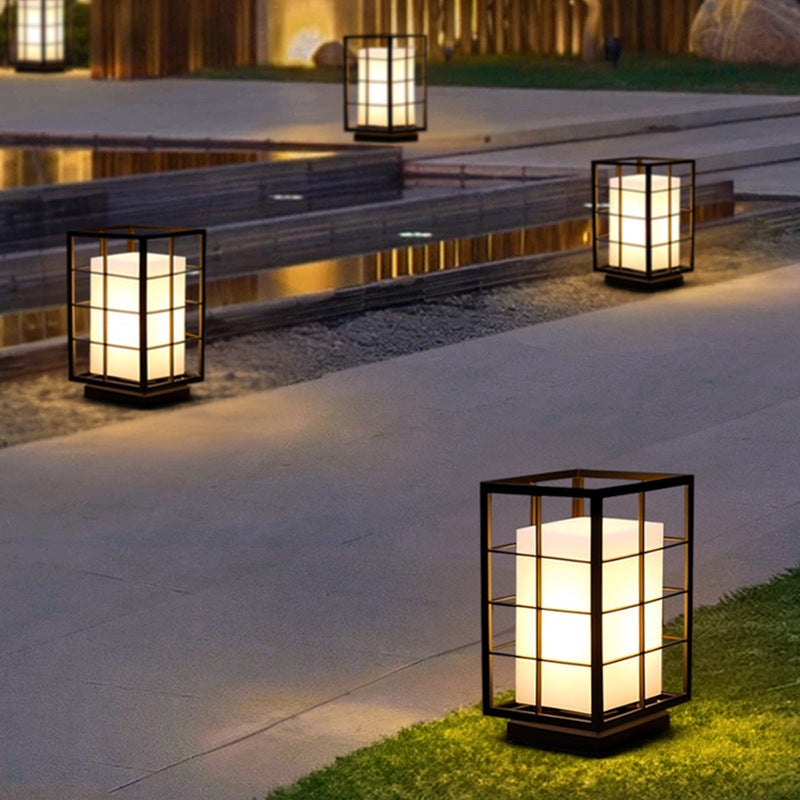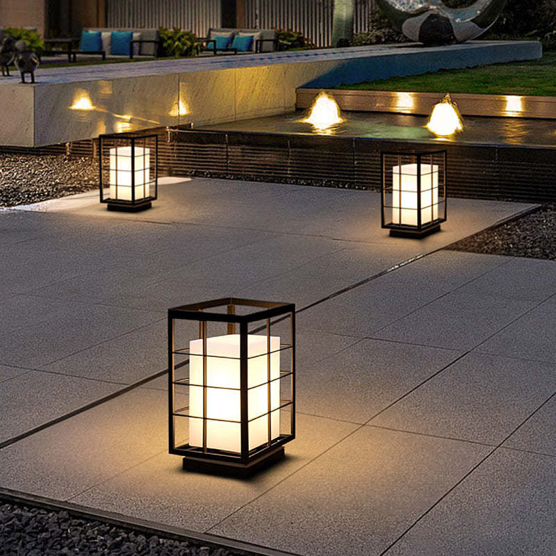 Modern Minimalist Stainless Steel Rectangular Frame Acrylic LED Post Head Light Outdoor Light For Garden