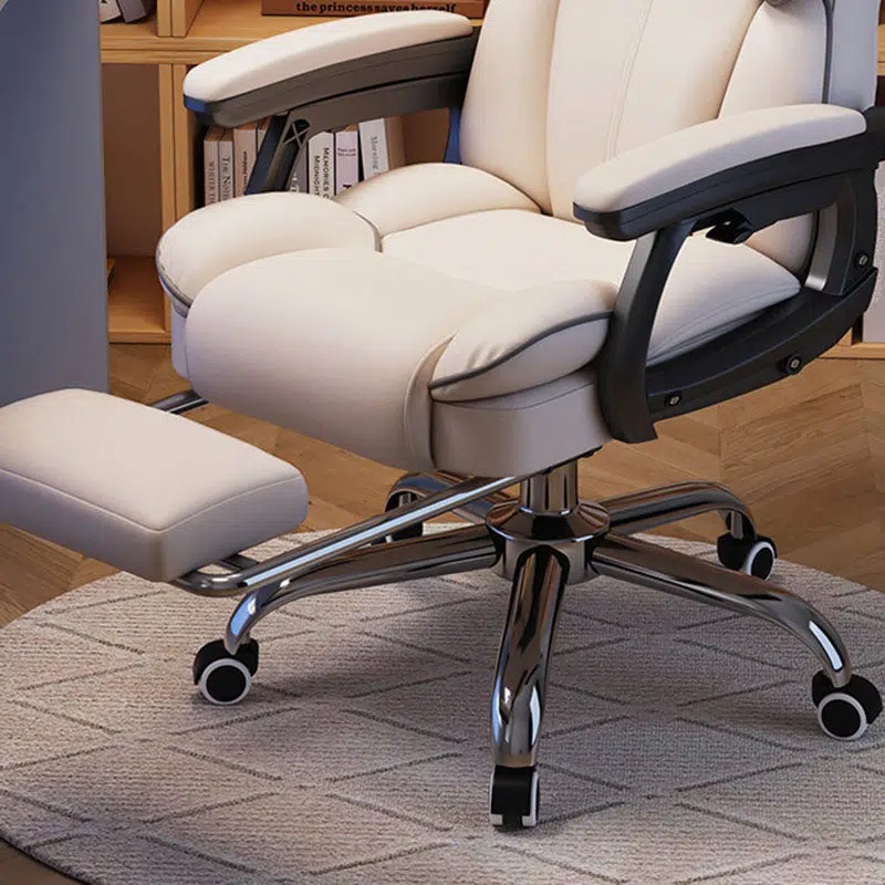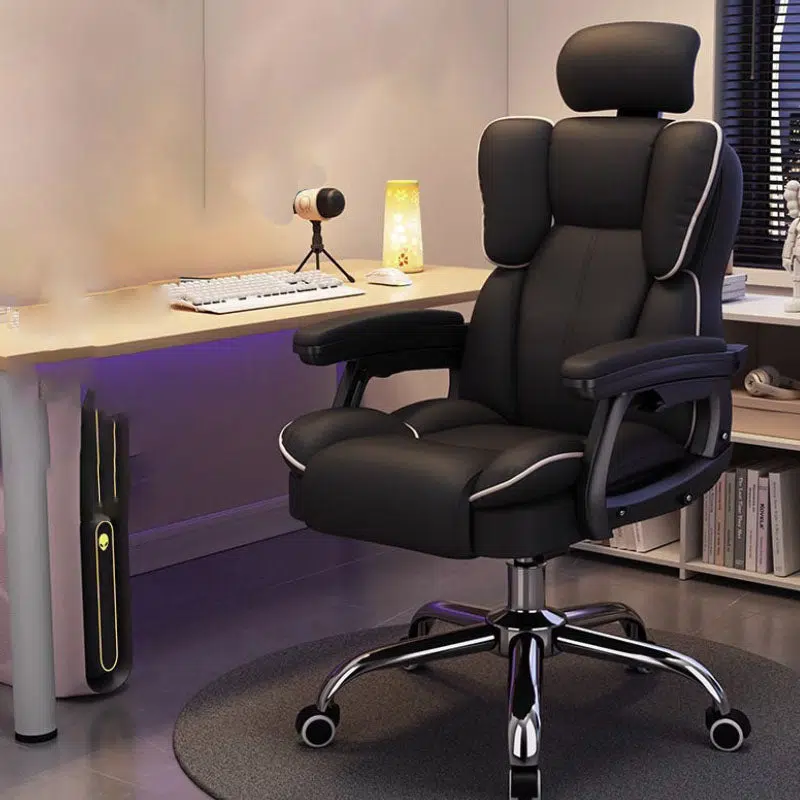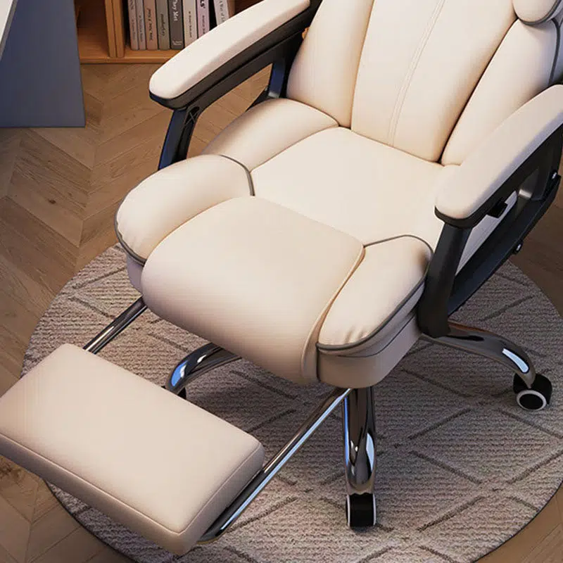 Modern Minimalist Steel Leather Rectangular Desk Chair Backrest Armrest Footrest For Home Office