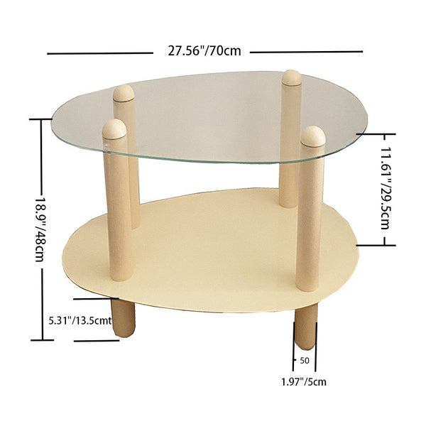 Modern Minimalist Teardrop-Shaped Glass Wood End Table 2-Tier For Living Room
