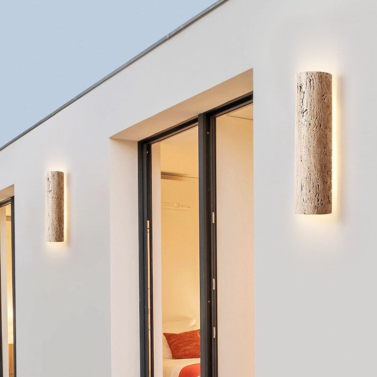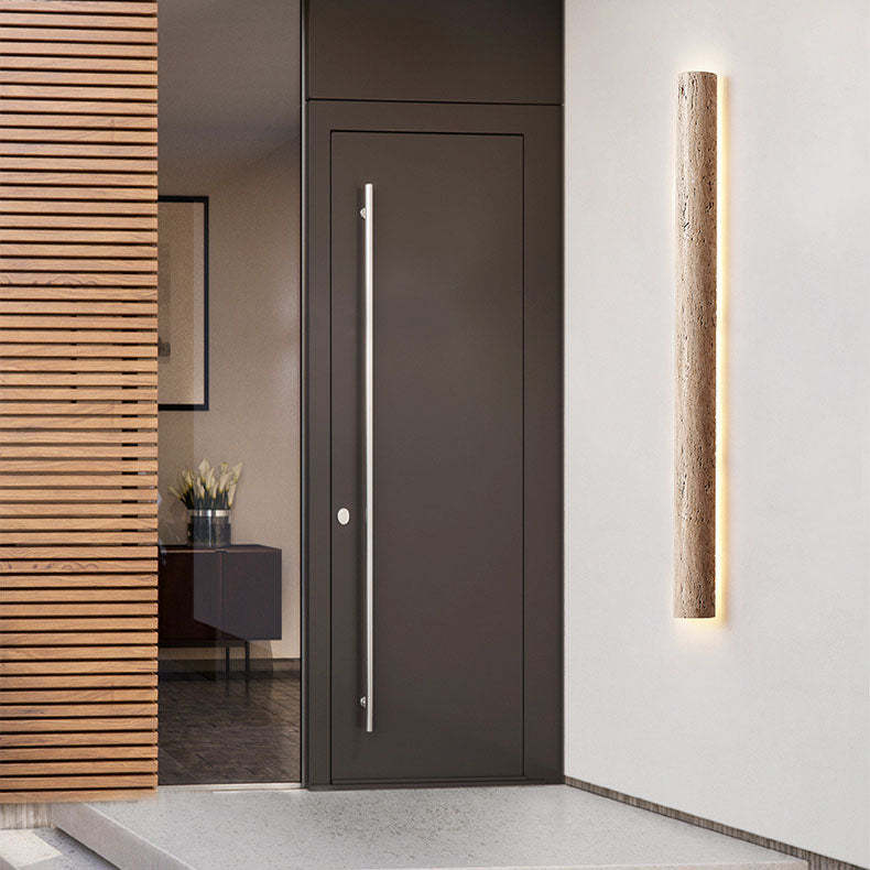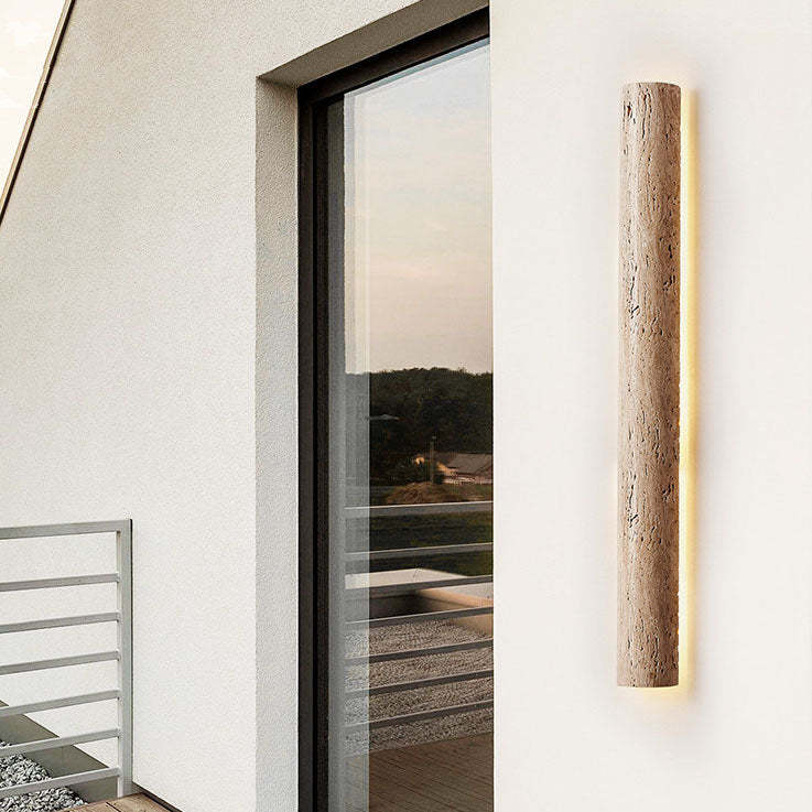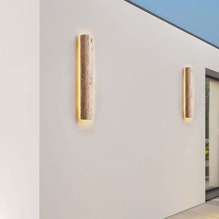 Modern Minimalist Waterproof Long Yellow Travertine LED Wall Sconce Lamp For Outdoor Patio
