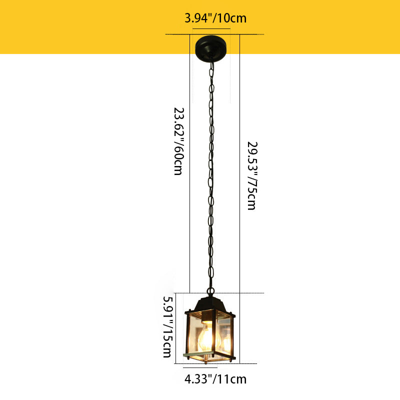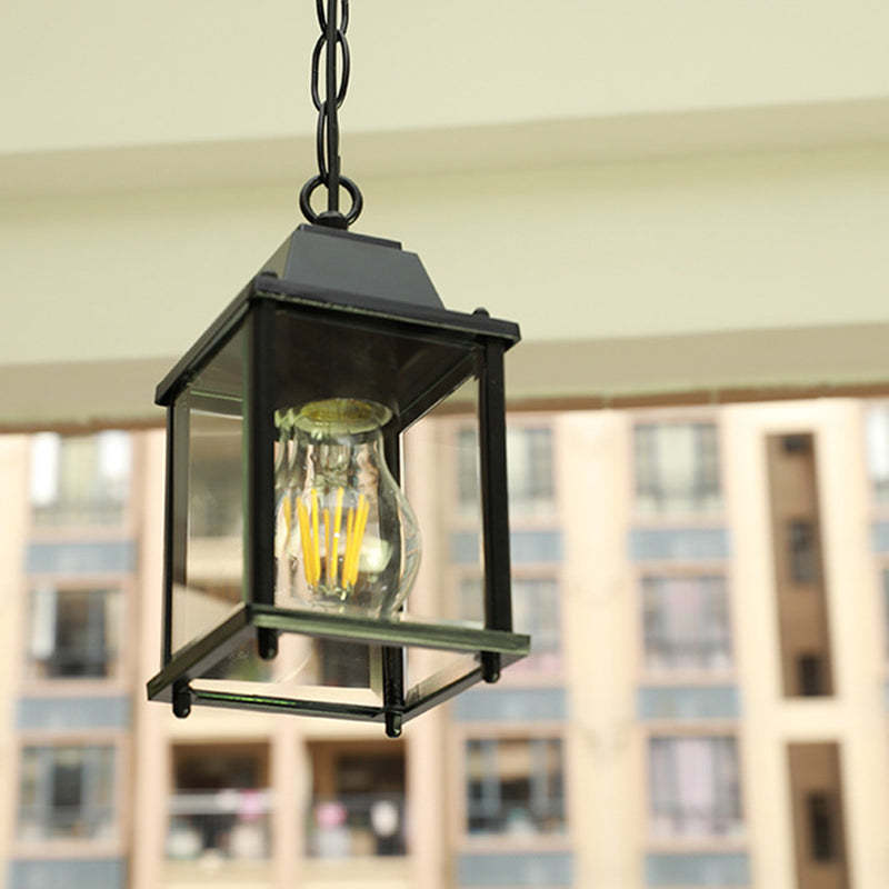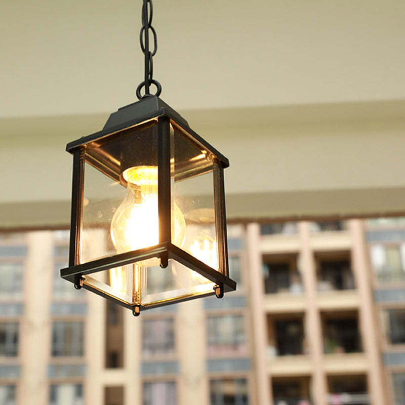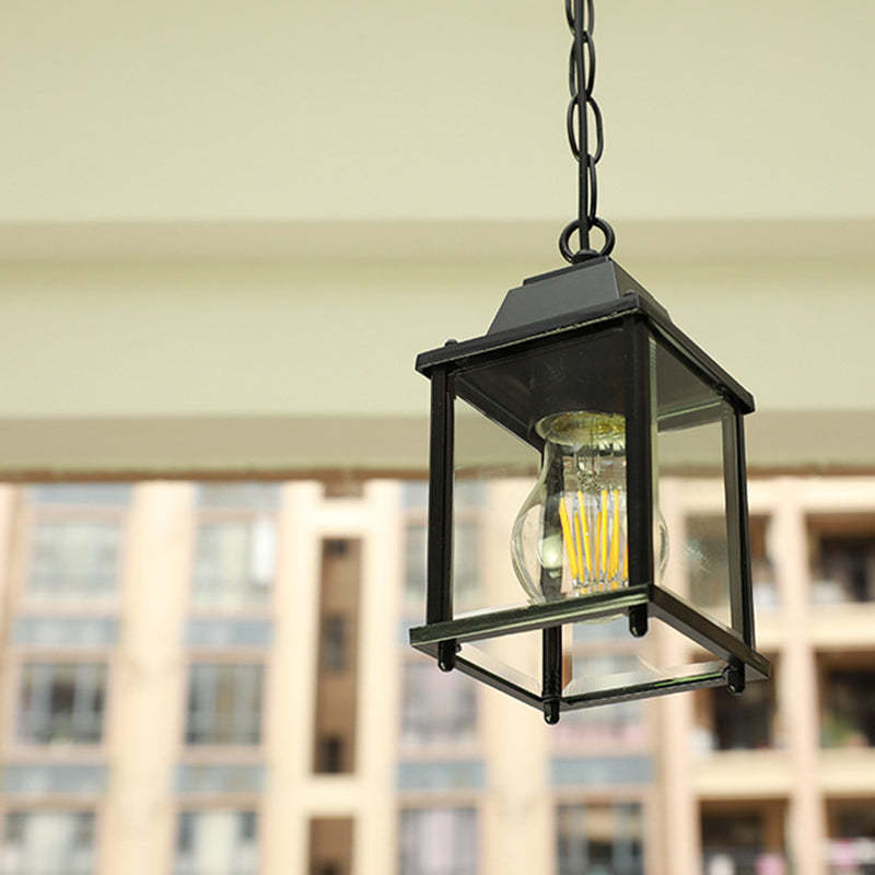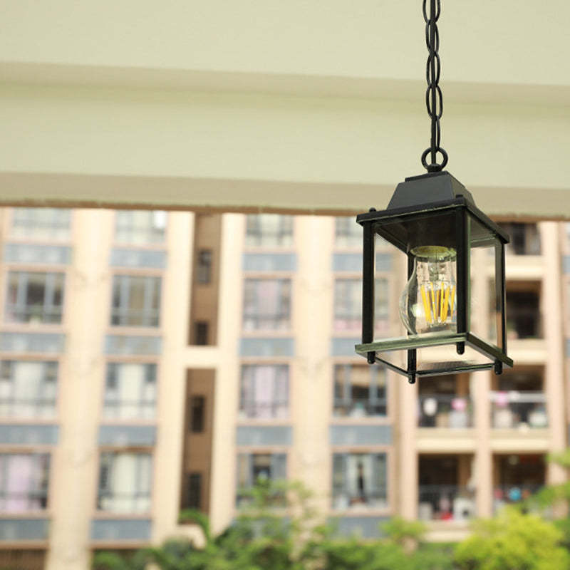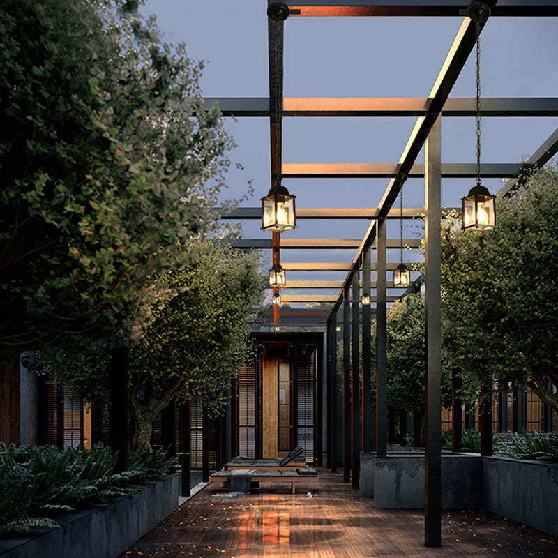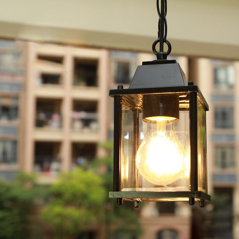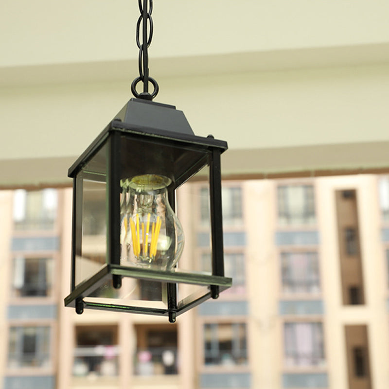 Modern Minimalist Waterproof Rectangular Aluminum Glass 1-Light Pendant Light For Outdoor Patio
