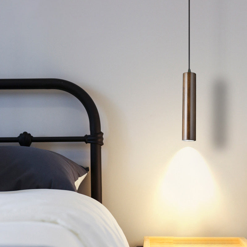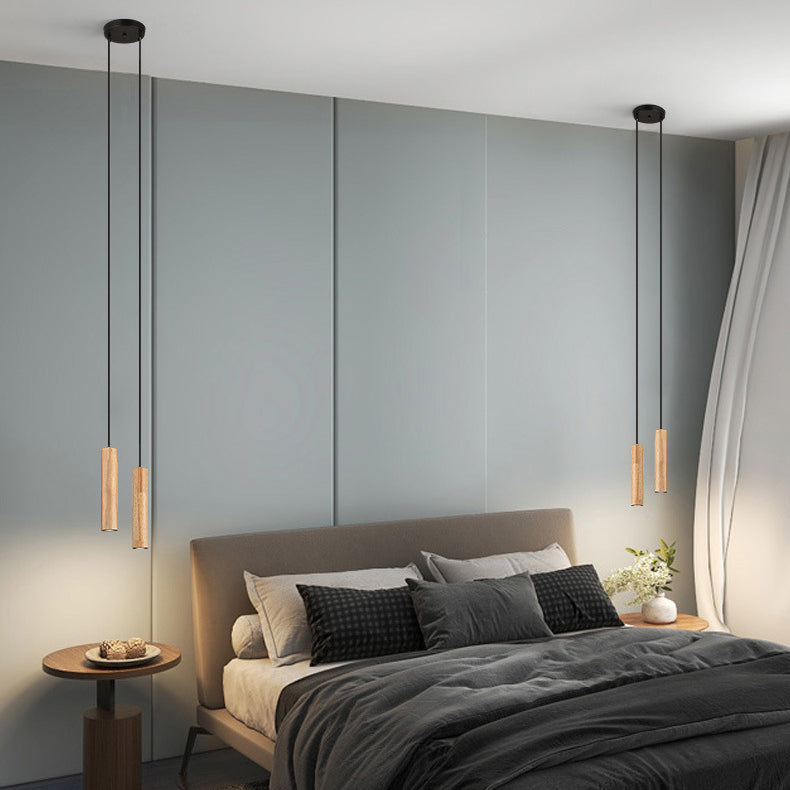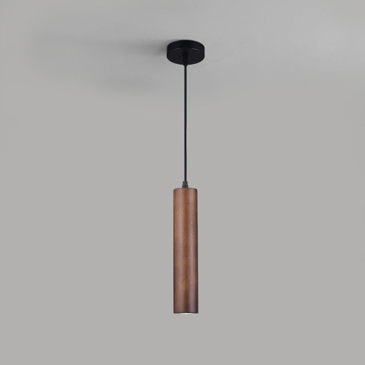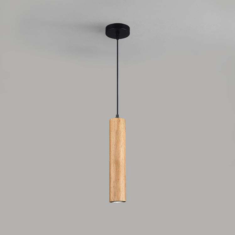 Modern Minimalist Wood Cylinder LED Pendant Light