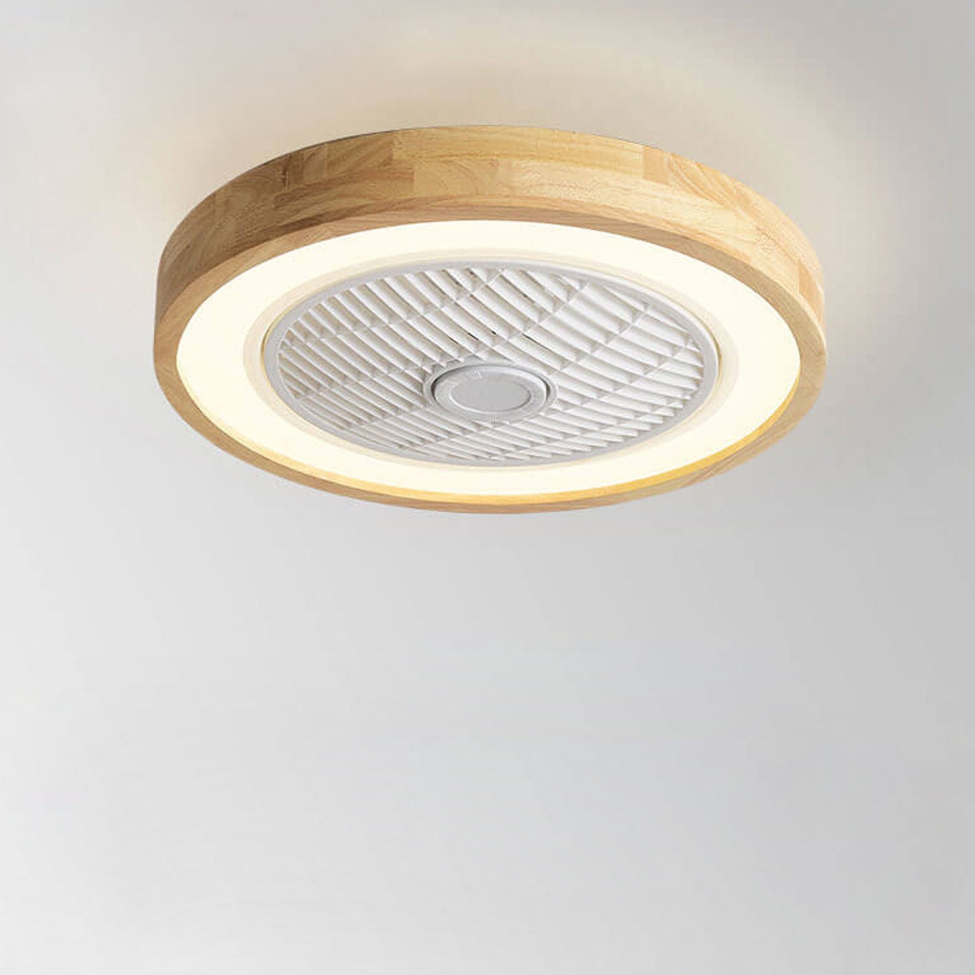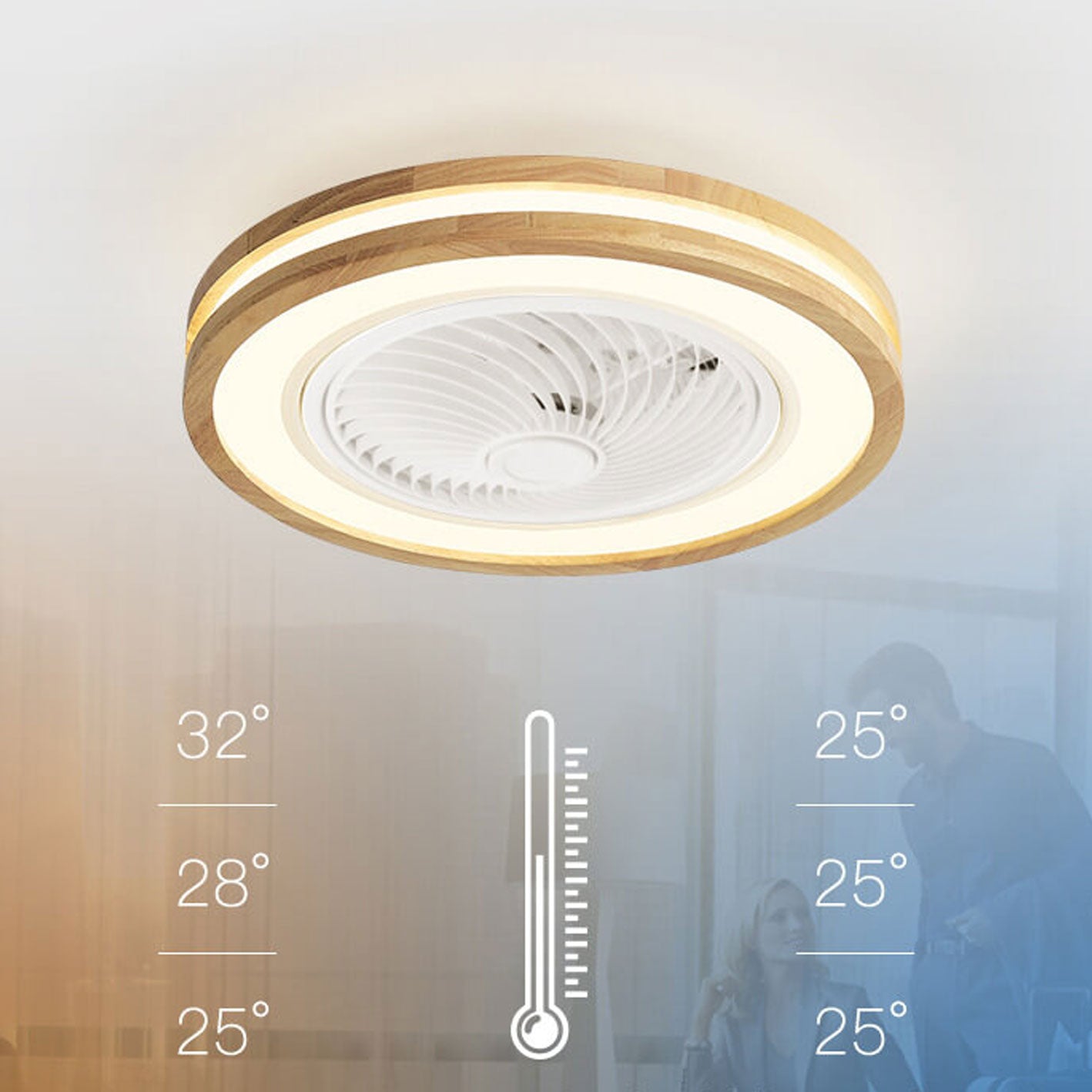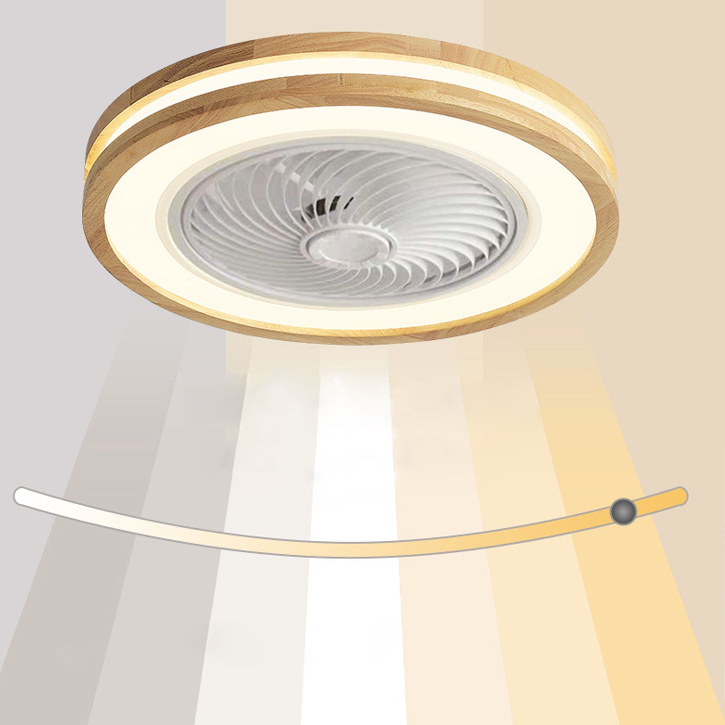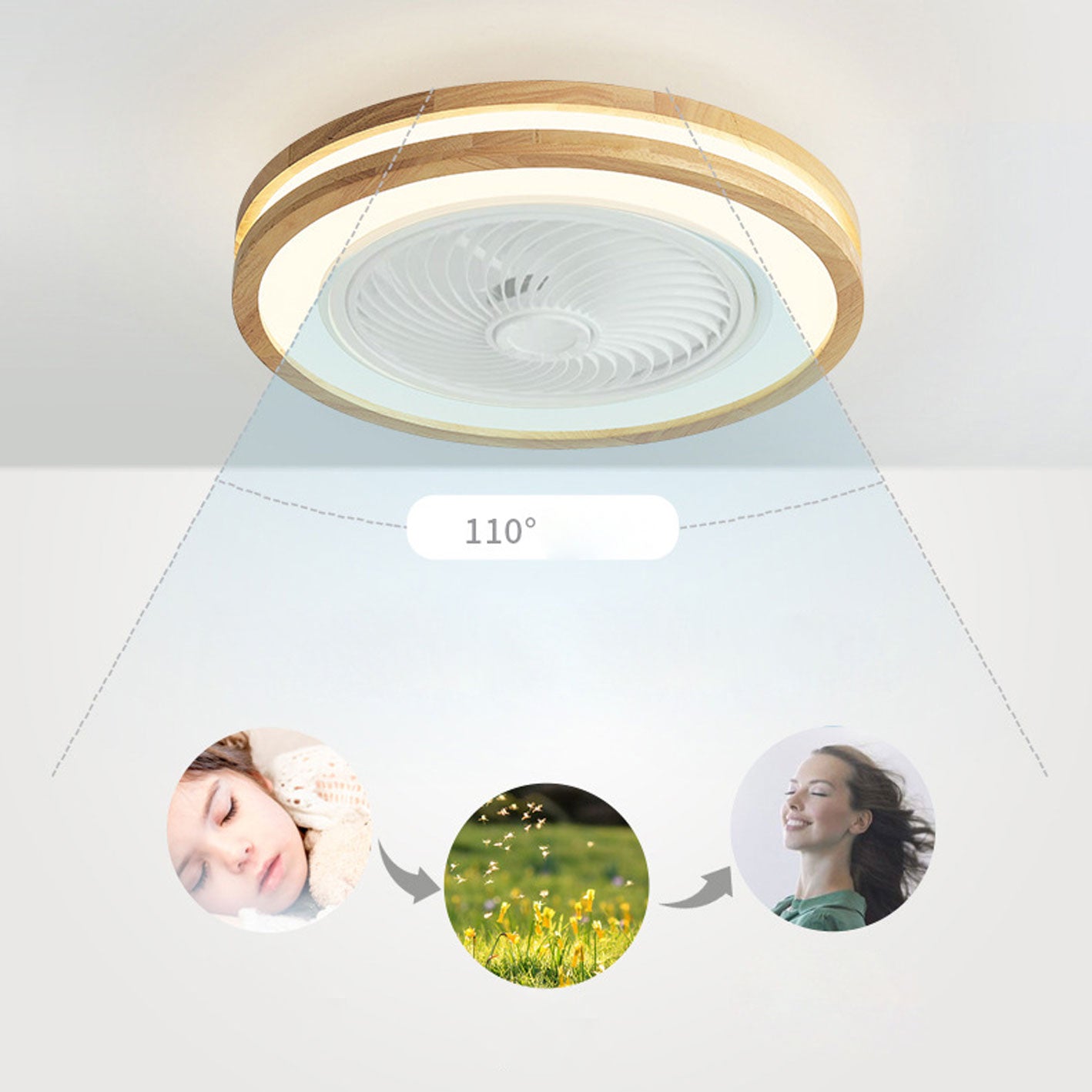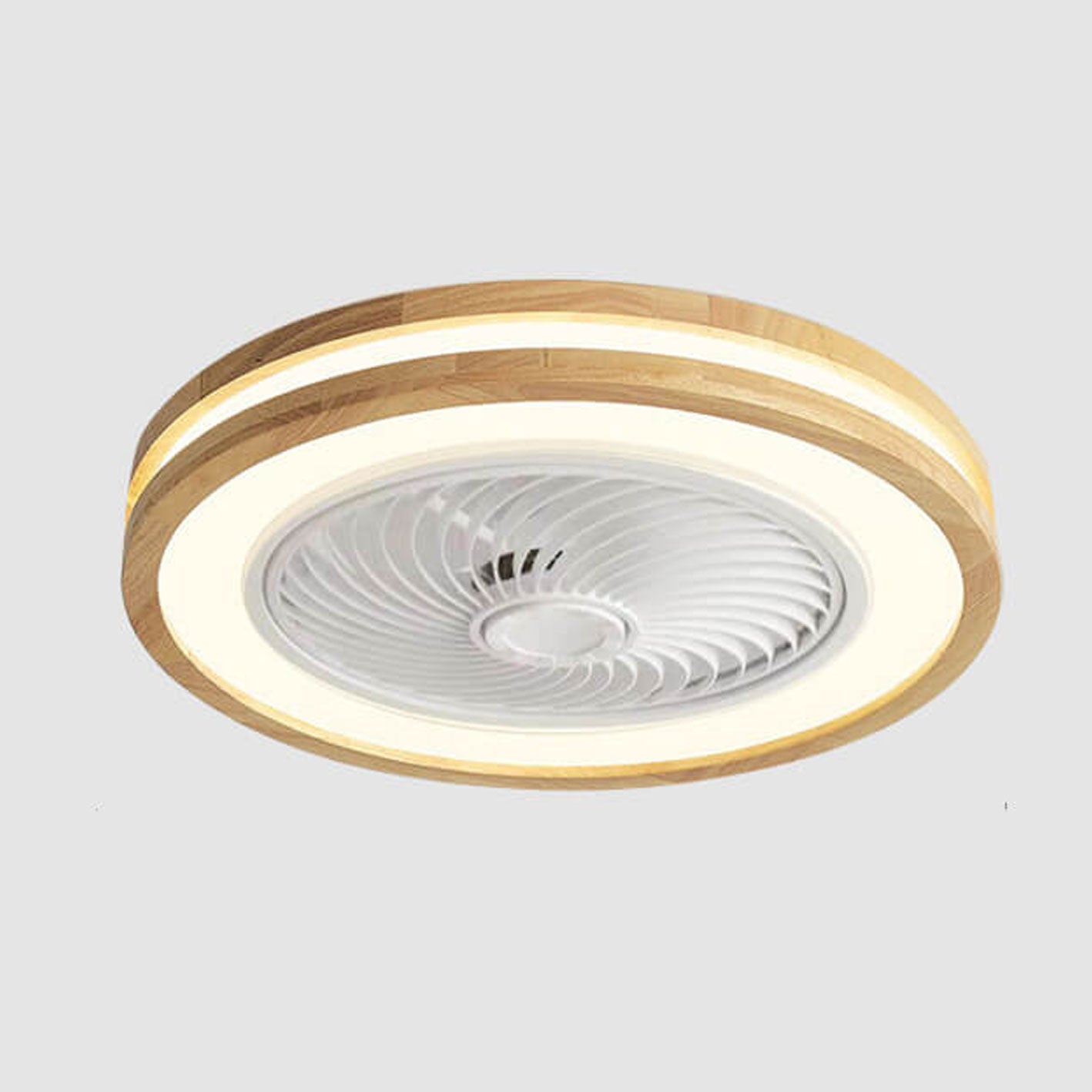 Modern Minimalist Wood Geometric LED Flush Mount Ceiling Fan Light
