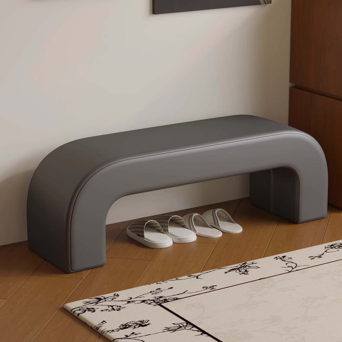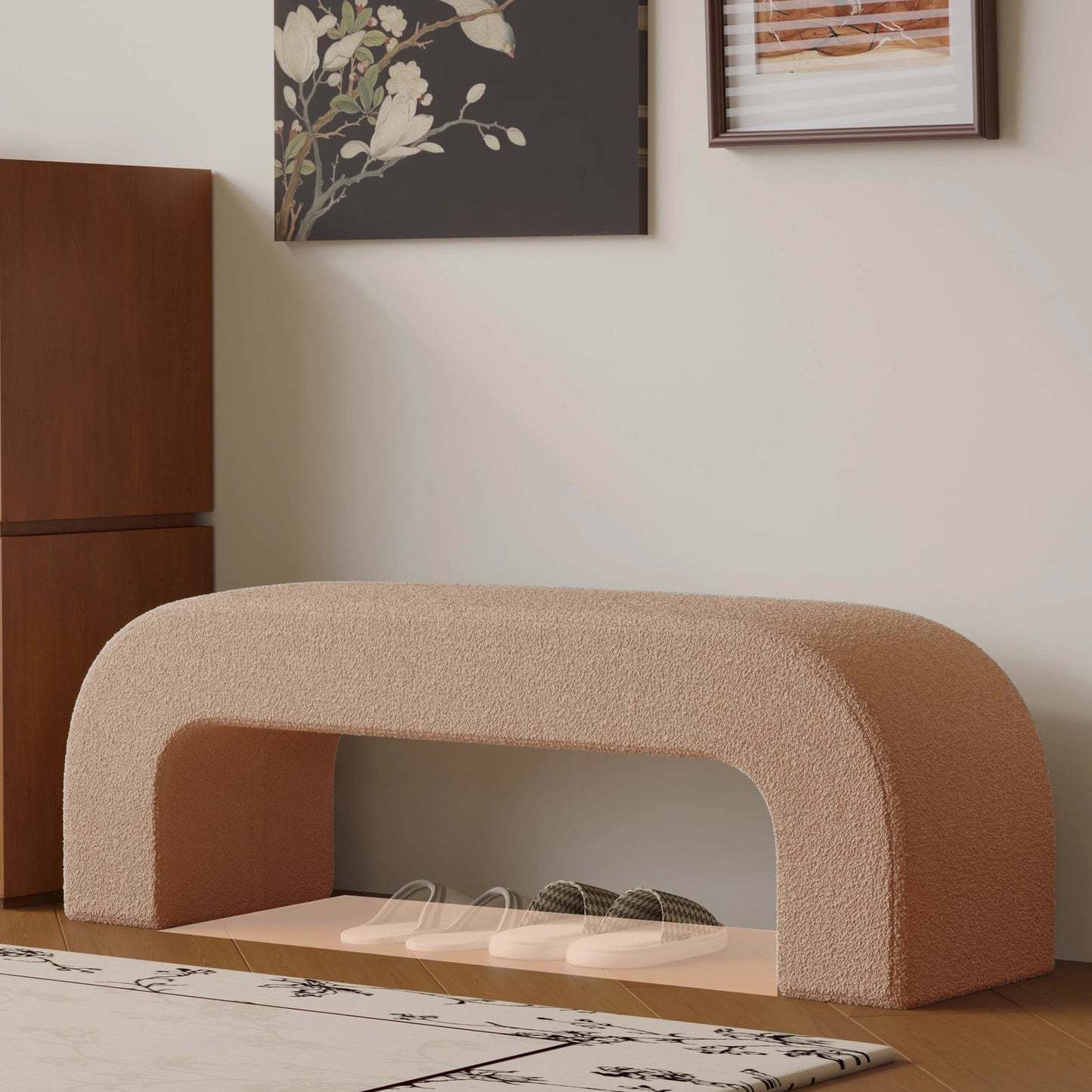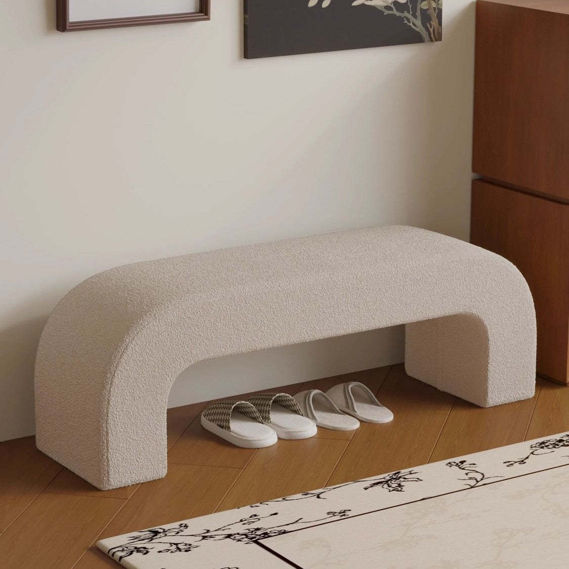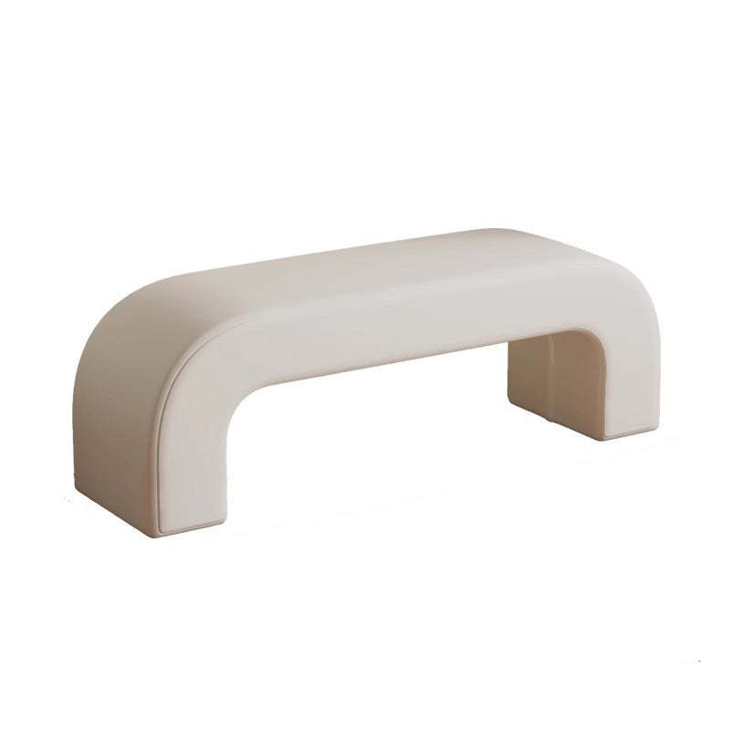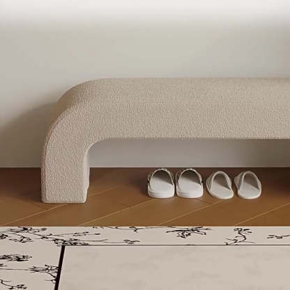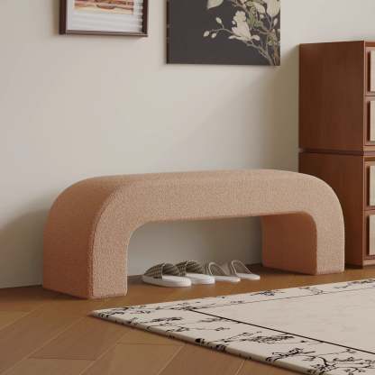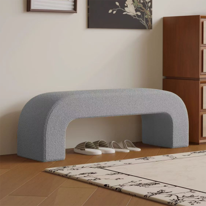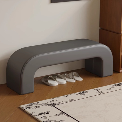 Bring modern simplicity to your entryway or living room with this rectangular bench. upholstered in soft lambswool or sleek leather. Available in multiple colors. its open base design provides convenient space for storing shoes while keeping your area neat and stylish.