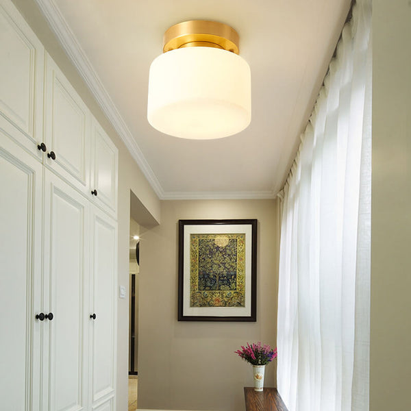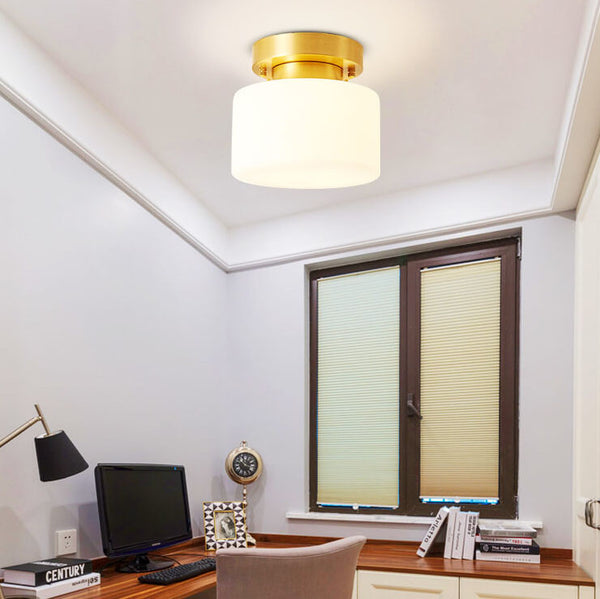 Modern Nordic Cylinder Glass 1-Light Semi-Flush Mount Lighting For Bedroom