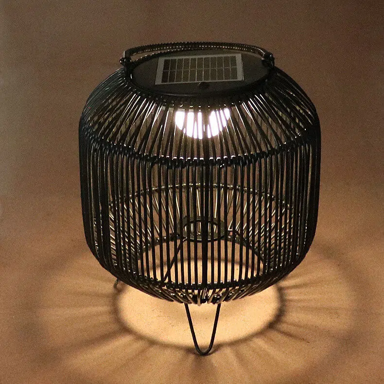 Modern Rattan Weaving Iron Portable Outdoor Waterproof Solar LED Lawn Landscape Light