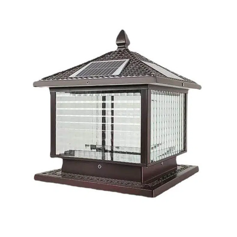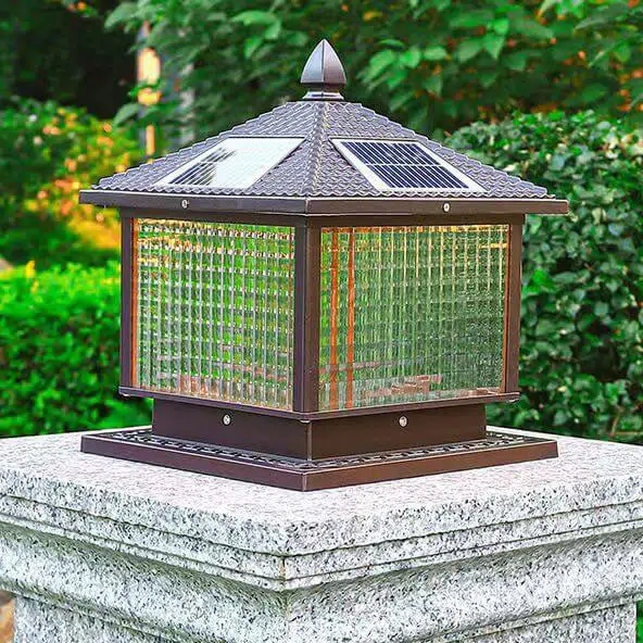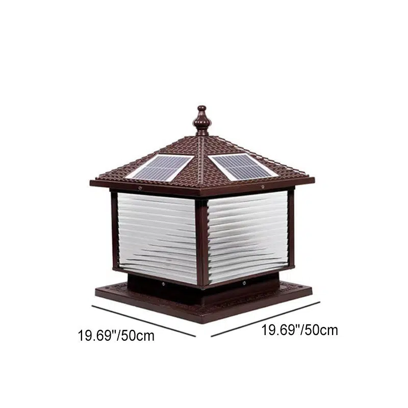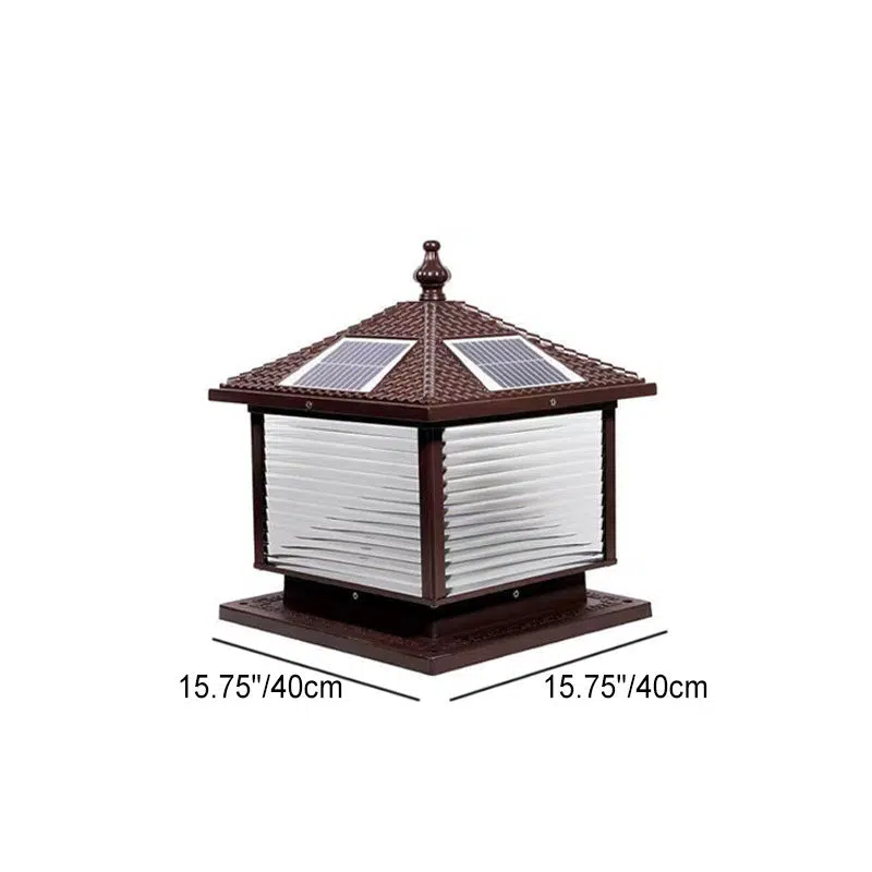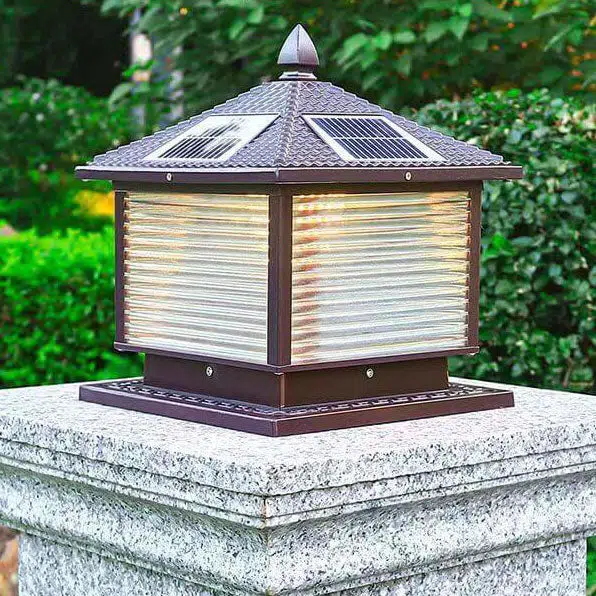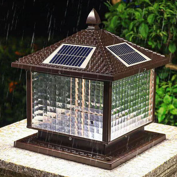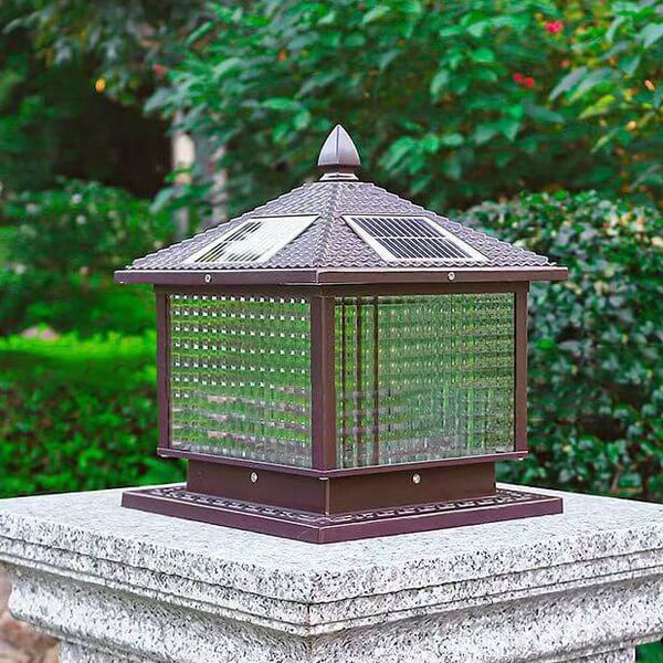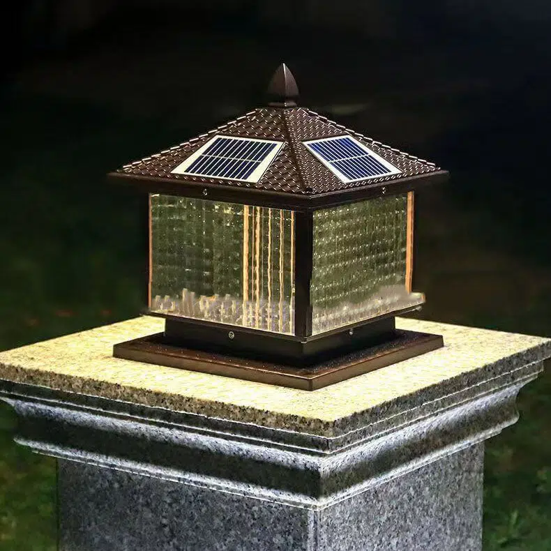 Modern Retro Square Die-Cast Aluminum Glass Solar Outdoor Garden Landscape Column Head Light