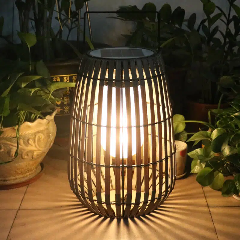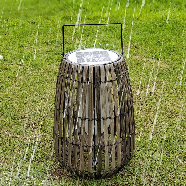 Modern Rustic Rattan Weaving Portable Outdoor Waterproof Solar LED Lawn Landscape Light