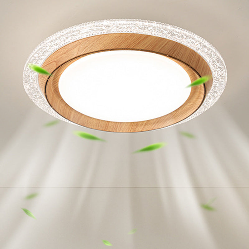 Modern Simplicity ABS PC Acrylic Round Lace LED Flush Mount Ceiling Bladeless Fan Light For Bedroom